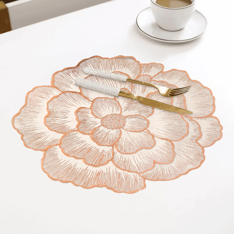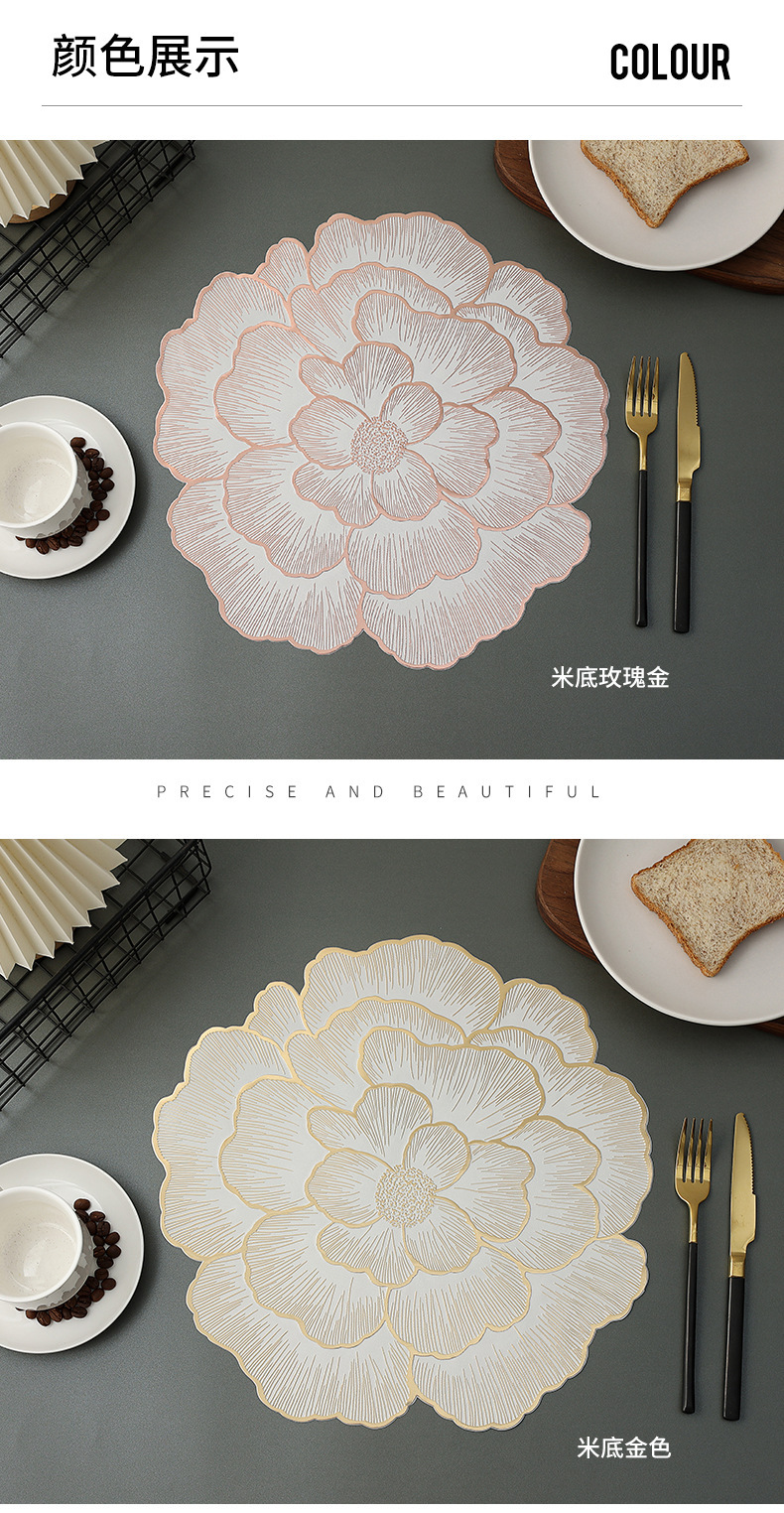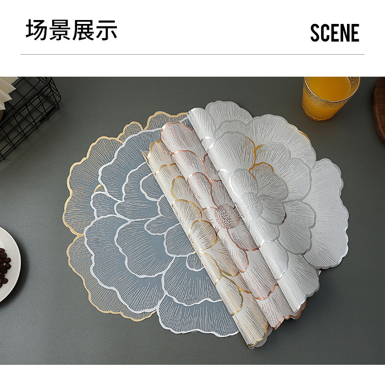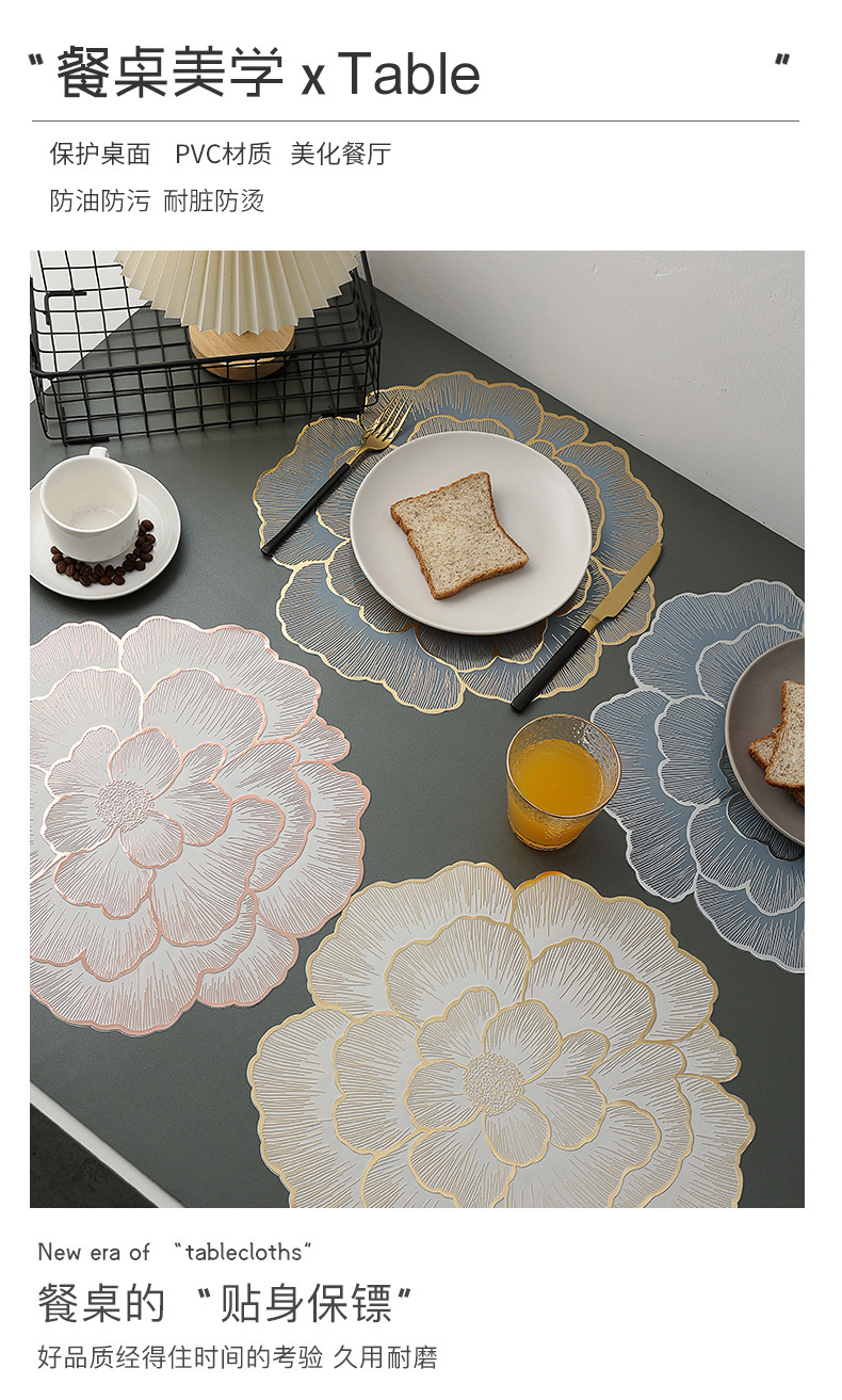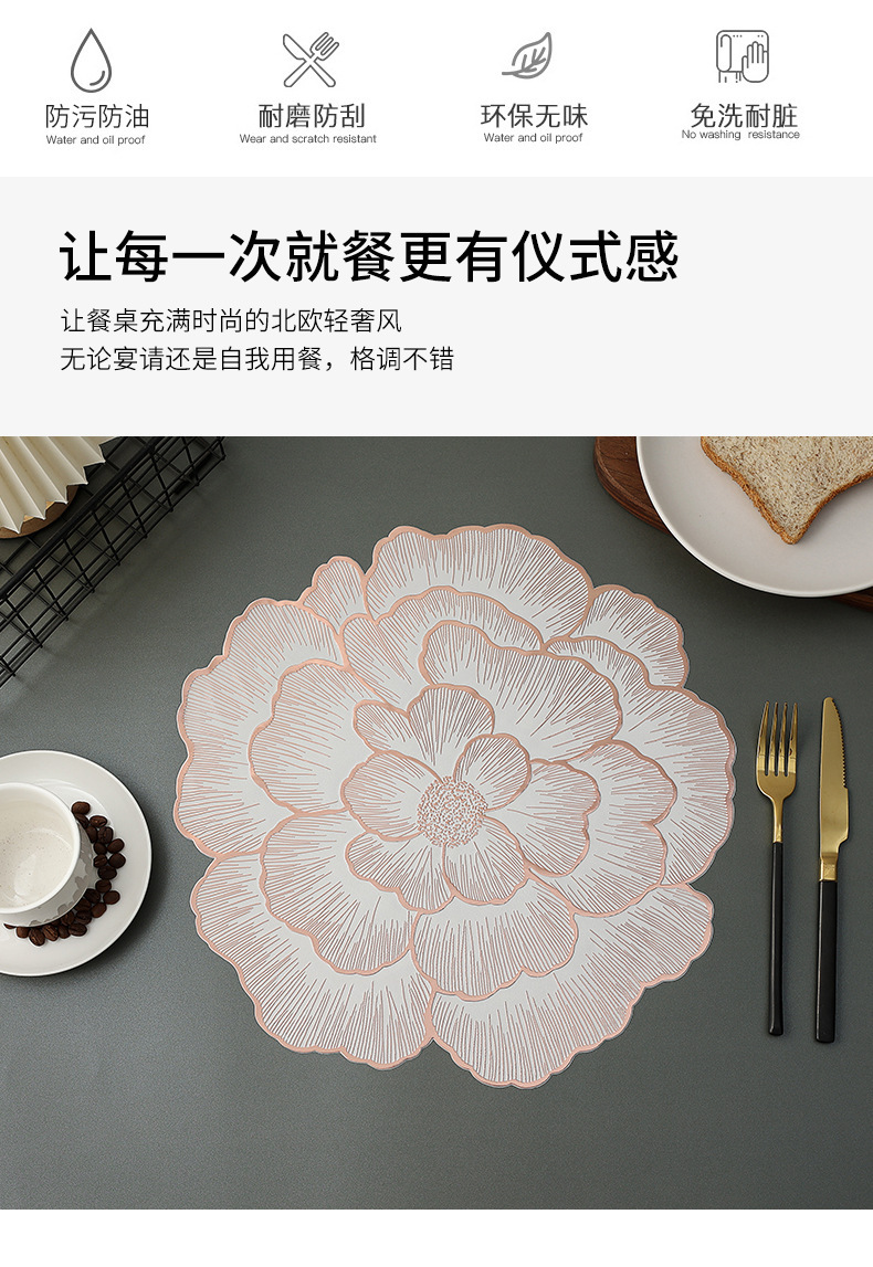 创意牡丹花餐桌垫北欧风餐厅装饰垫PVC防烫隔热垫防油污桌垫杯垫
