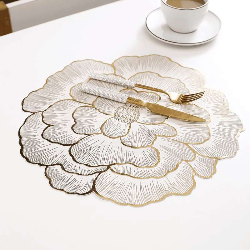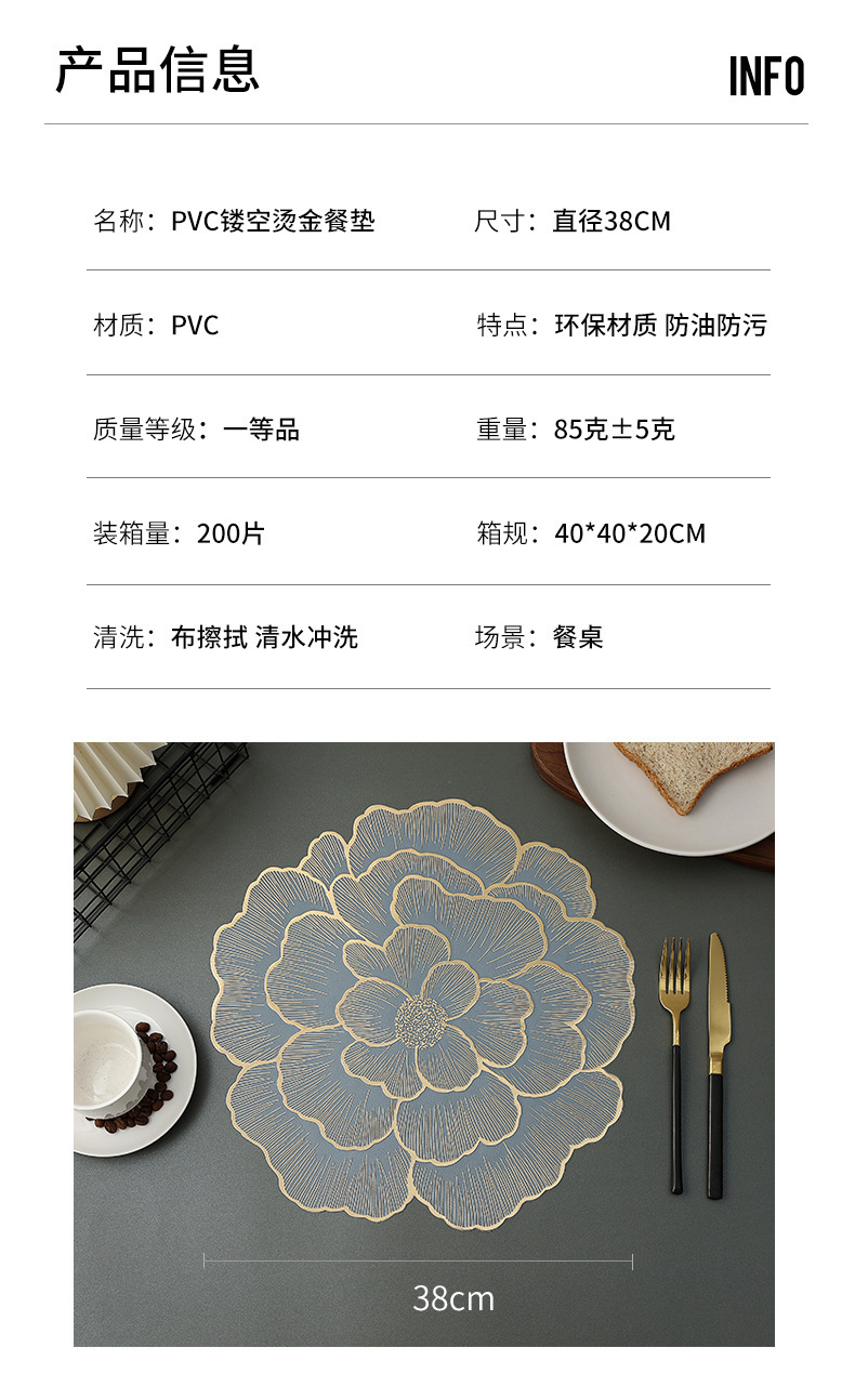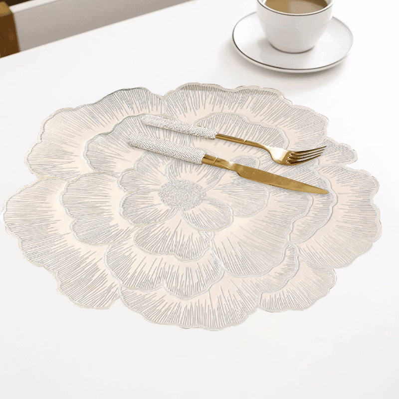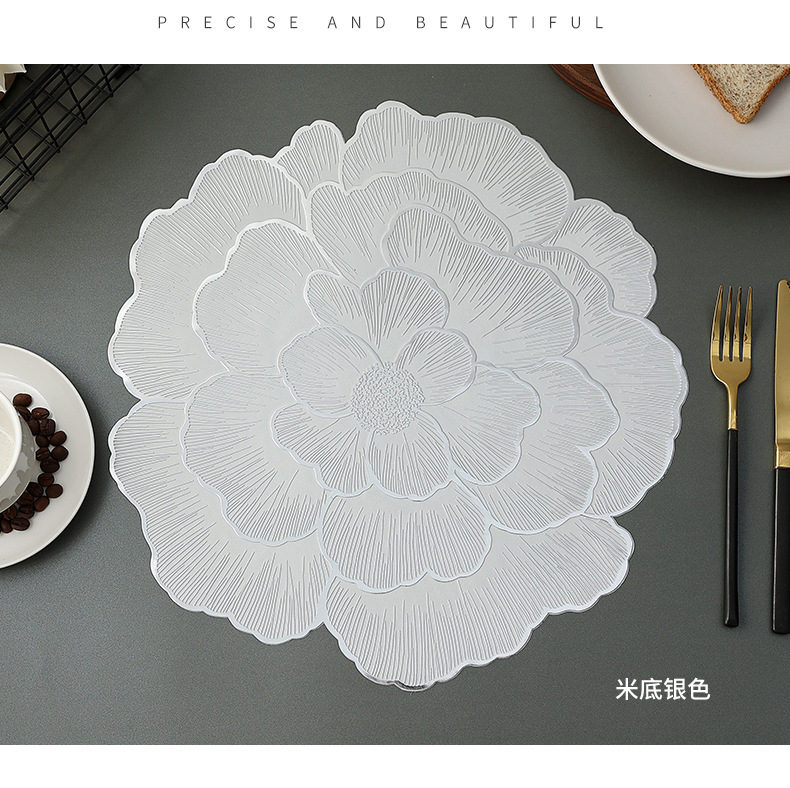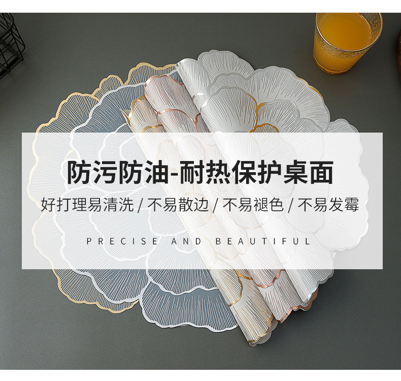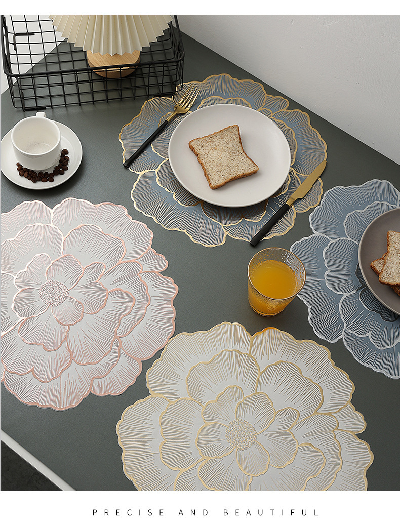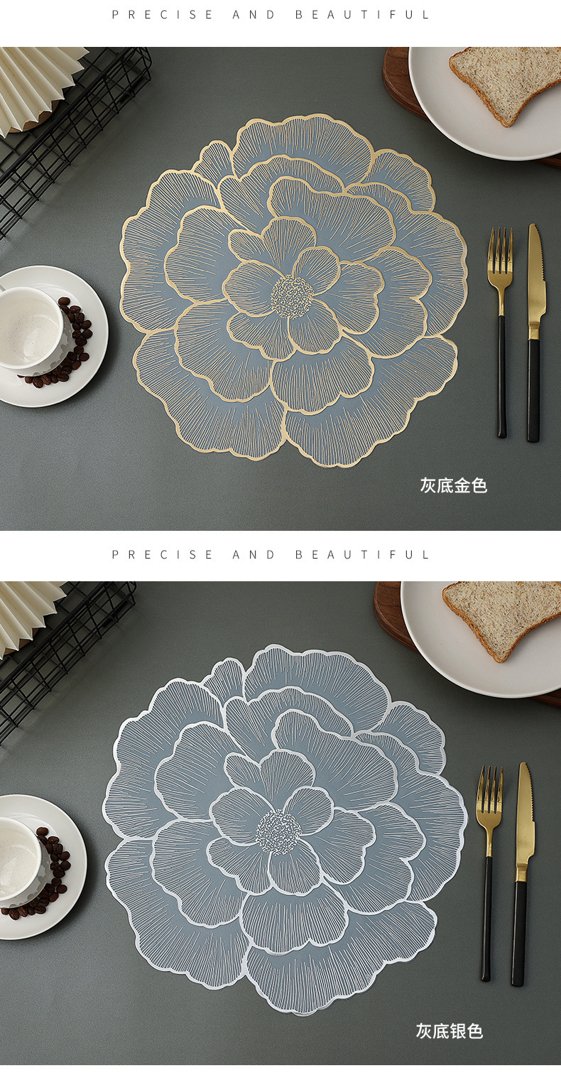创意牡丹花餐桌垫北欧风餐厅装饰垫PVC防烫隔热垫防油污桌垫杯垫