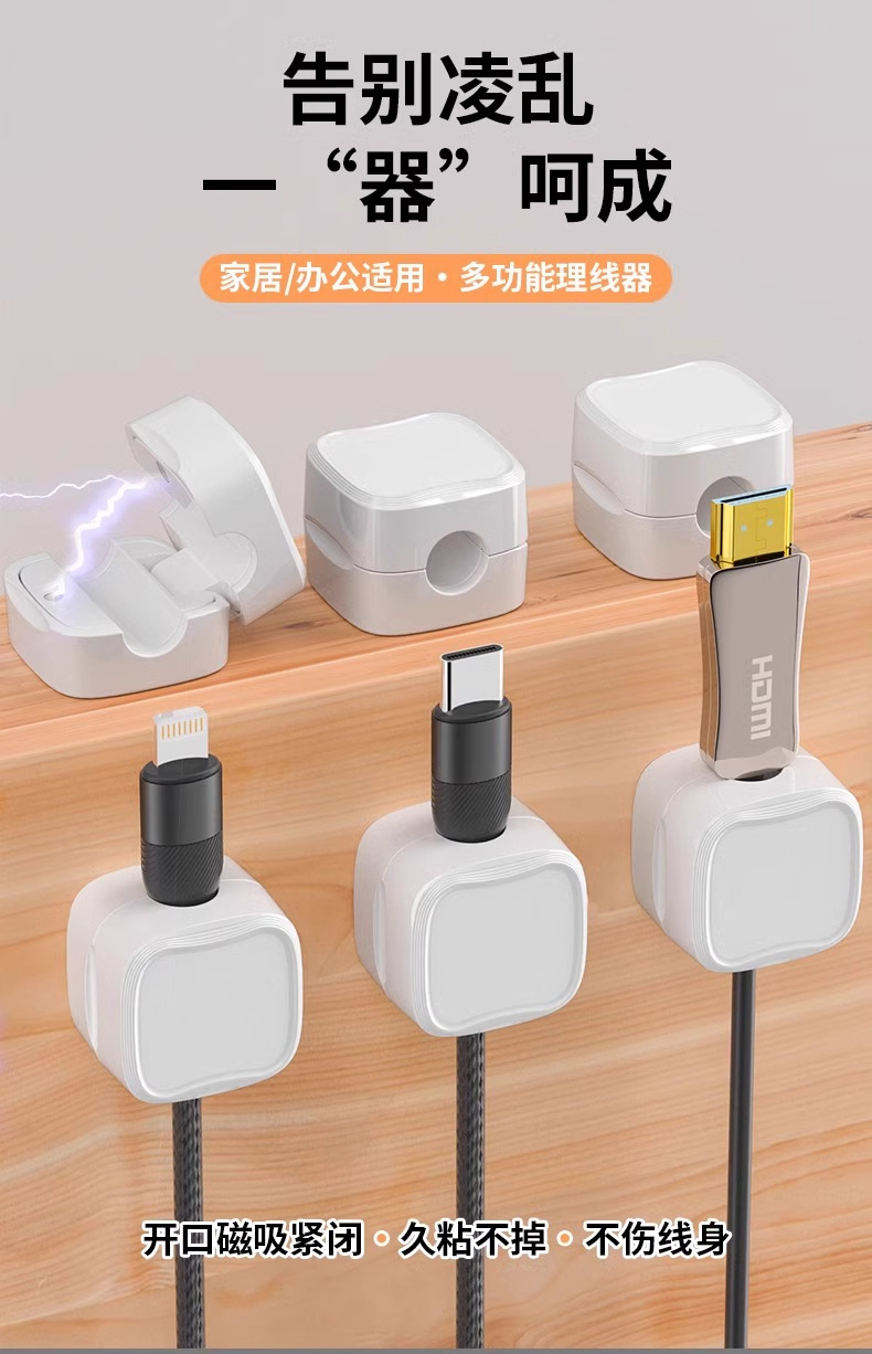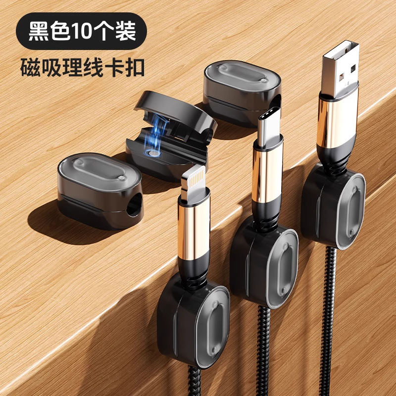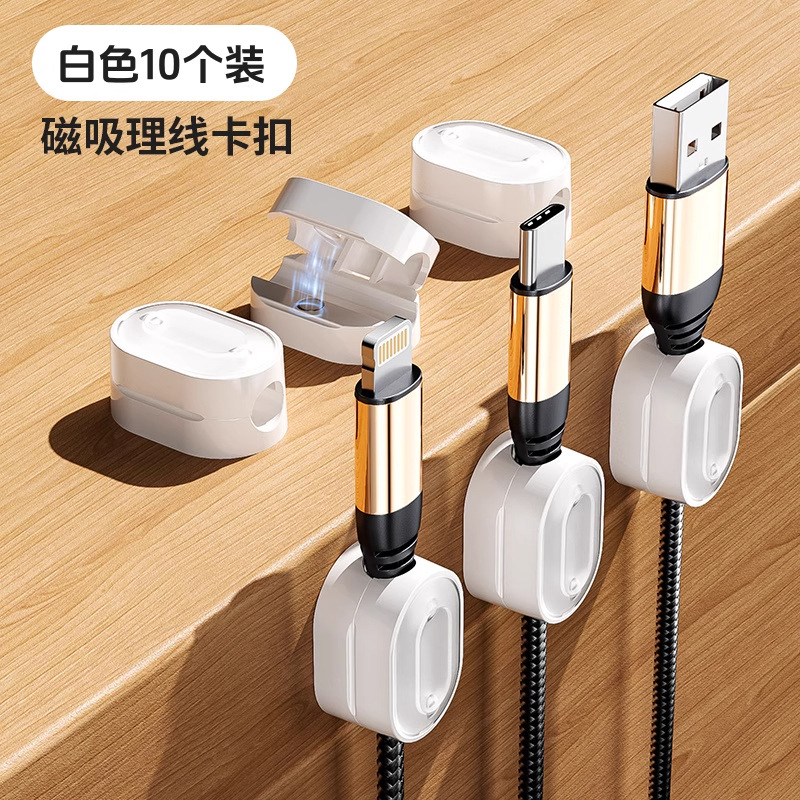 10个装磁吸理线器办公桌充电数据线整理收纳神器无痕粘贴固定夹