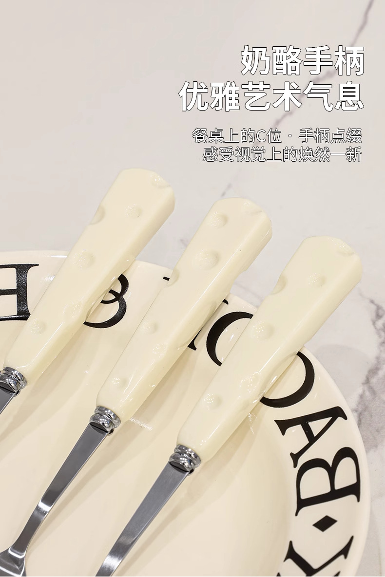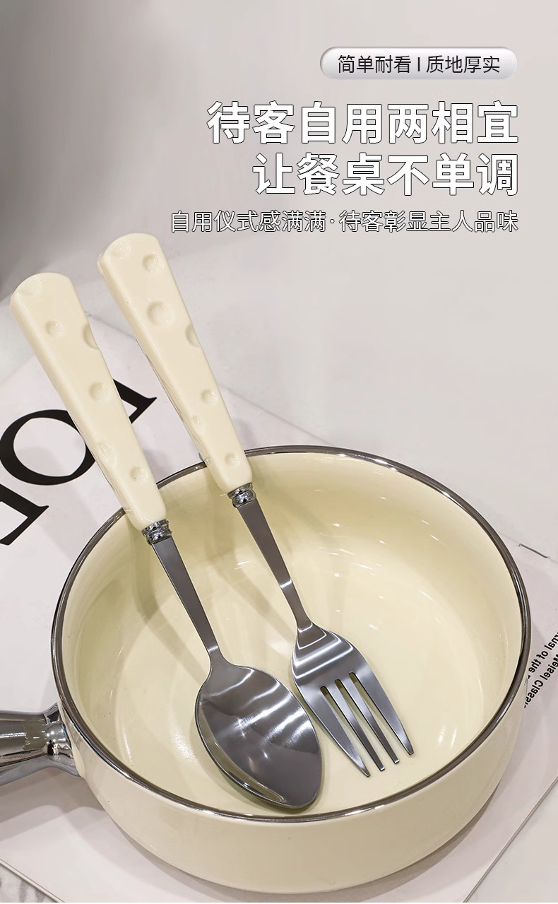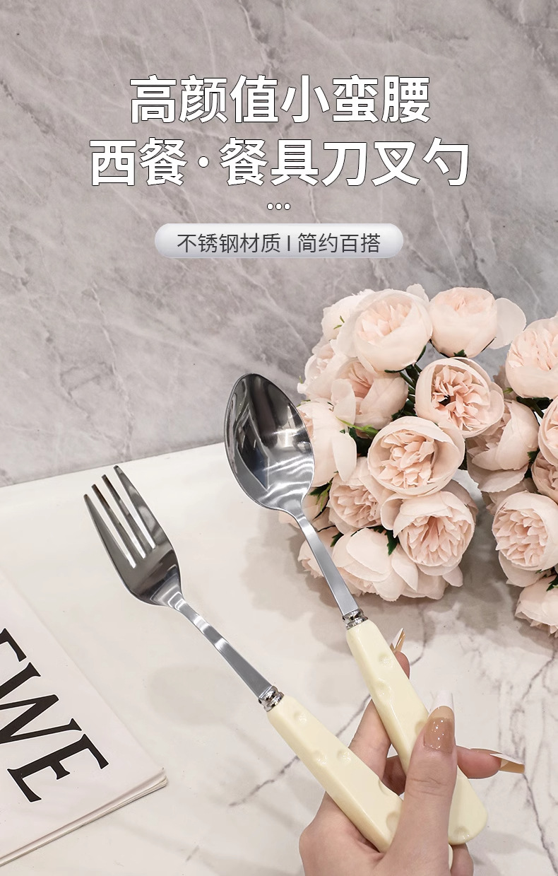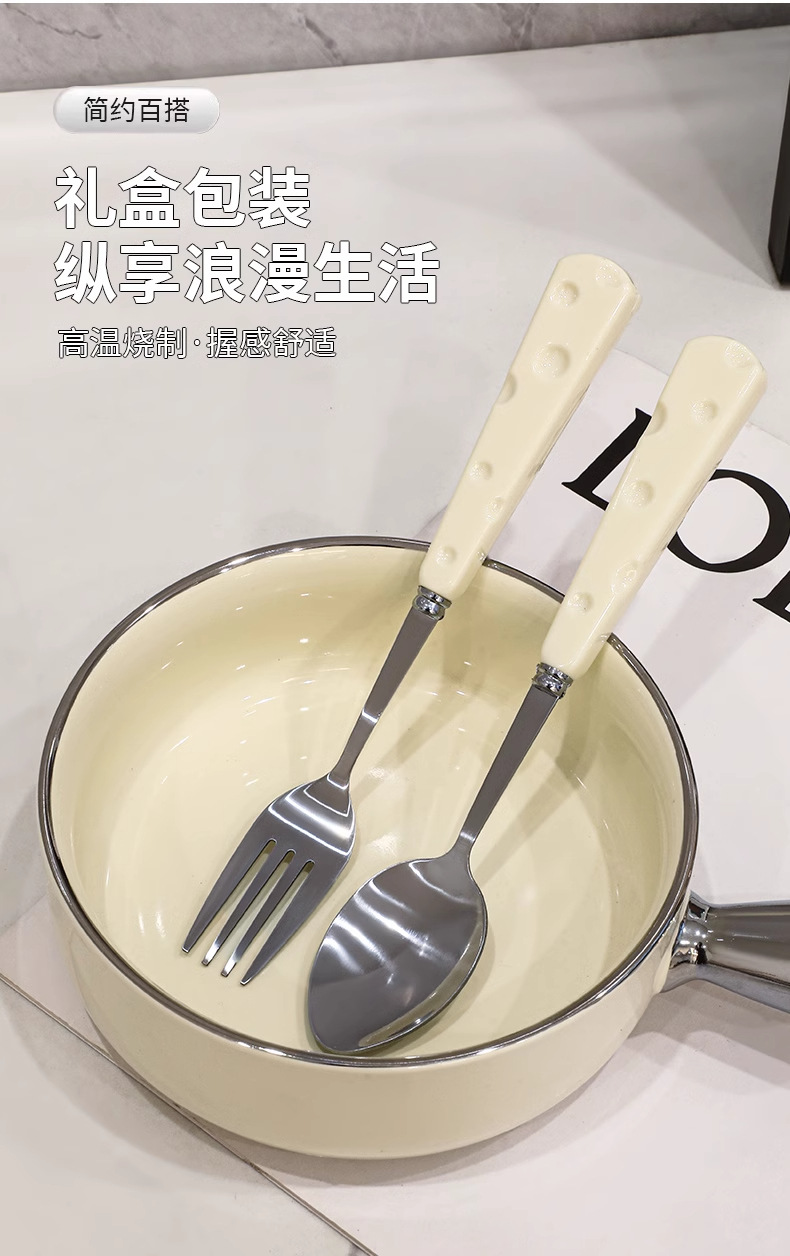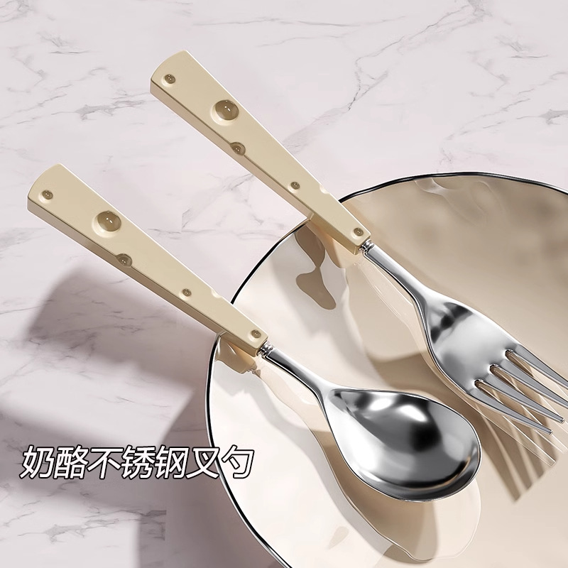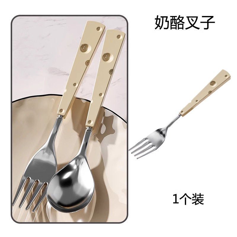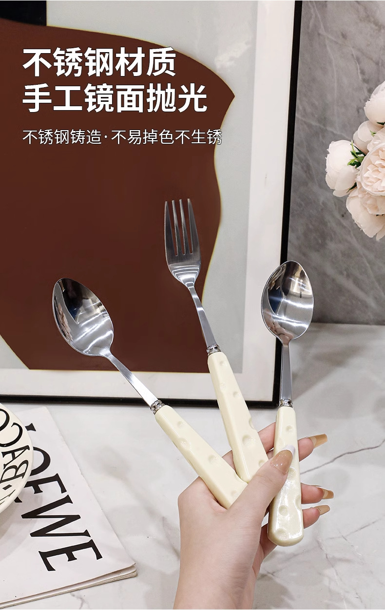 ins风奶酪叉子勺子家用高颜值甜品勺精致西餐不锈钢叉勺餐具套装