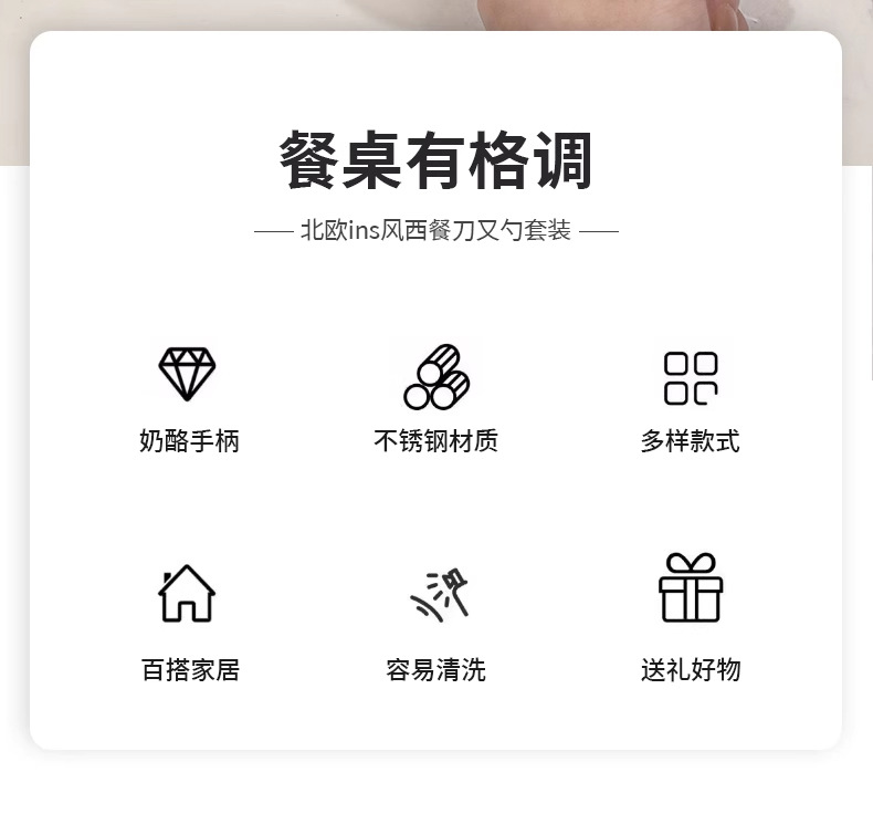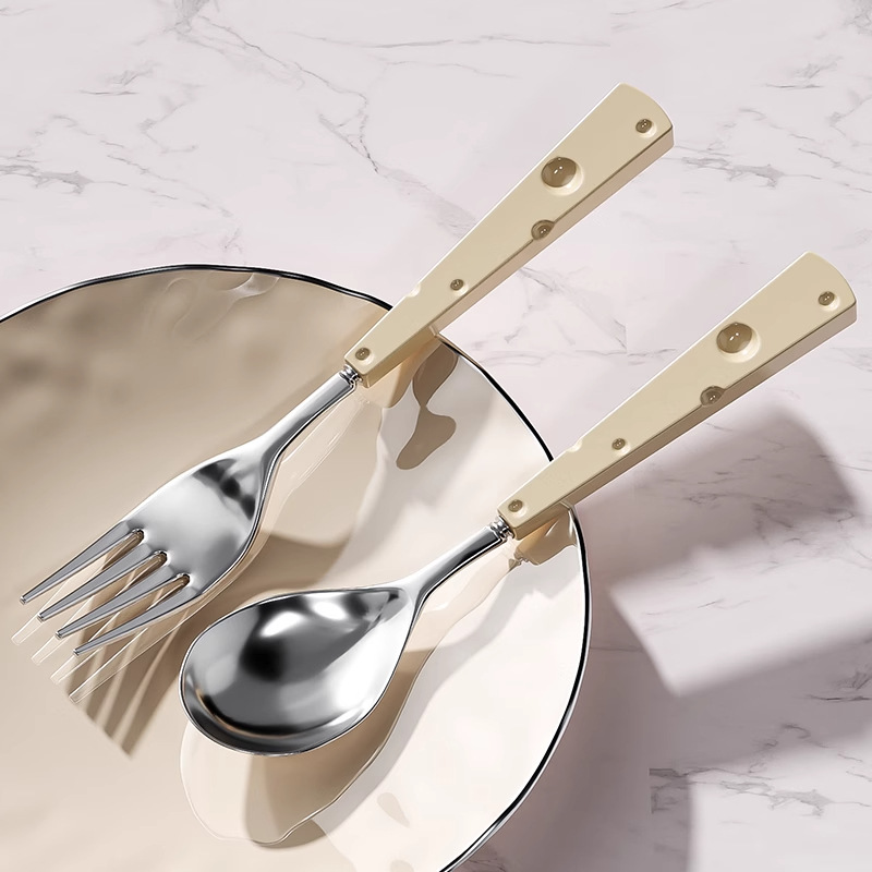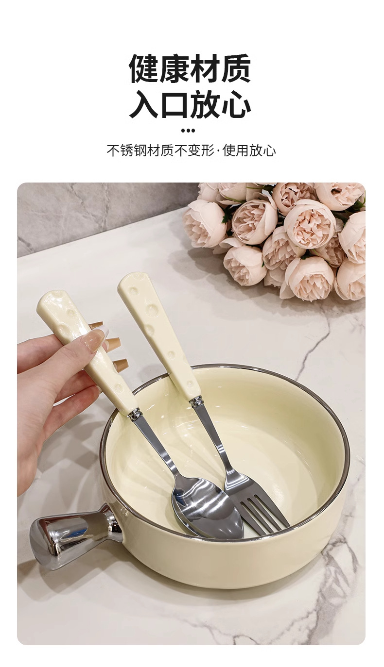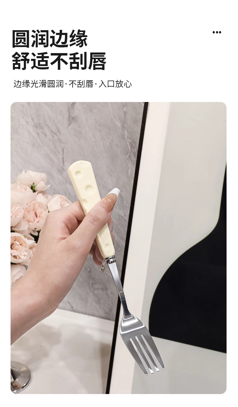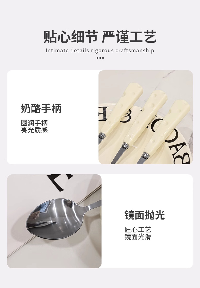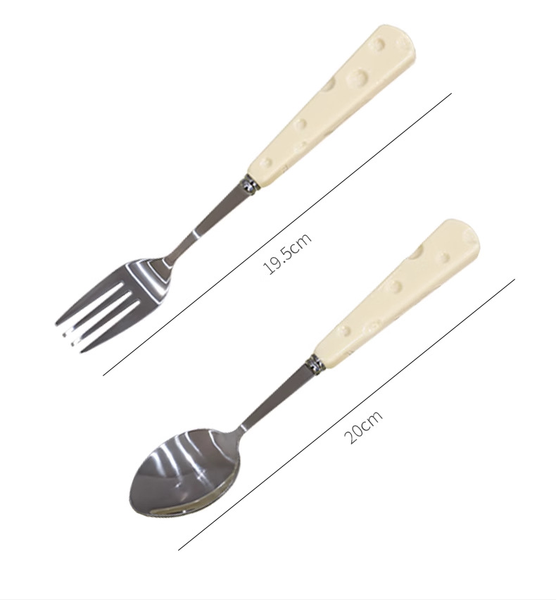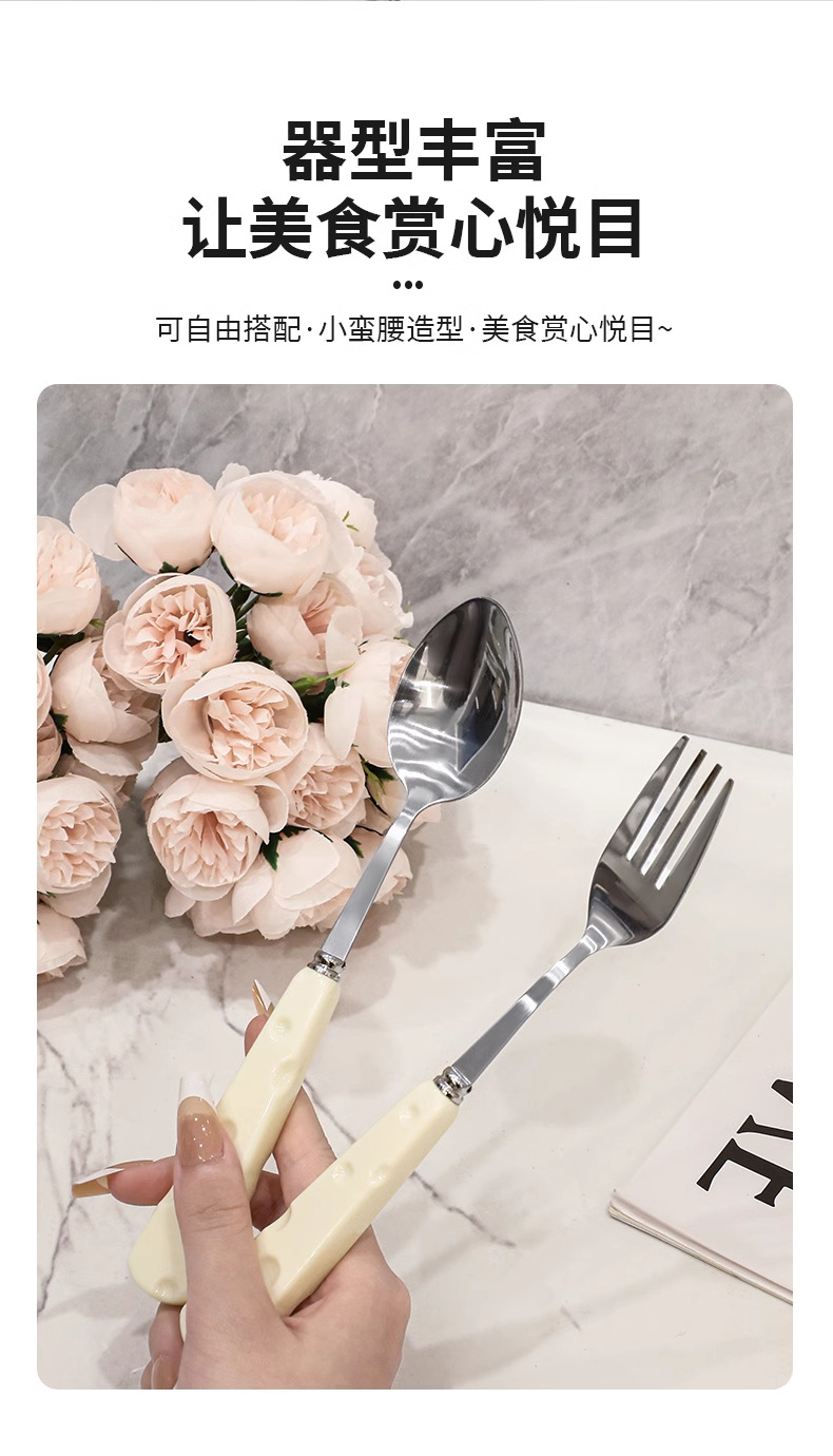 ins风奶酪叉子勺子家用高颜值甜品勺精致西餐不锈钢叉勺餐具套装