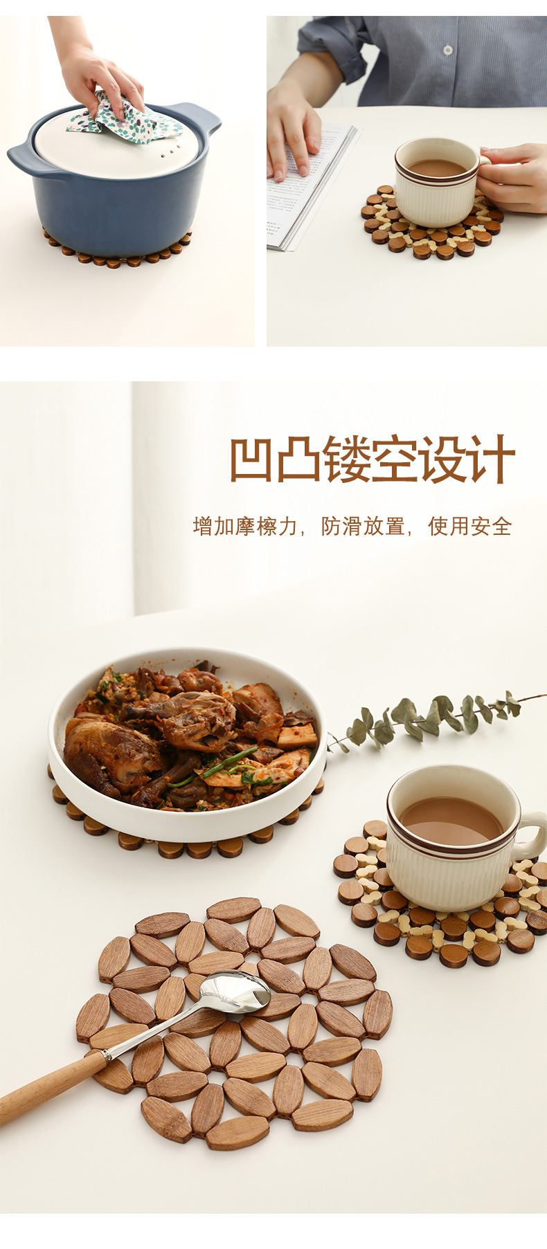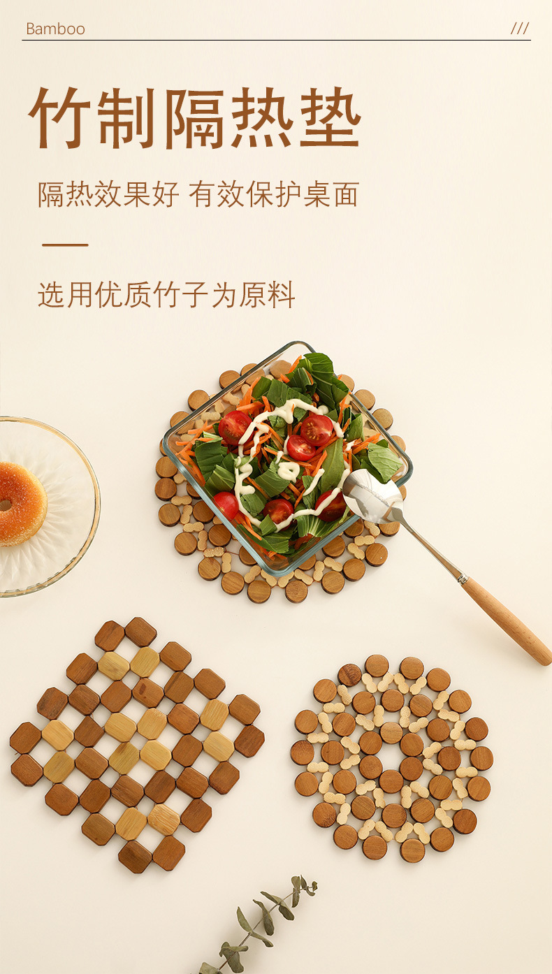 竹质隔热垫家用餐盘垫砂锅垫盘垫餐桌垫防滑锅垫方形圆形碗垫杯垫