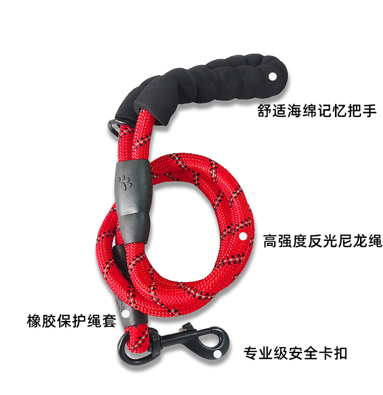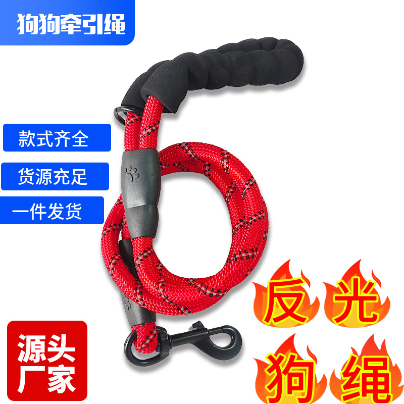 工厂直销 新款防爆耐磨尼龙反光狗狗牵引绳 宠物通用遛狗绳批发