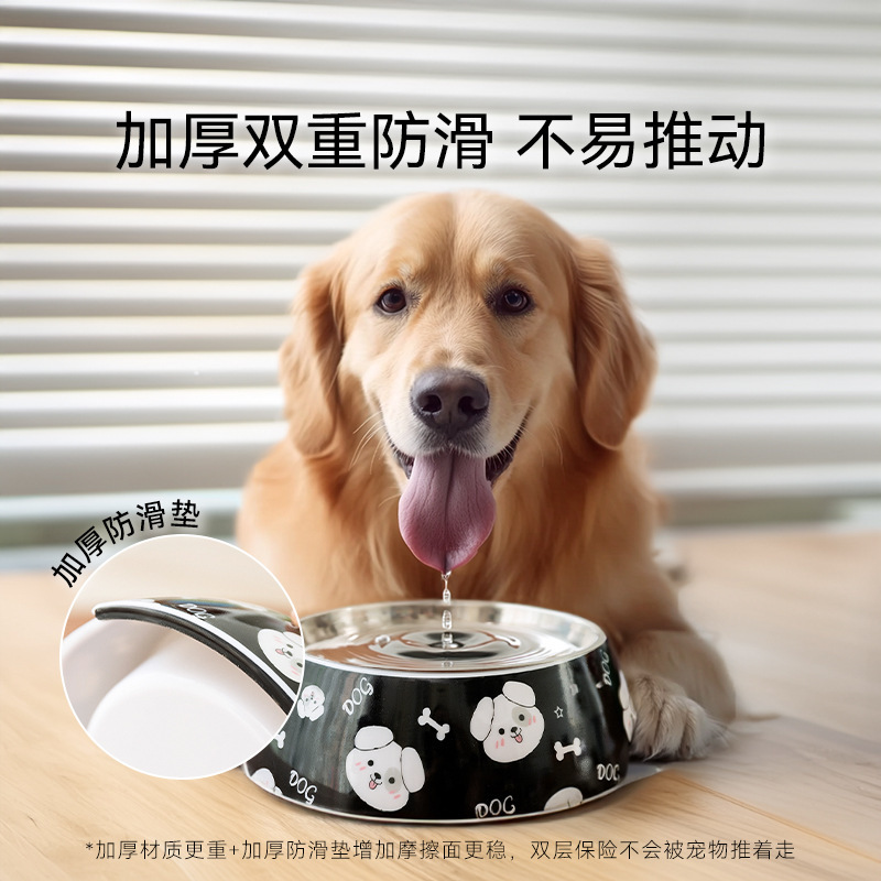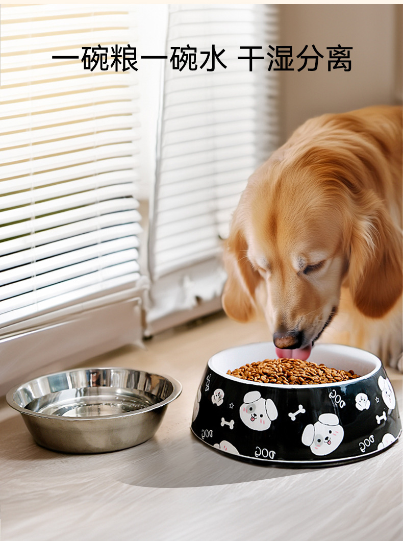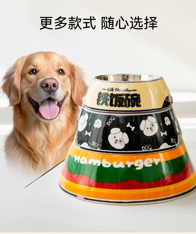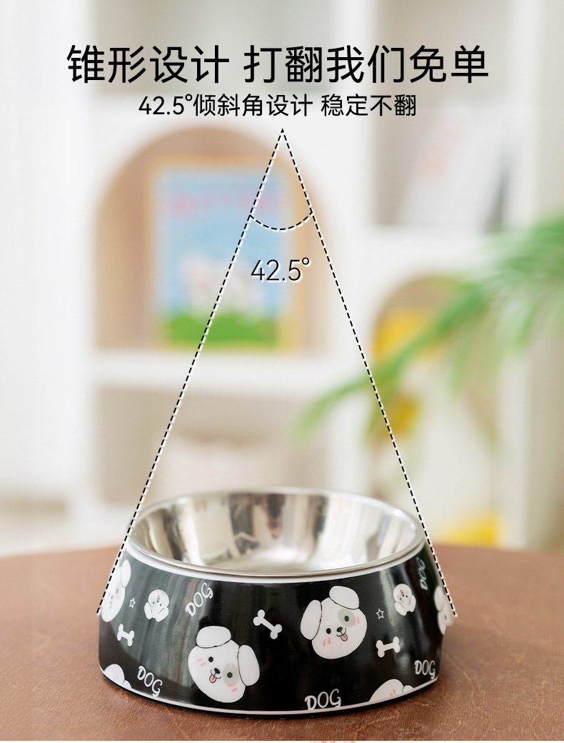 印花密胺不锈钢猫碗狗碗双碗保护颈椎猫碗斜口碗宠物食盆大狗用品