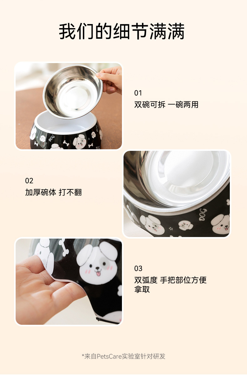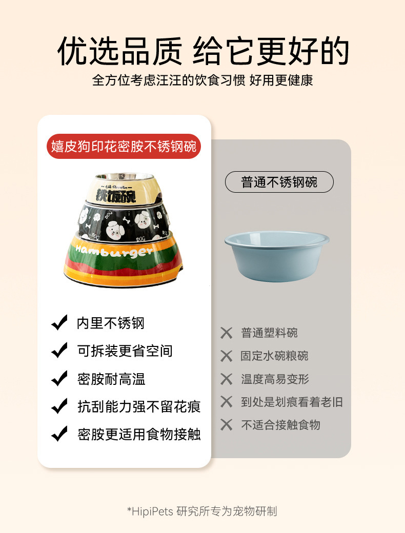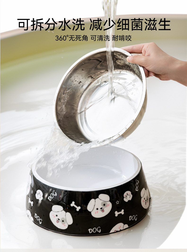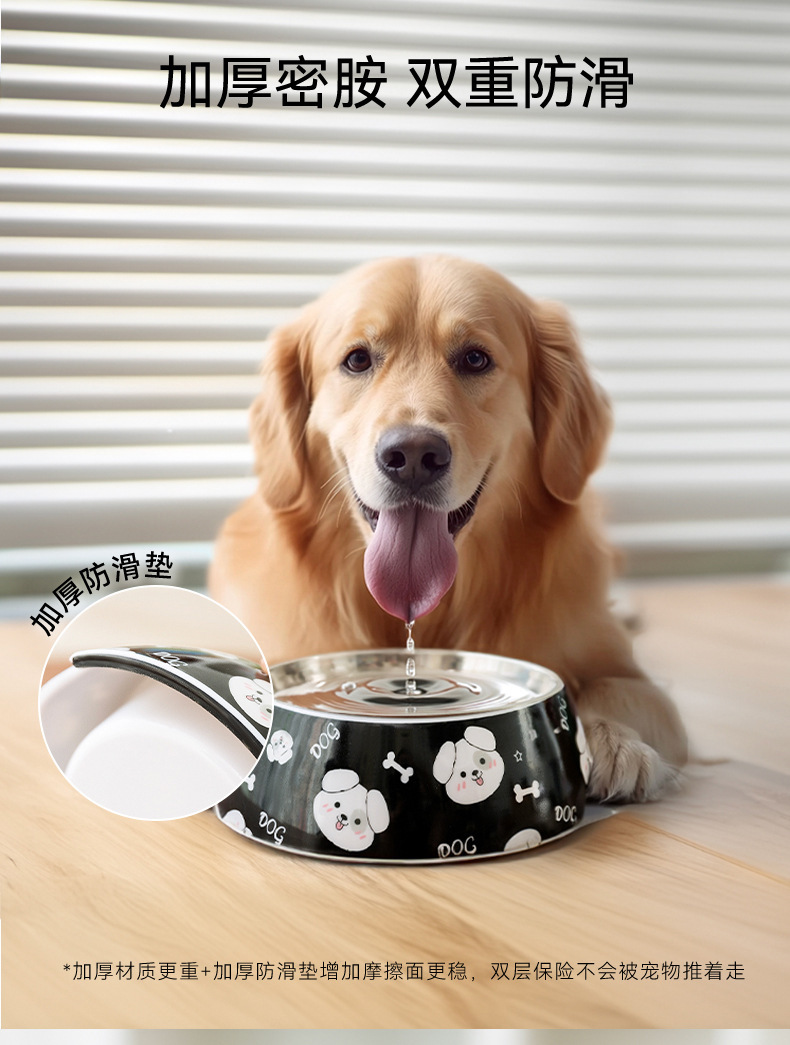 印花密胺不锈钢猫碗狗碗双碗保护颈椎猫碗斜口碗宠物食盆大狗用品