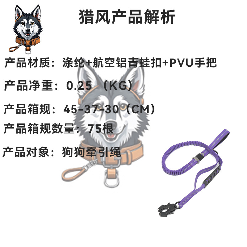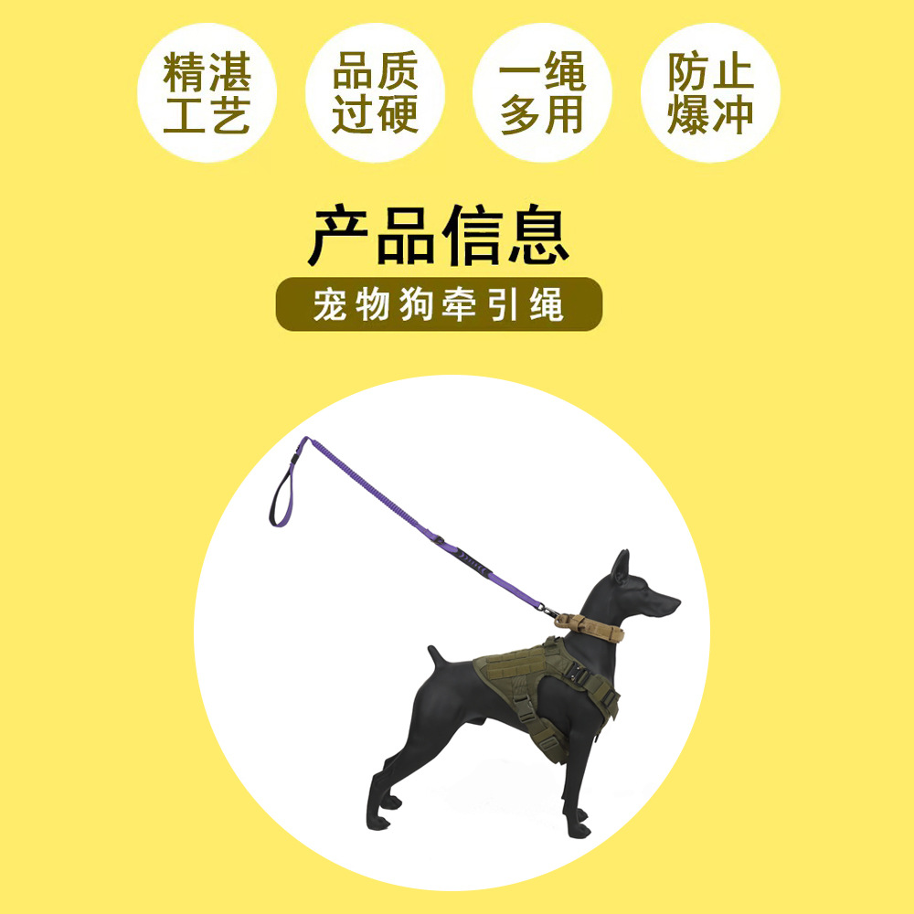 跨境狗狗大型犬车载宠物新款牵引绳青蛙扣战术狗狗反光牵引狗绳