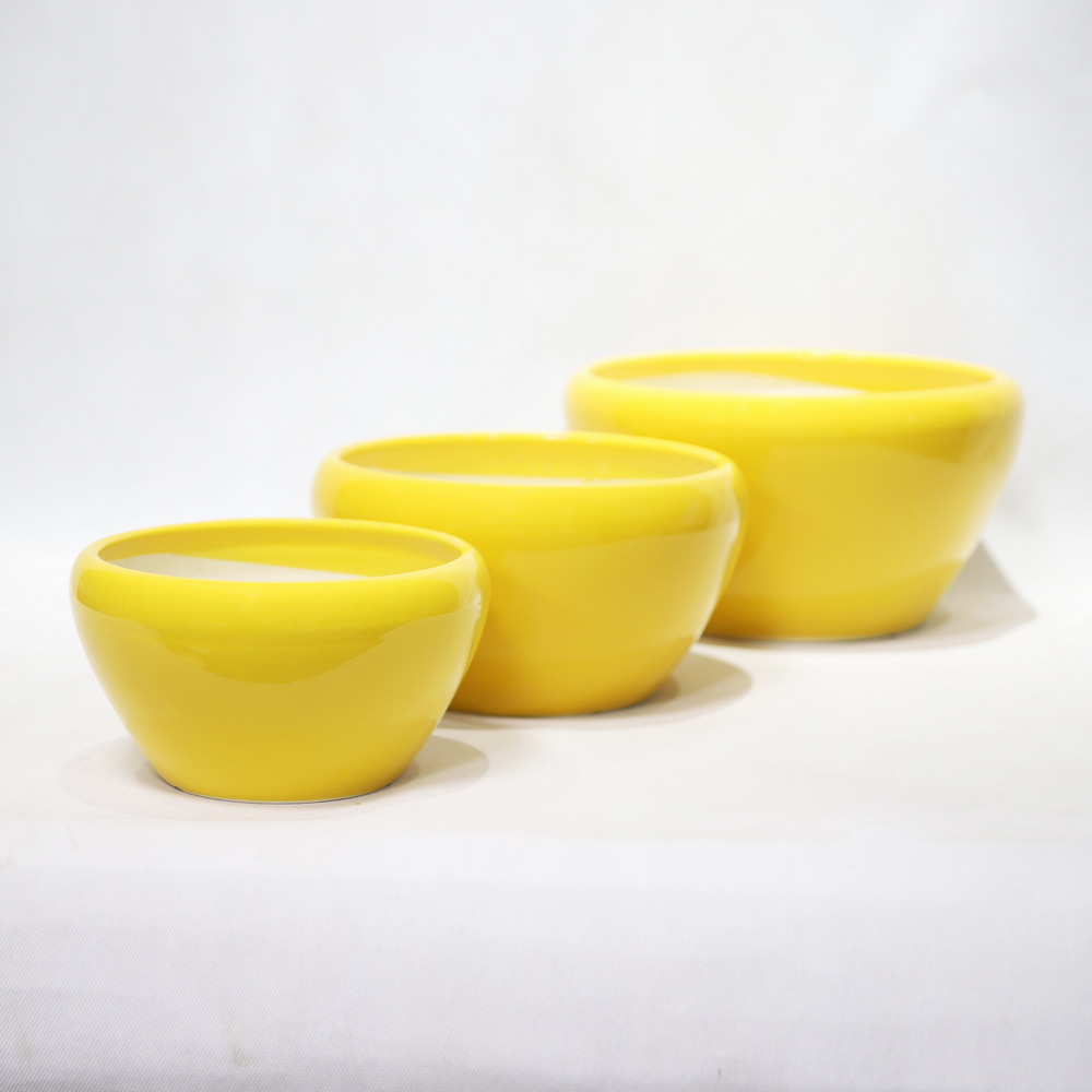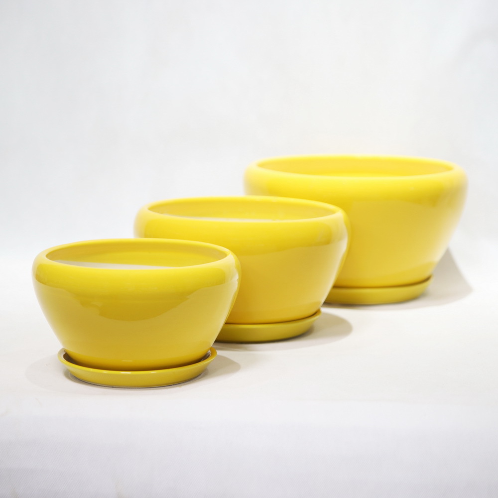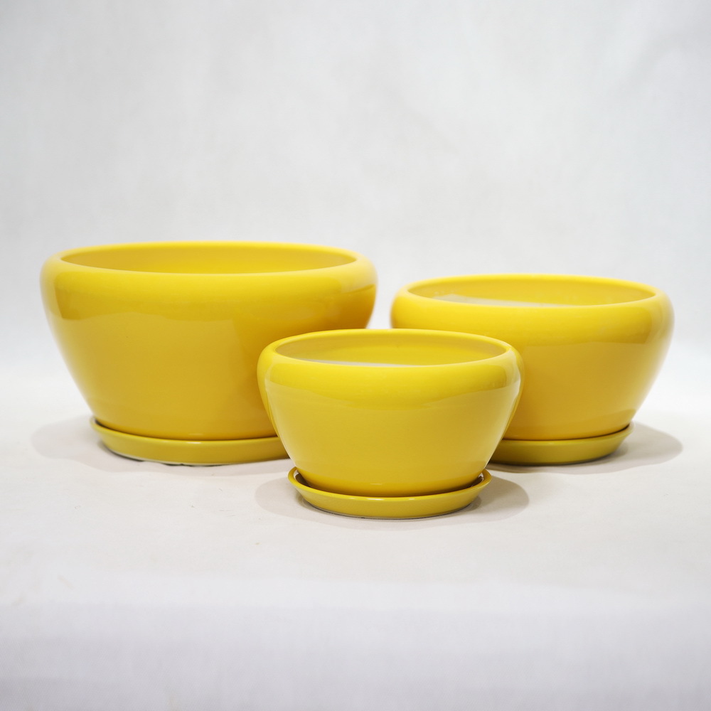 陶瓷花盆三件套园艺办公桌家庭商场酒店多肉绿植盆栽北欧风361黄