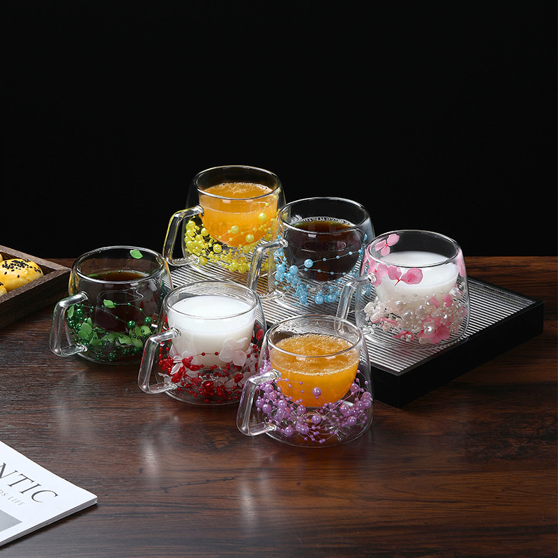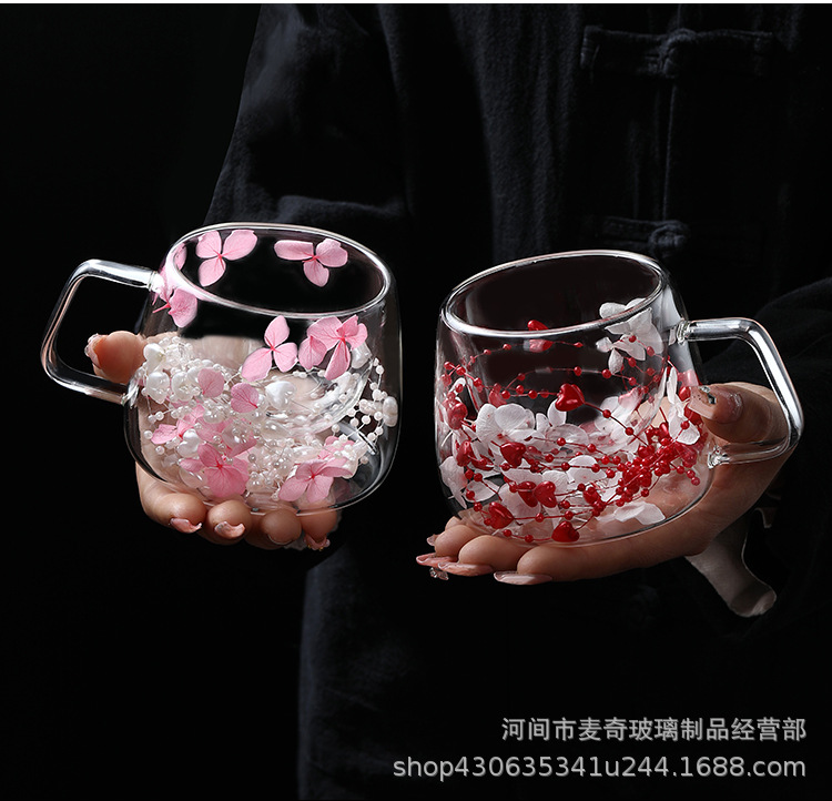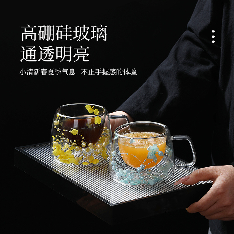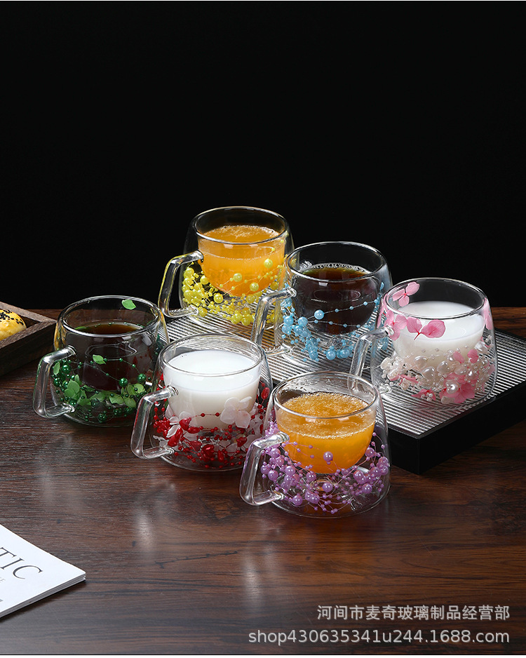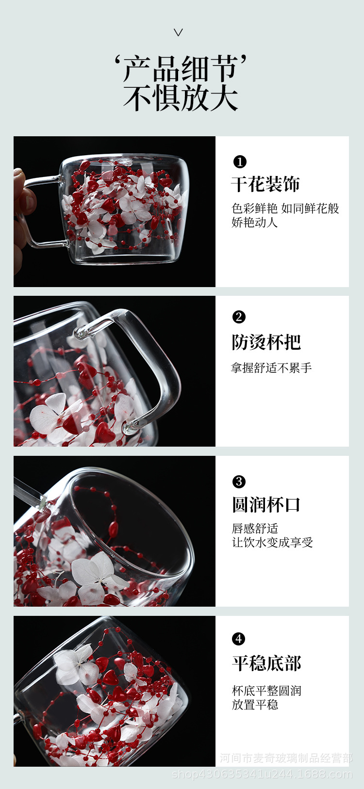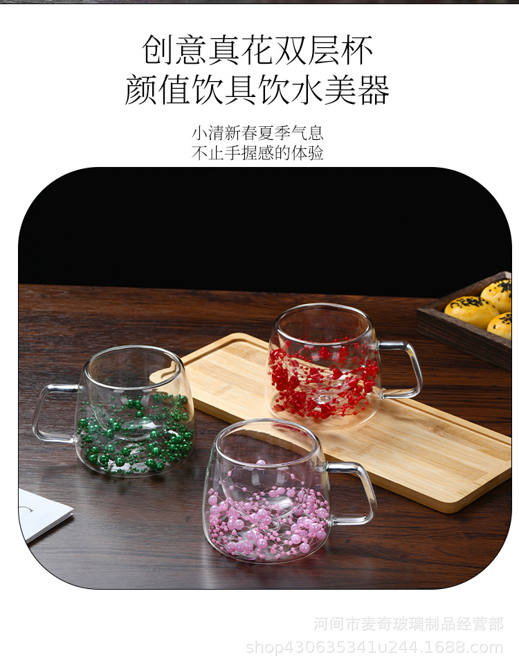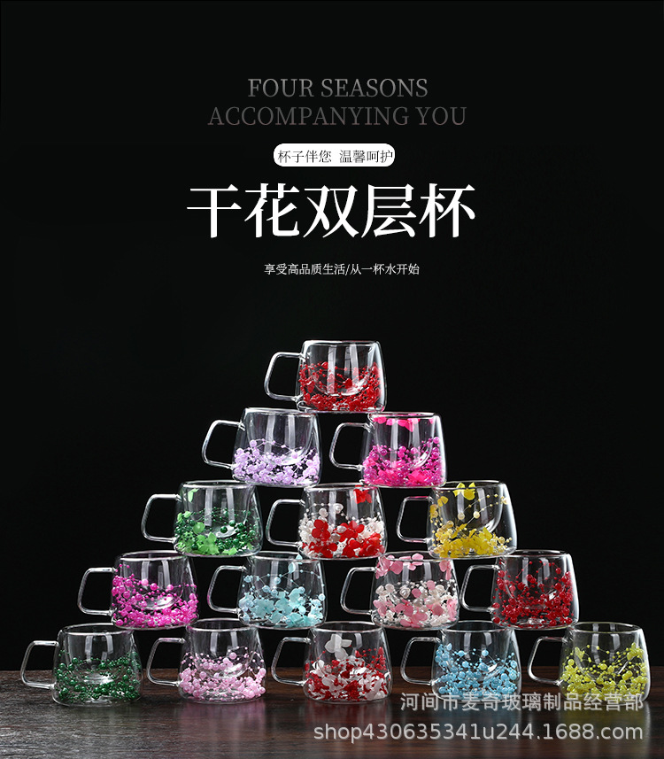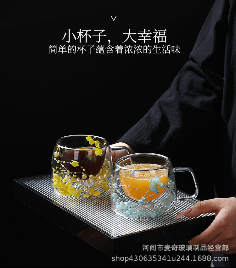 高硼硅玻璃干花杯带把手跨境咖啡杯家用果汁杯隔热双层喝水杯