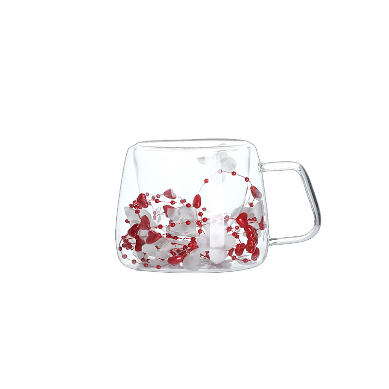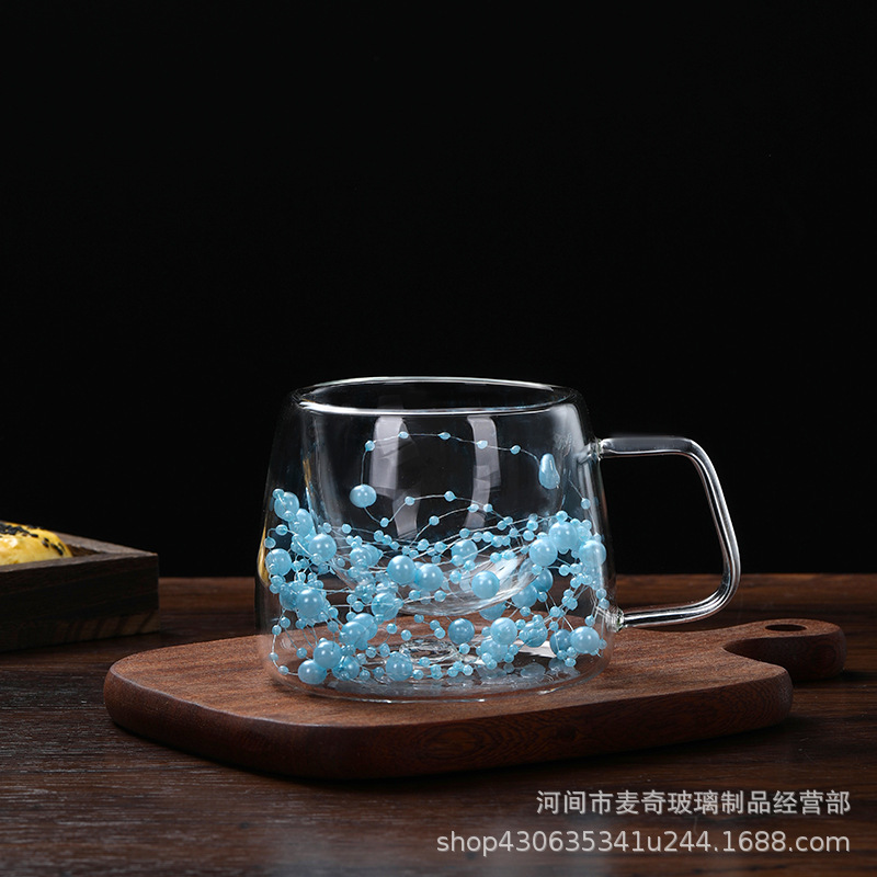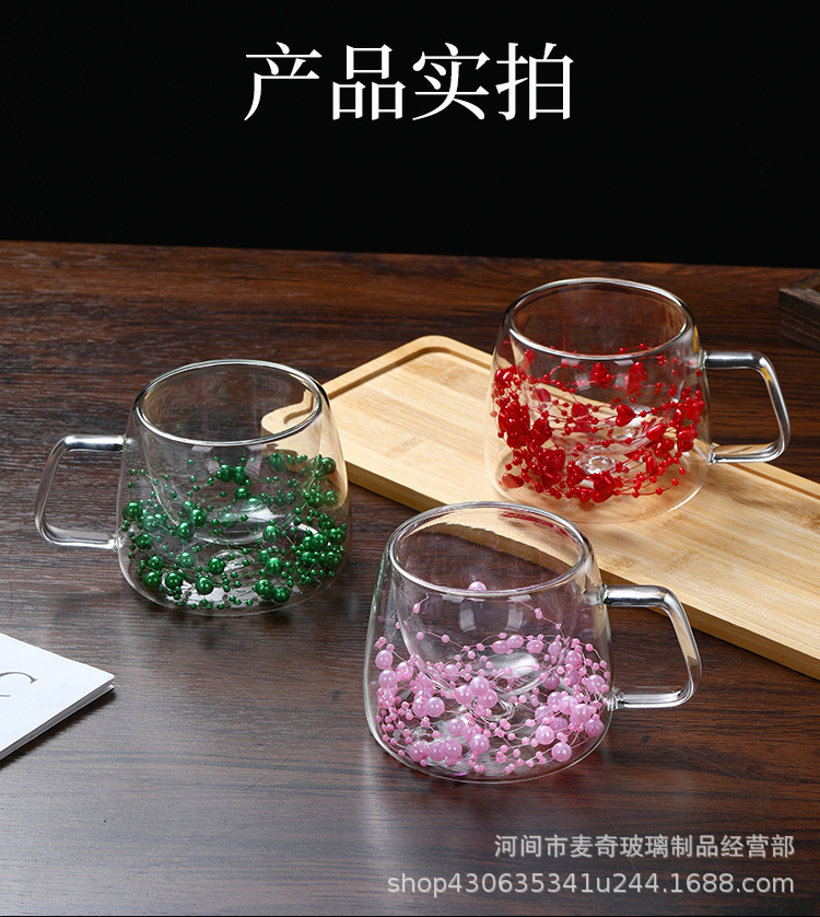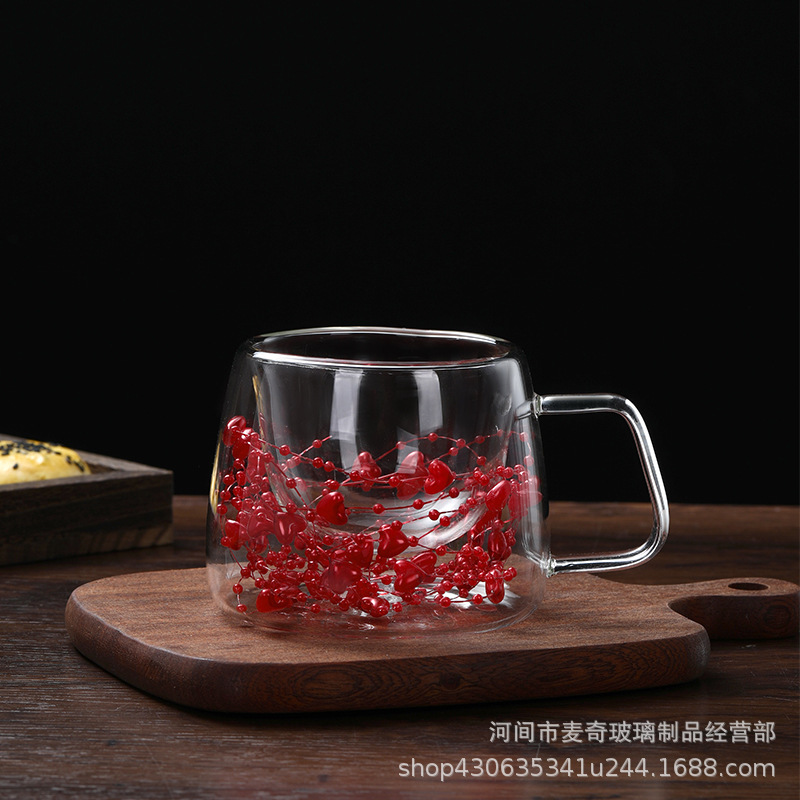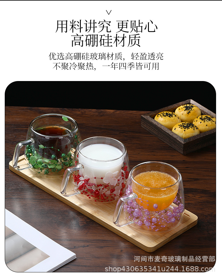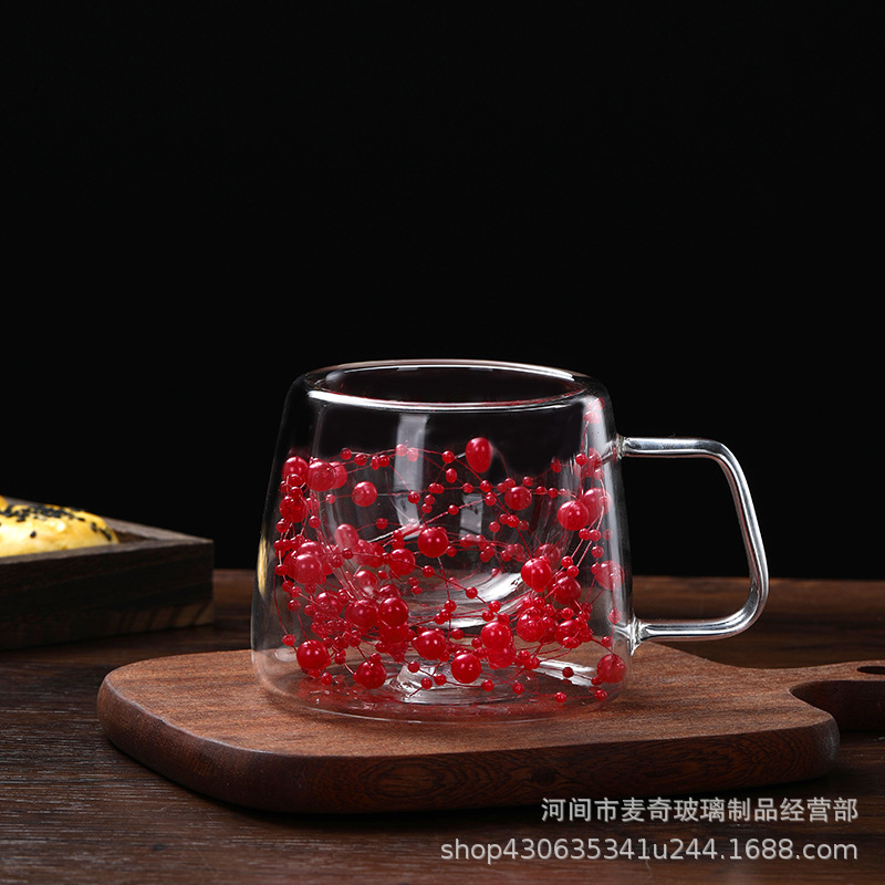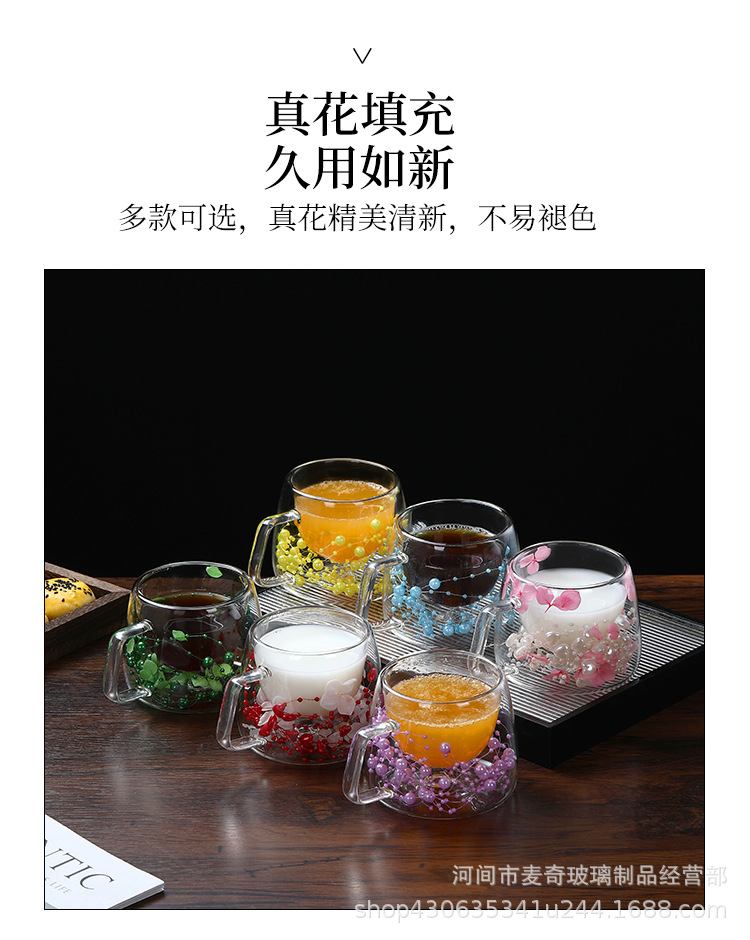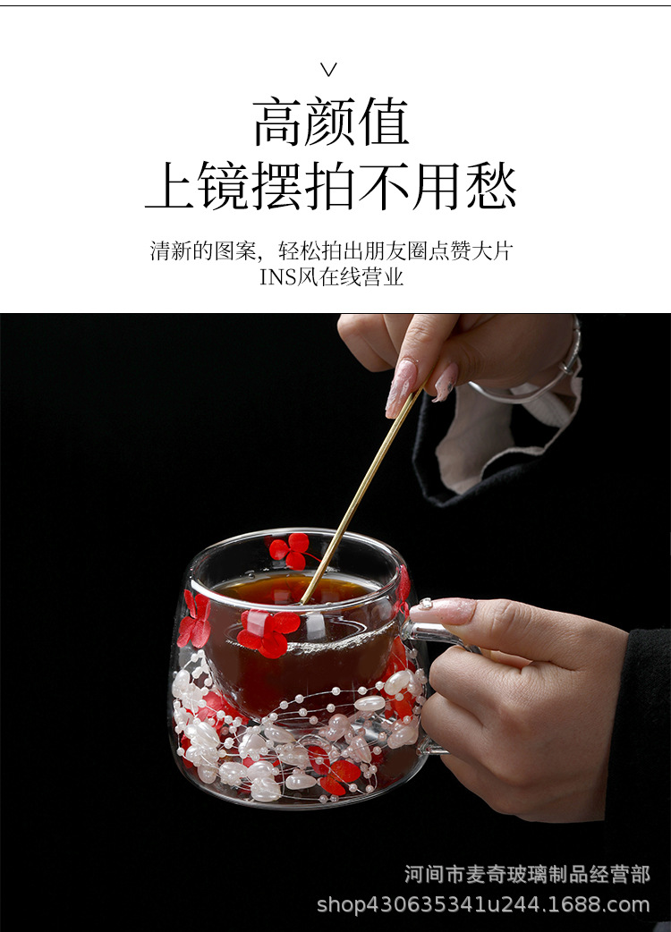 高硼硅玻璃干花杯带把手跨境咖啡杯家用果汁杯隔热双层喝水杯