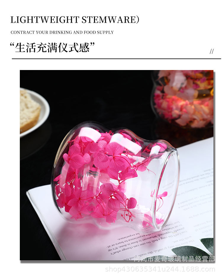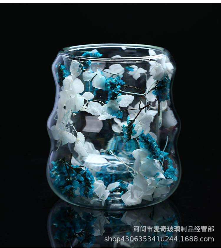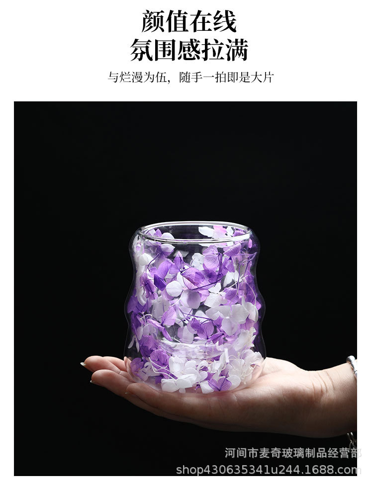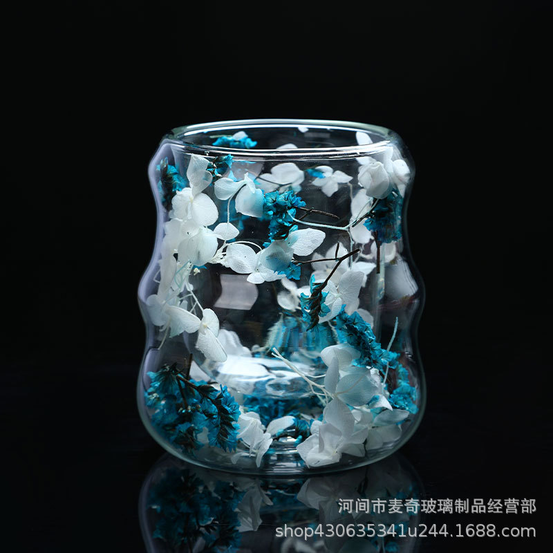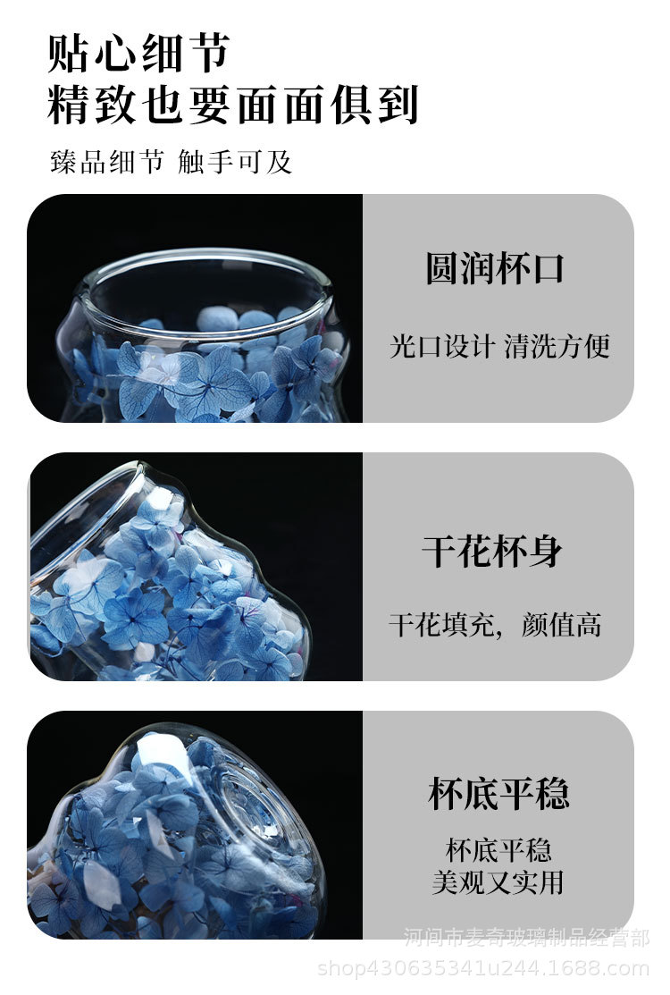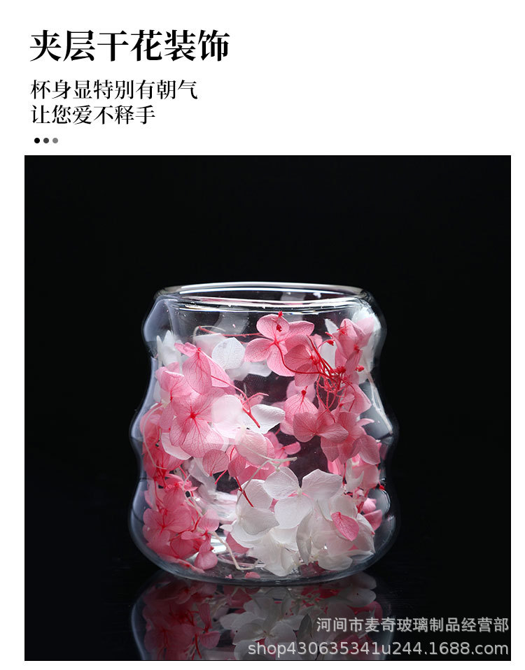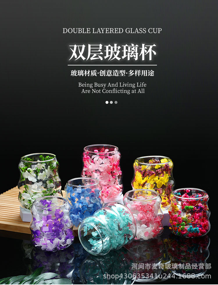 创意干花双层杯高颜值咖啡杯跨境高硼硅玻璃杯夹层干花装饰云朵杯