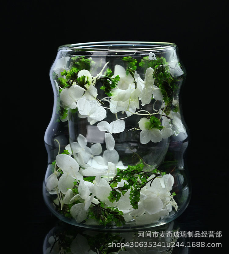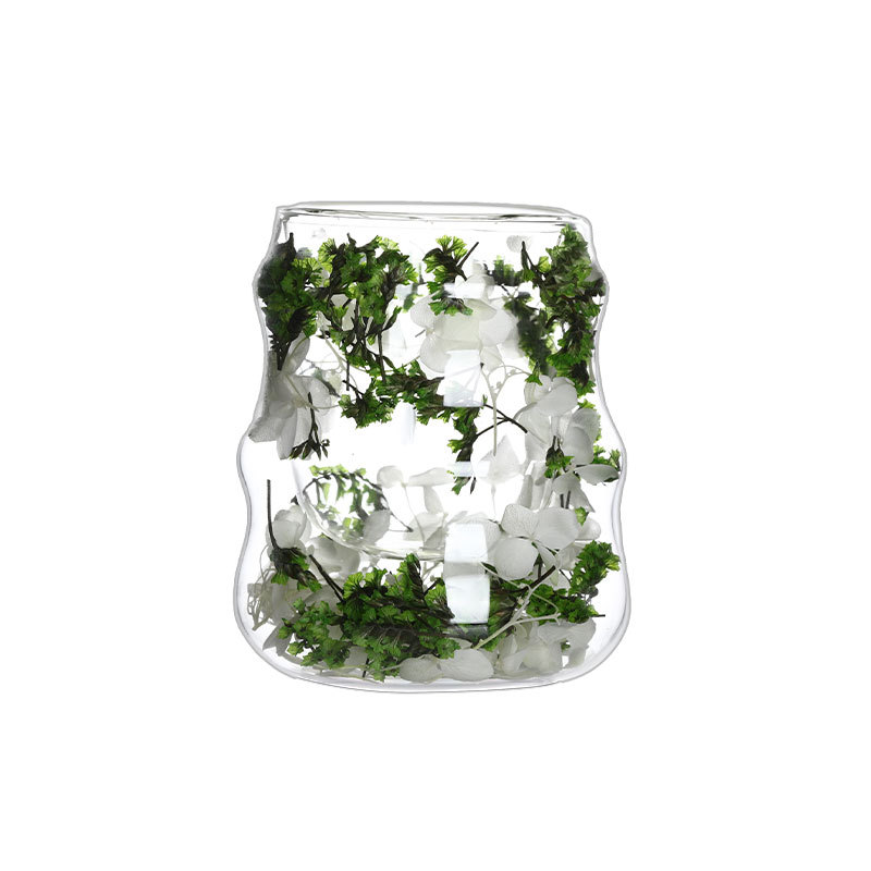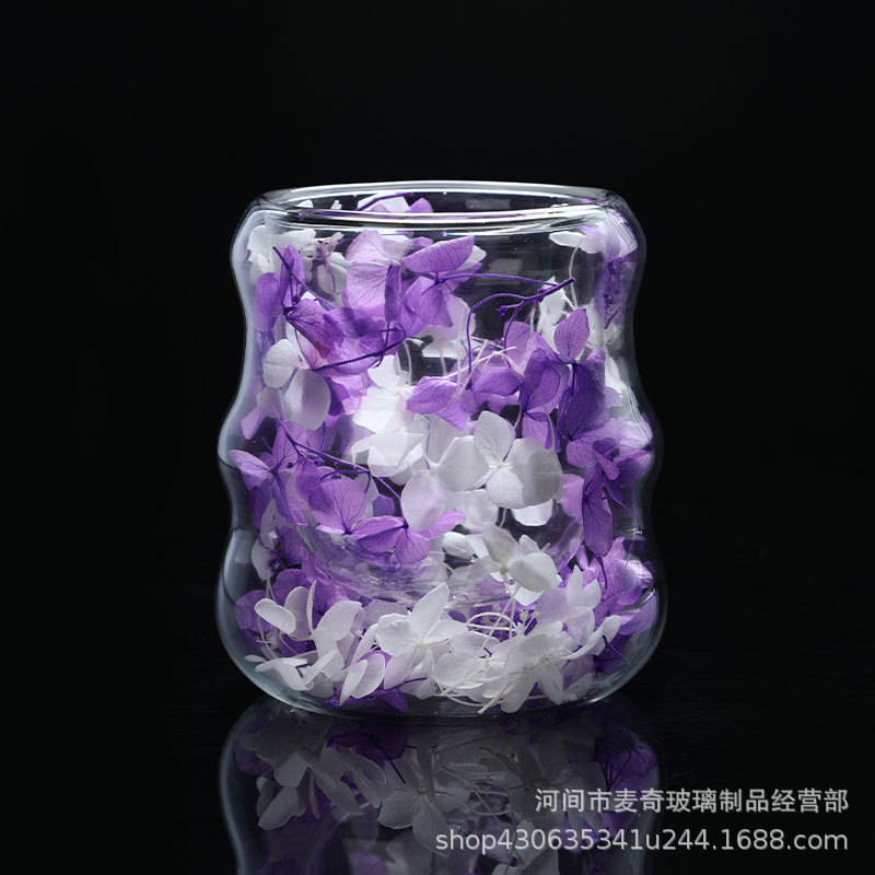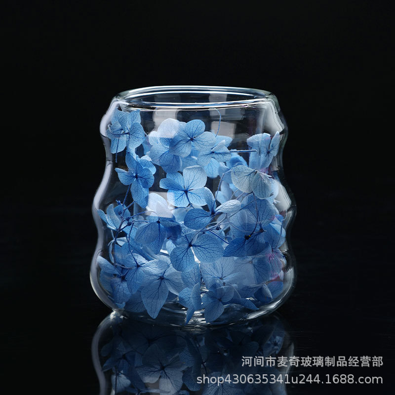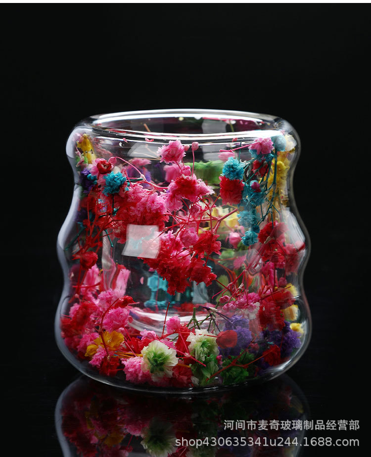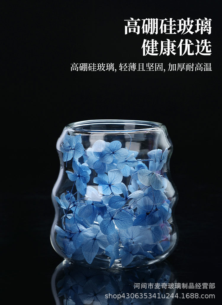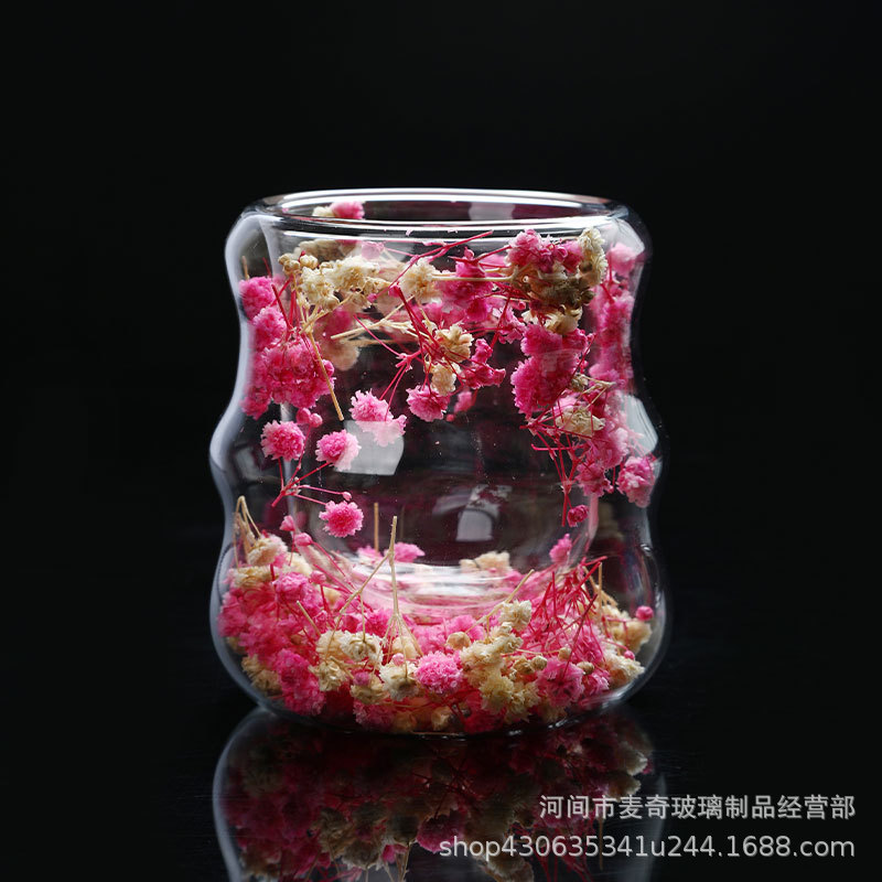 创意干花双层杯高颜值咖啡杯跨境高硼硅玻璃杯夹层干花装饰云朵杯