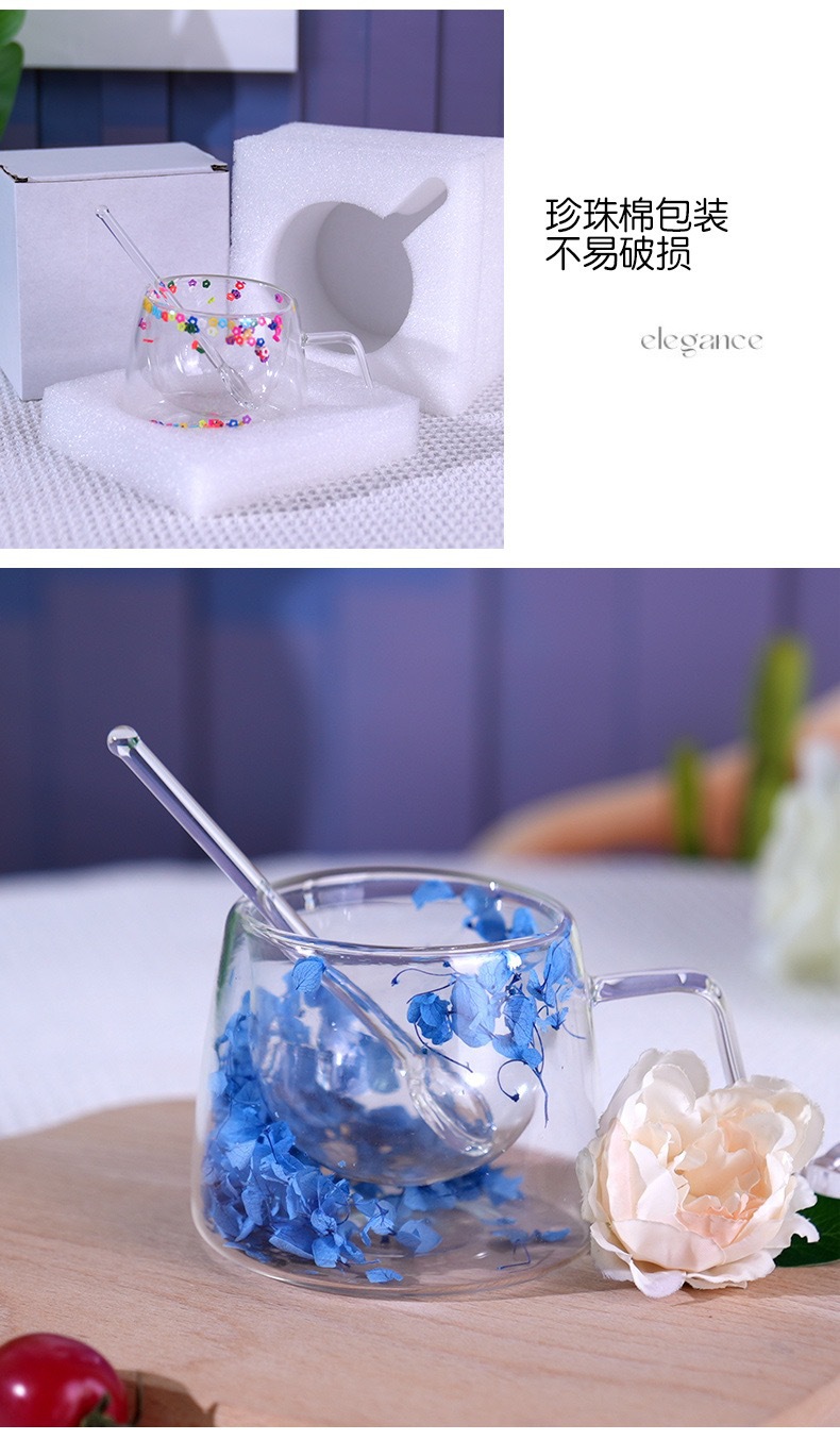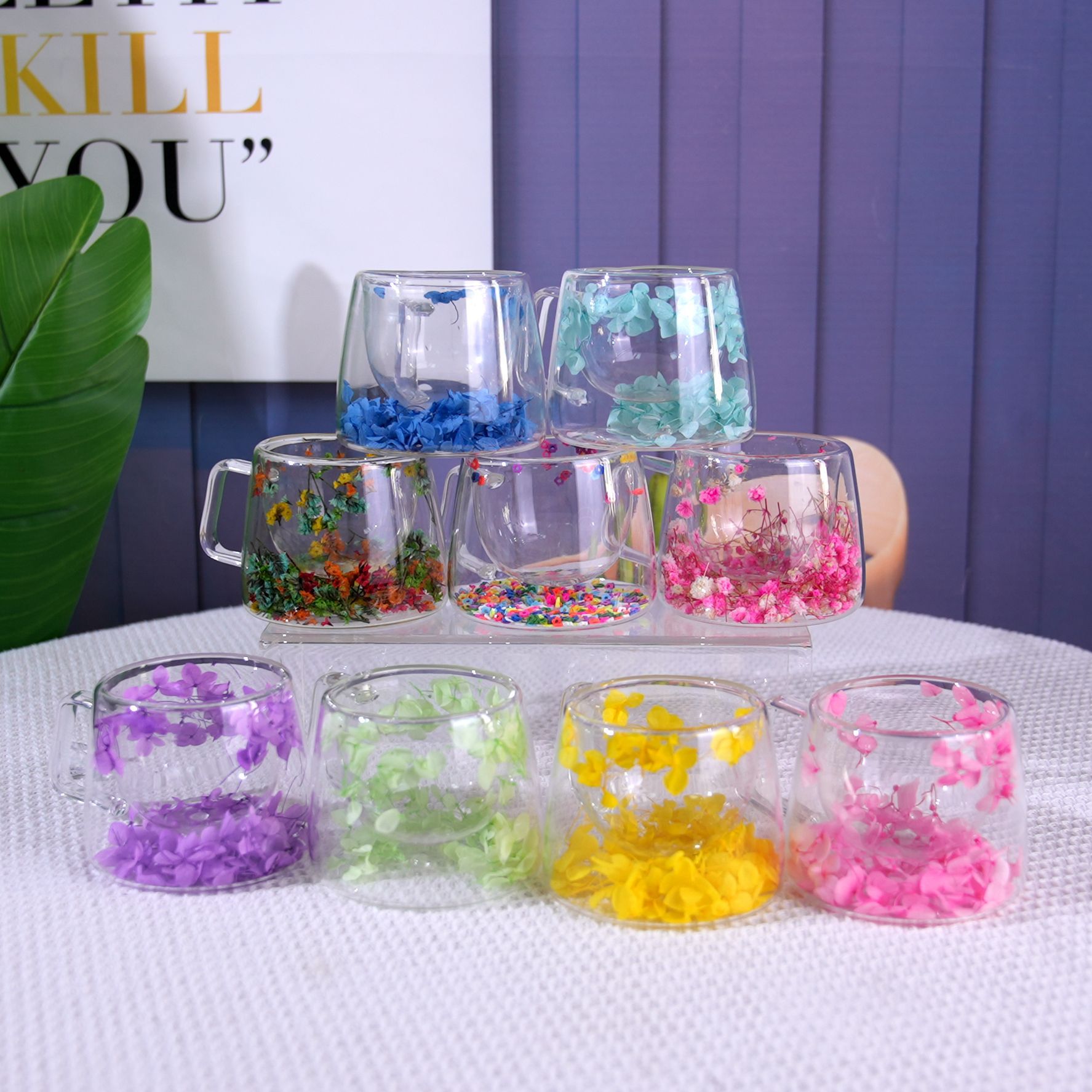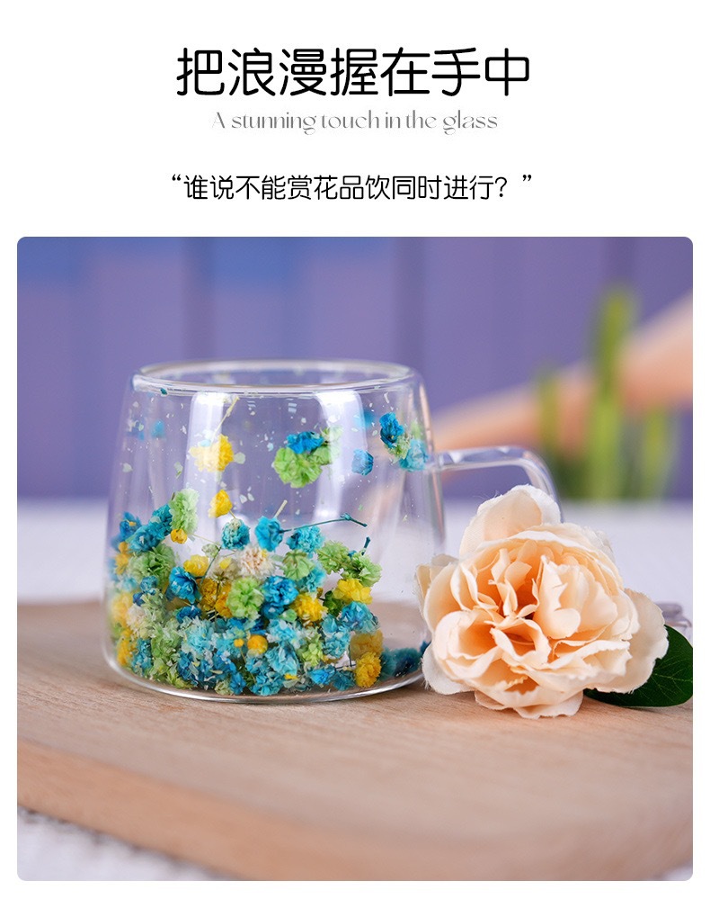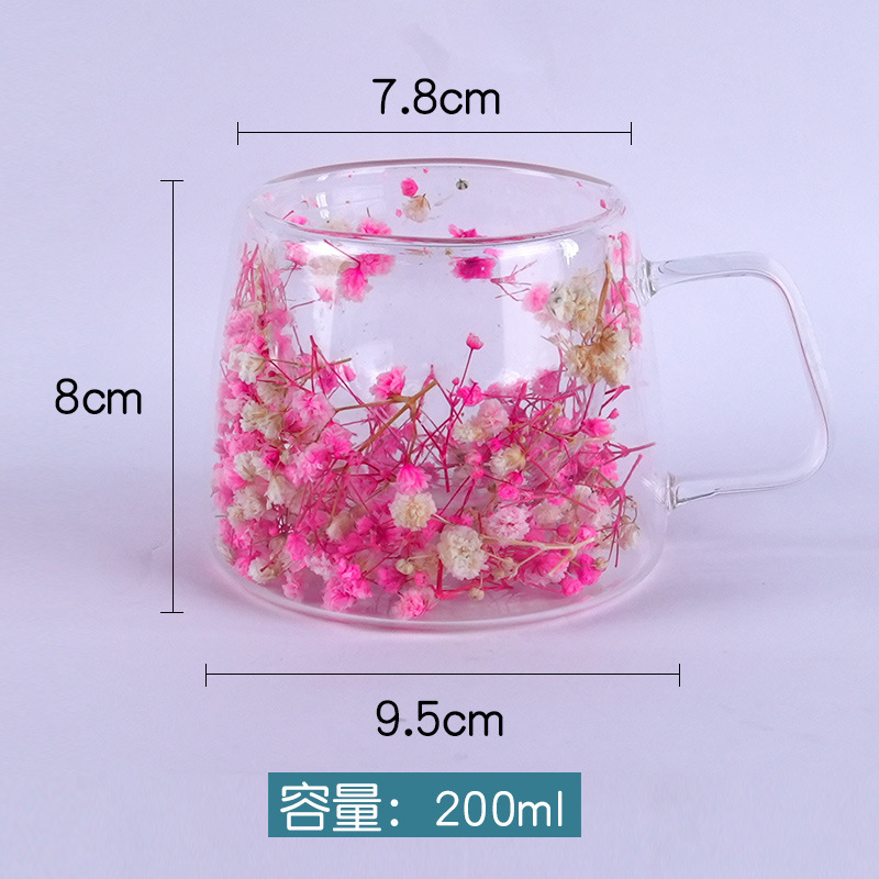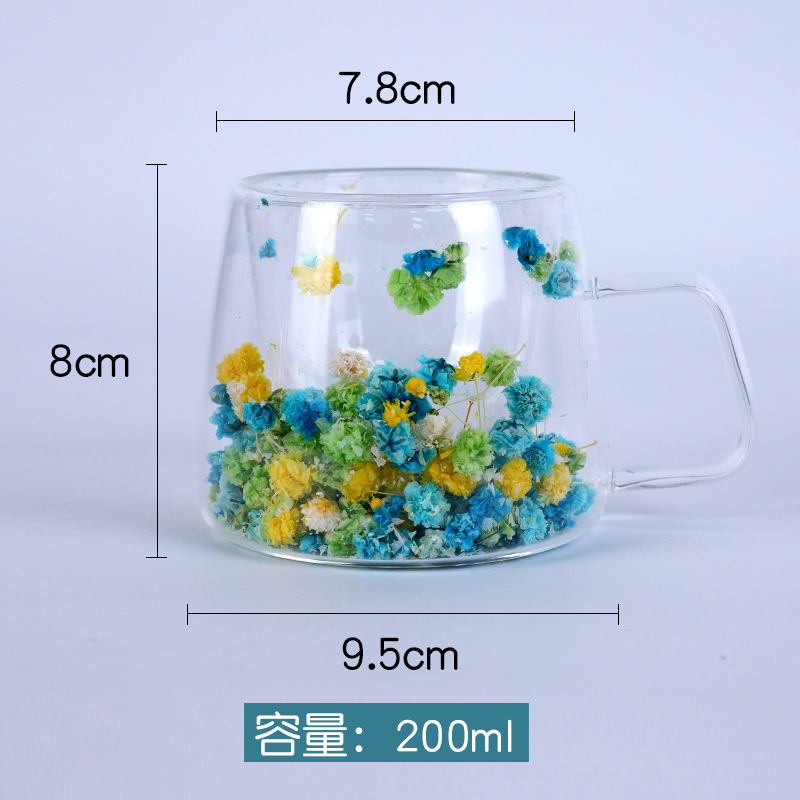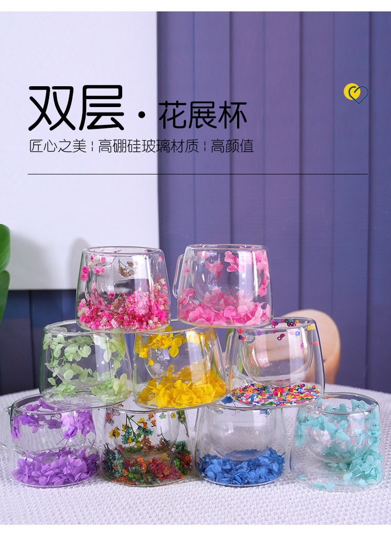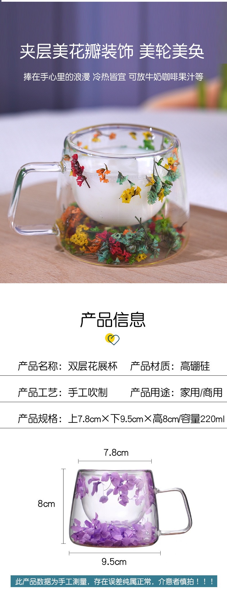 跨境新品真花双层玻璃杯个性高颜值伴手礼咖啡杯高硼硅简约杯子