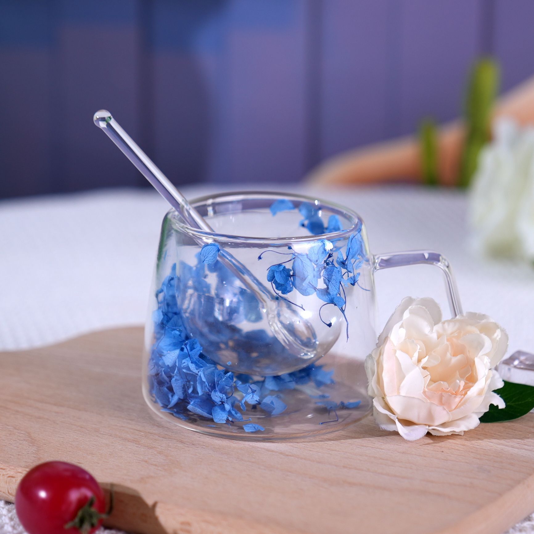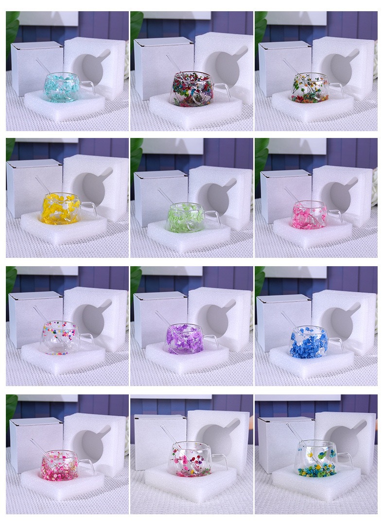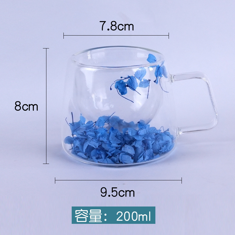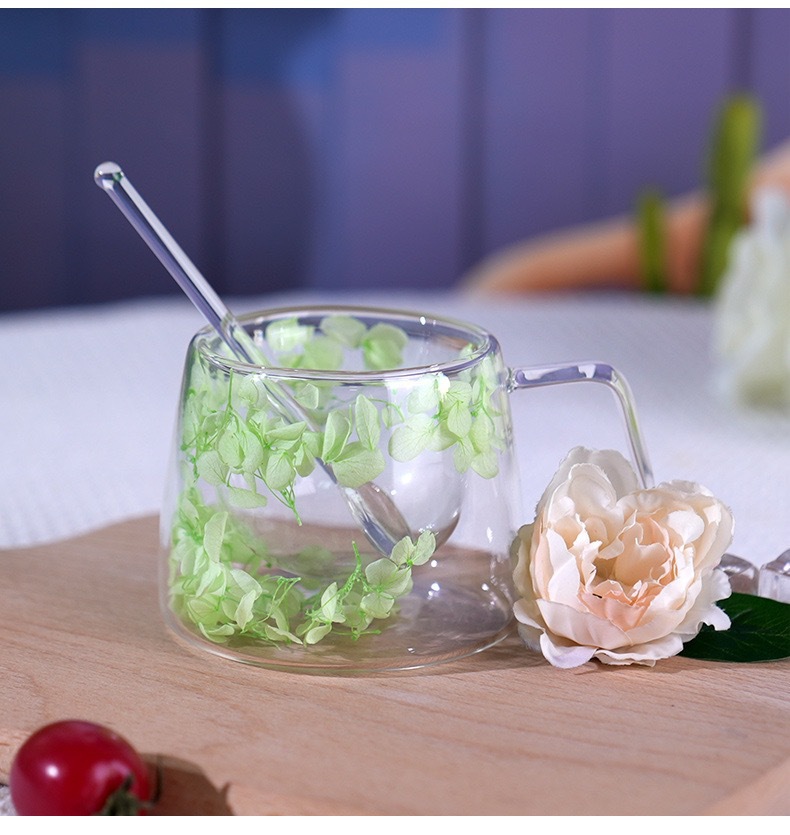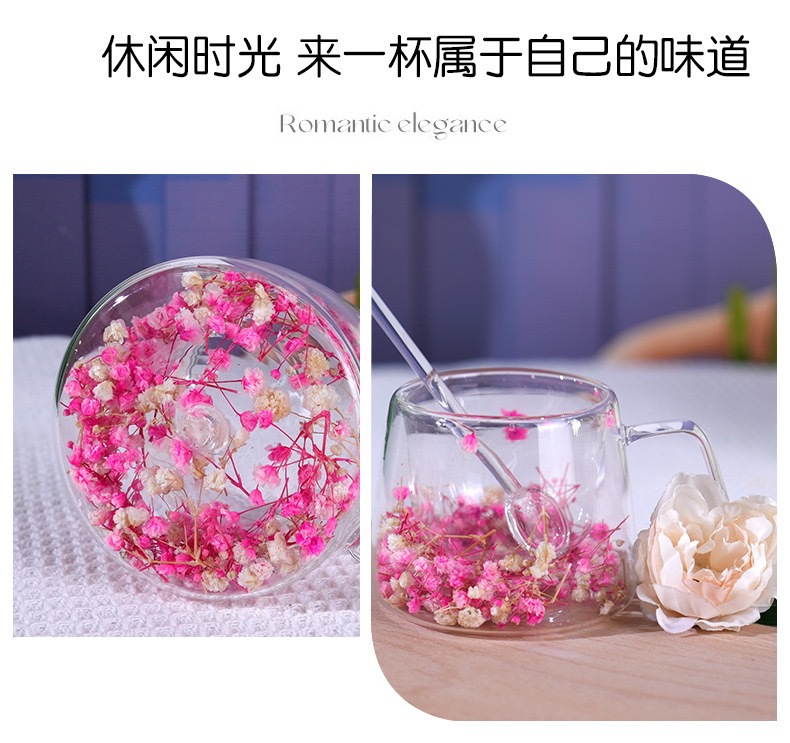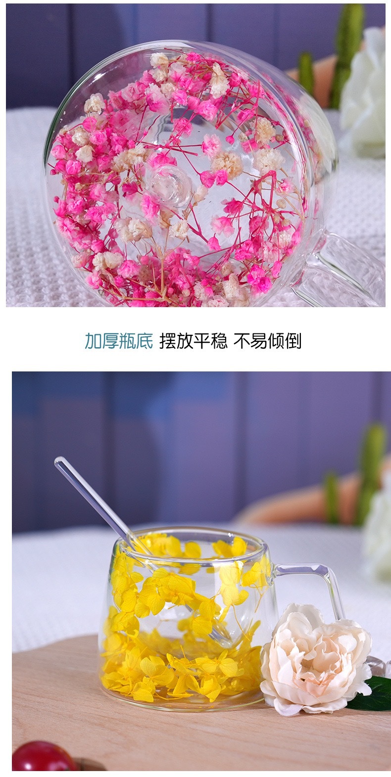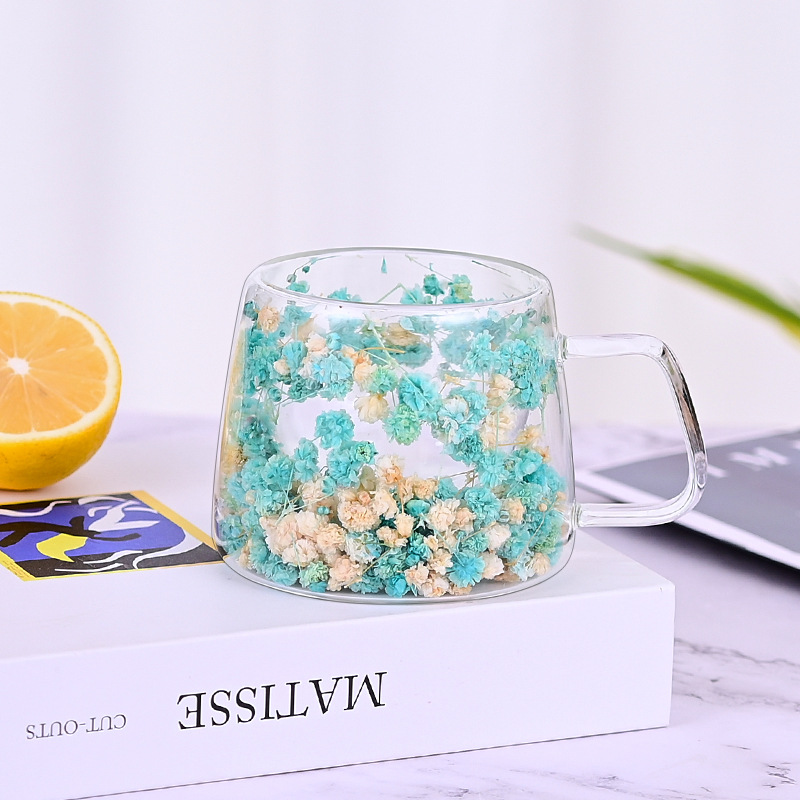 跨境新品真花双层玻璃杯个性高颜值伴手礼咖啡杯高硼硅简约杯子