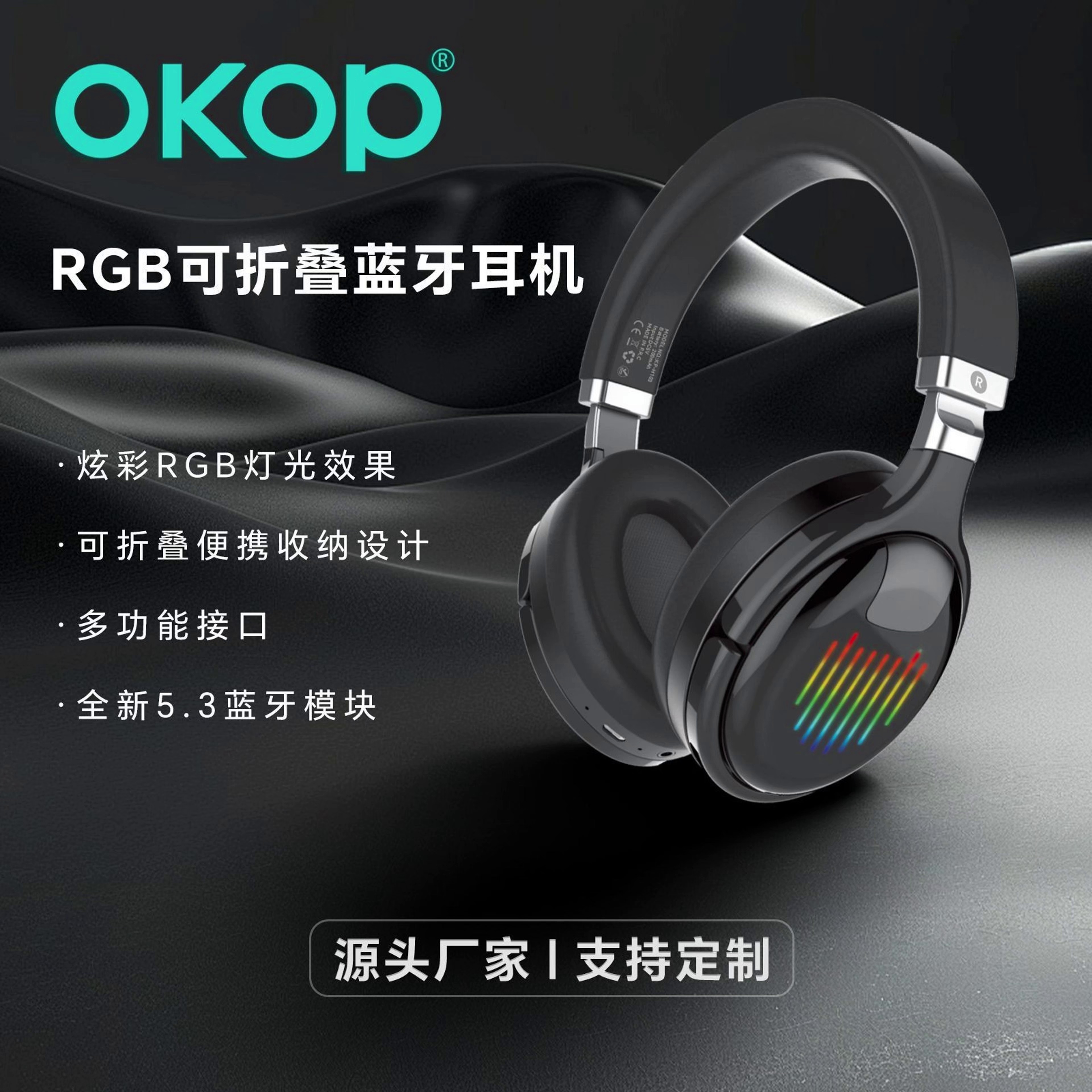 H103头戴式蓝牙耳机可折叠RGB氛围灯主动降噪跨境爆款动圈式喇叭