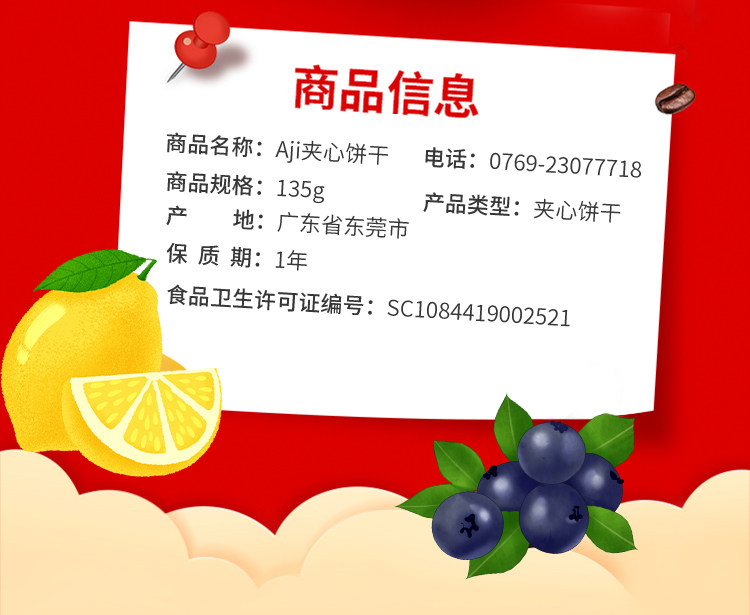Aji柠檬夹心苏打饼干 蓝莓起士芒果味下午茶办公室小吃零食