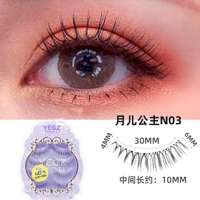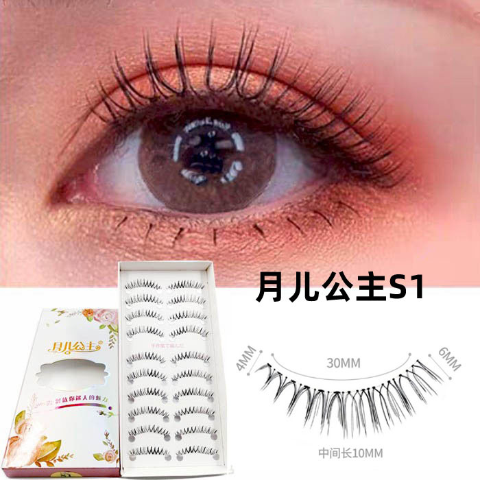 月儿公主十对S3磨尖款S1软假睫毛自然交叉新娘妆透明梗可剪分段S5