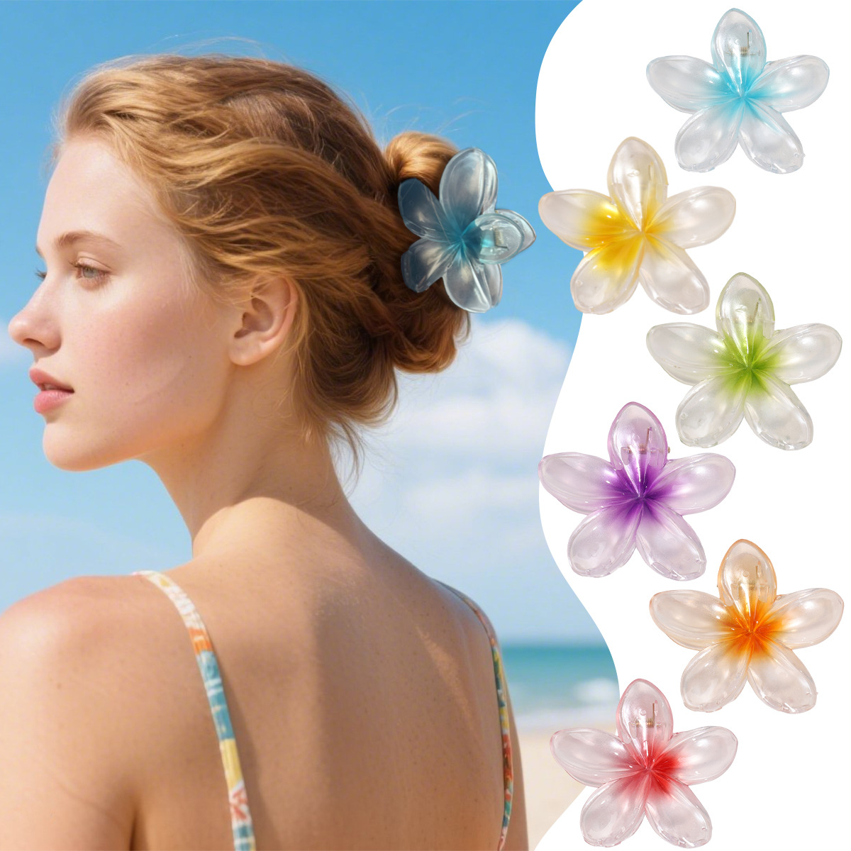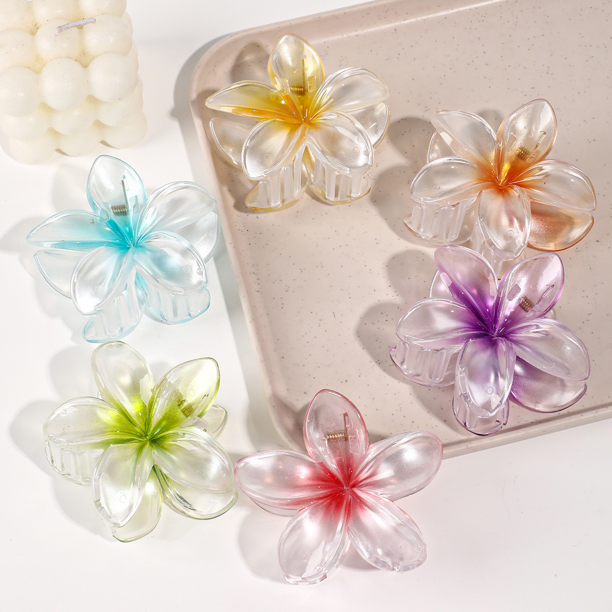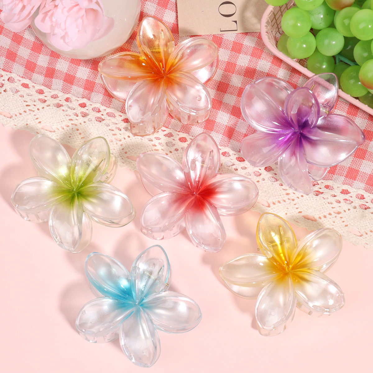 透明珠光鸡蛋花发夹海边度假风半扎发盘塑料抓夹发饰鸡蛋花头饰