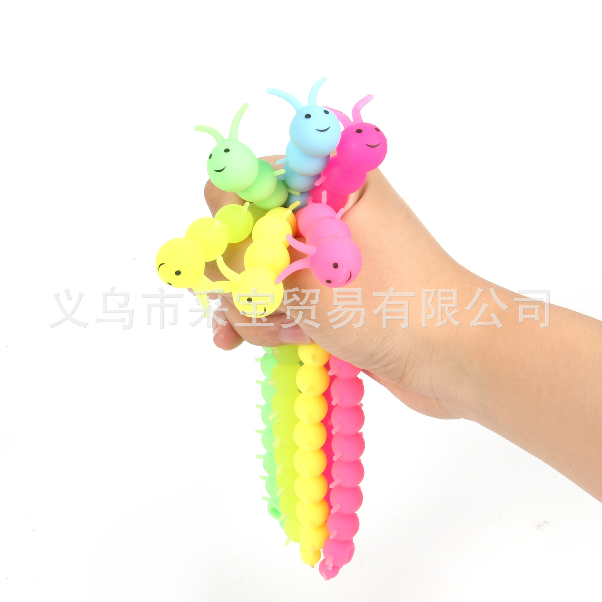 跨境爆款彩色毛毛虫拉拉乐手链 TPR软胶发泄减压面条整蛊搞怪玩具