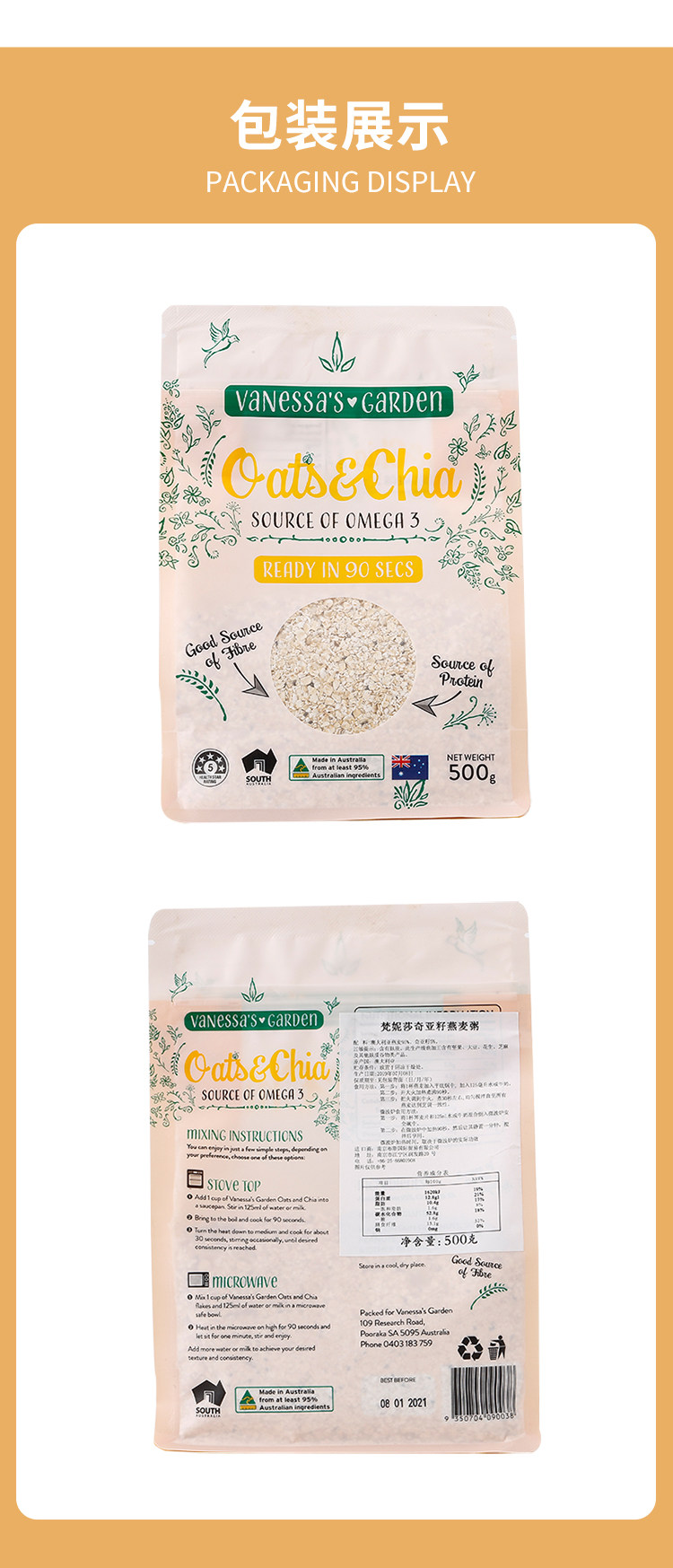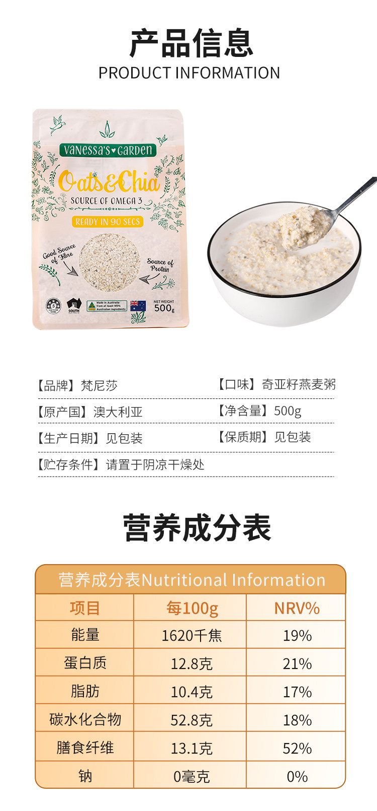 澳洲进口Vanessa'sGarden梵妮莎奇亚籽速食燕麦片早餐谷物营养