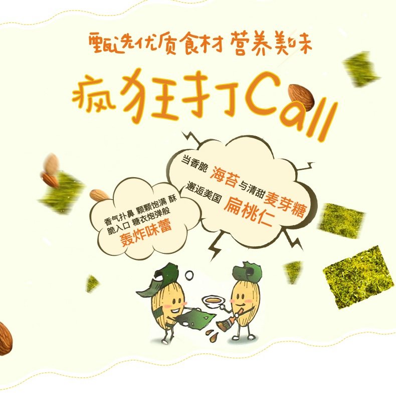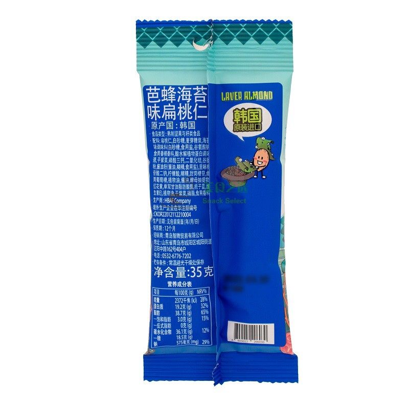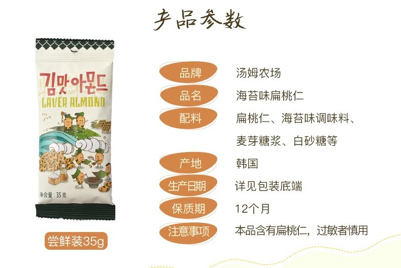 汤姆农场芭蜂 海苔味扁桃仁巴旦木韩国进口零食坚果 包邮