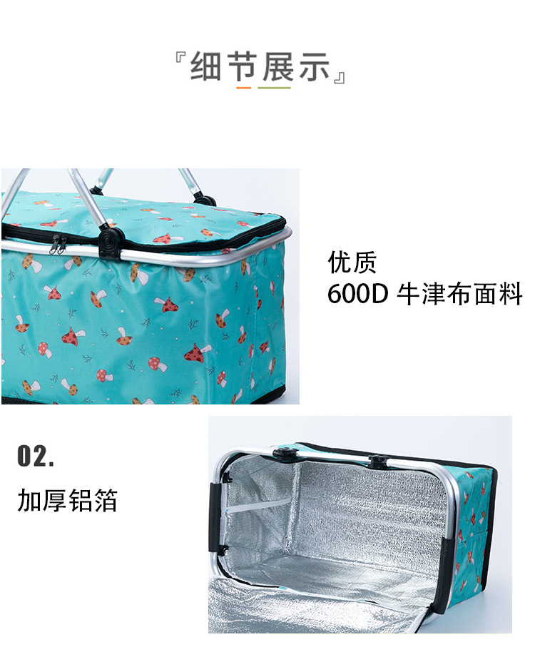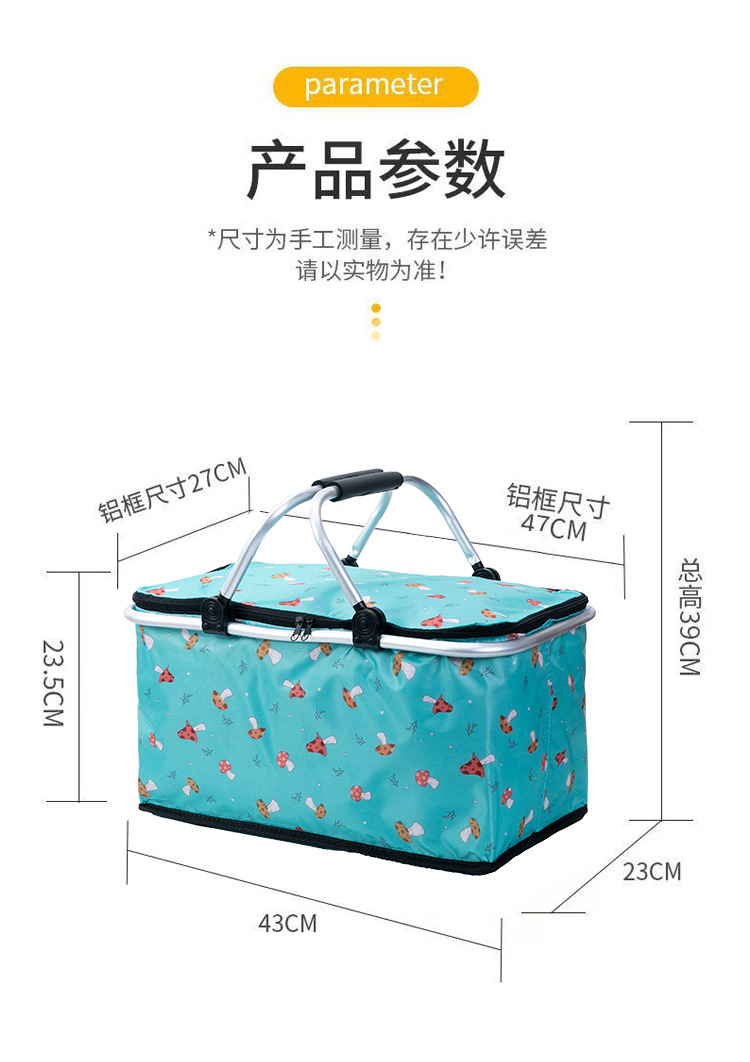 野餐篮可折叠超市购物篮露营手提冰包保温送便当饭盒袋户外收纳篮