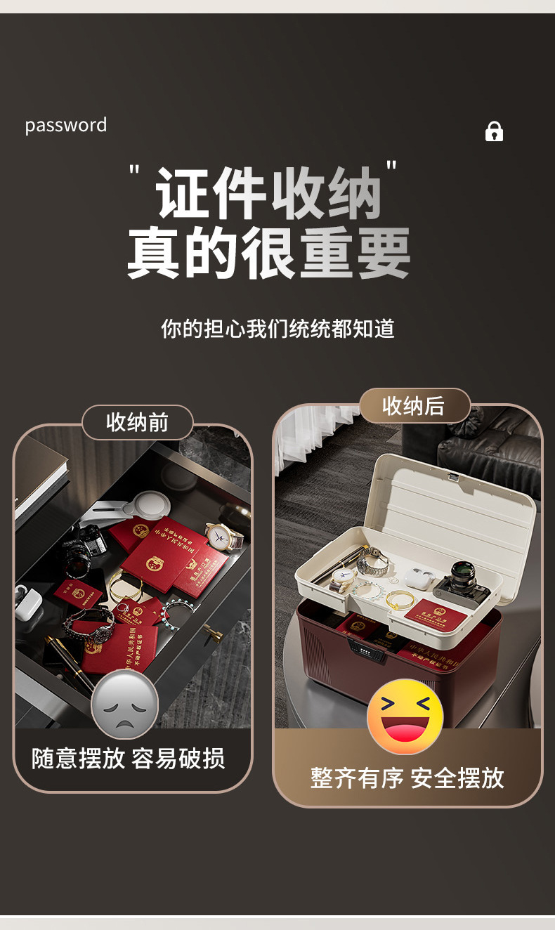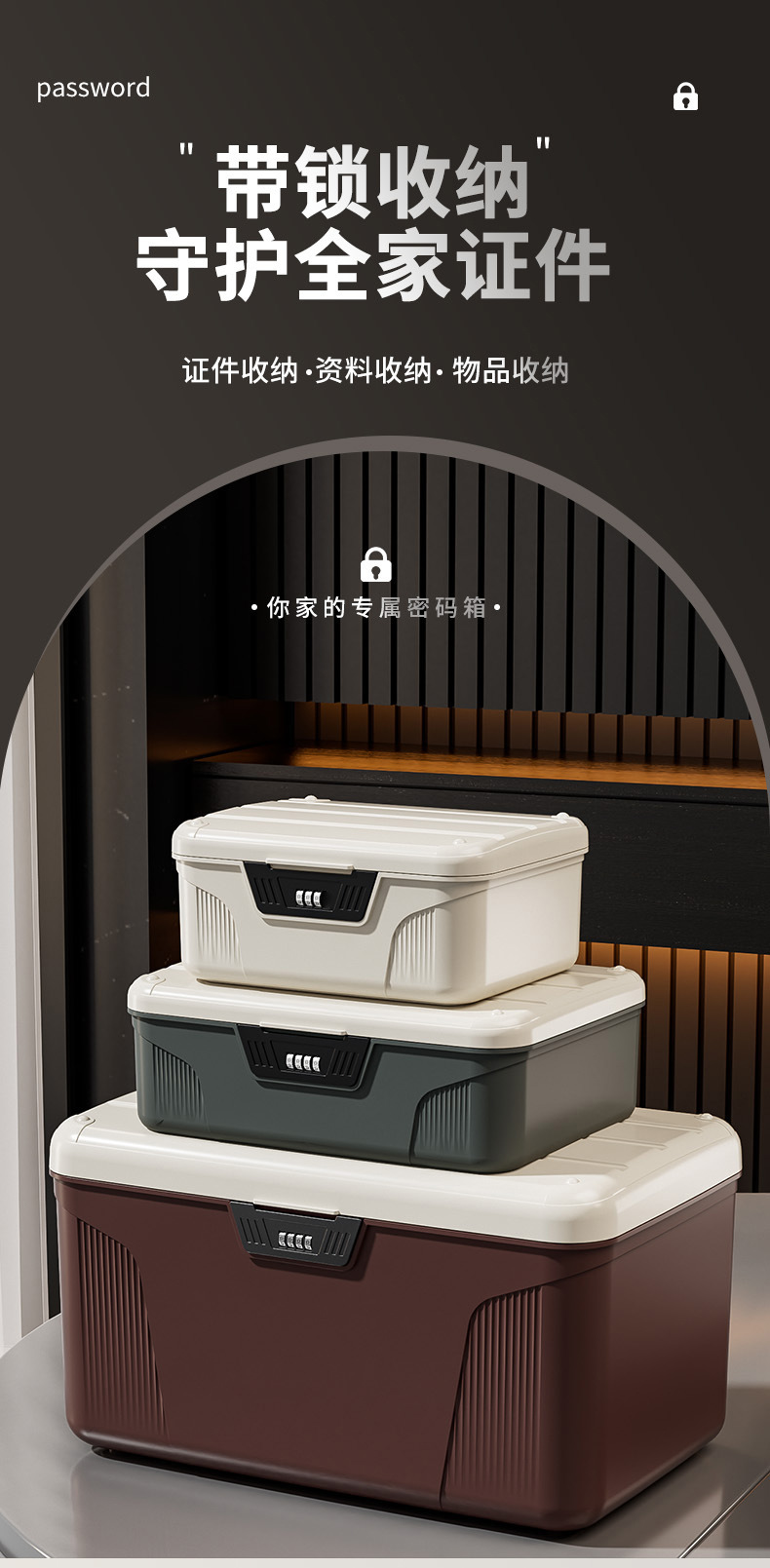 密码收纳箱隐私文件带锁收纳盒车载家用贵重物品储物箱塑料整理箱