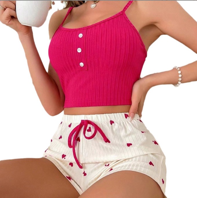 新 ins韩风撞色吊带睡衣女2025夏季新款休闲背心短裤家居服两件套
