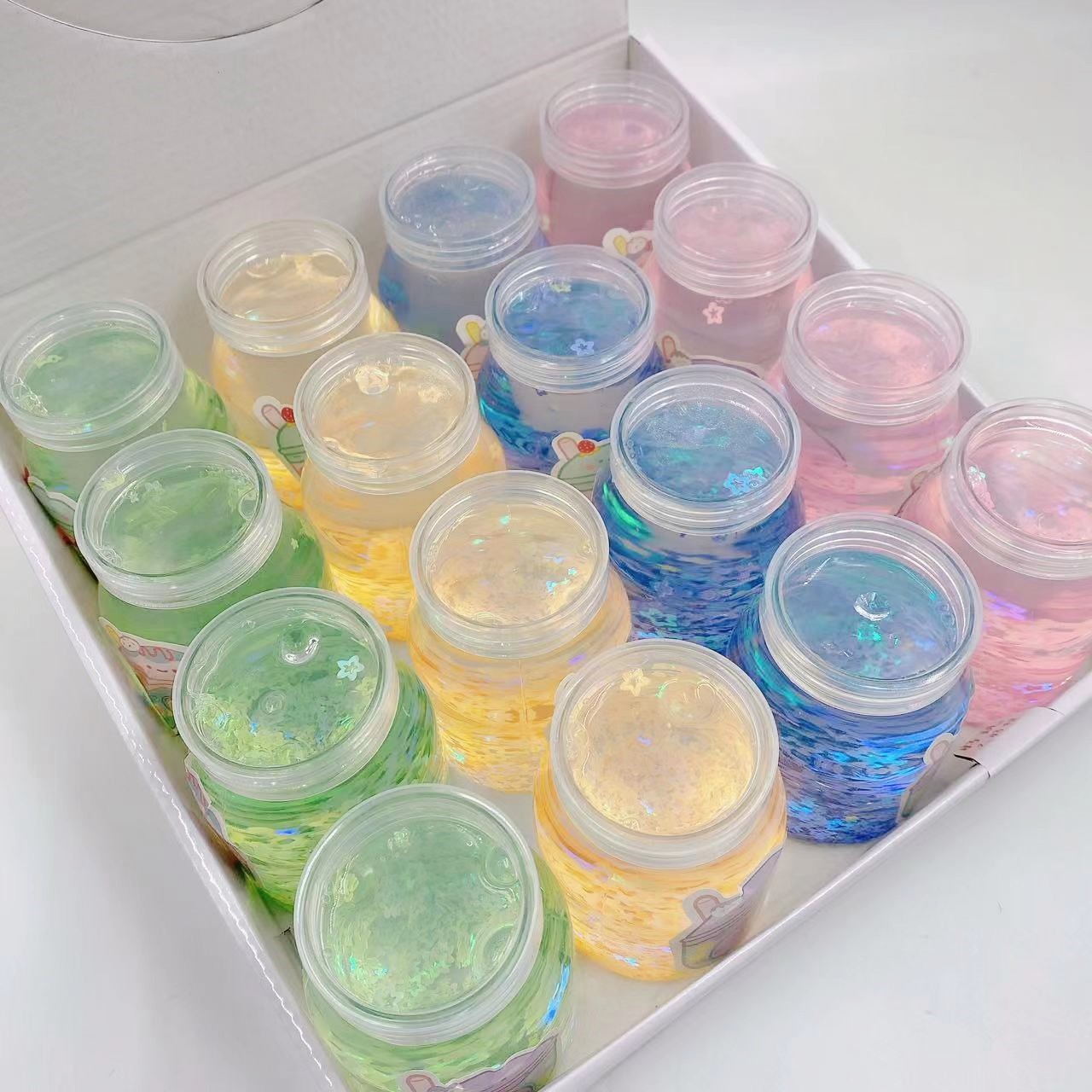 史莱姆起泡胶透明带亮片高水晶泥解压手工diy批发儿童彩泥百货2元