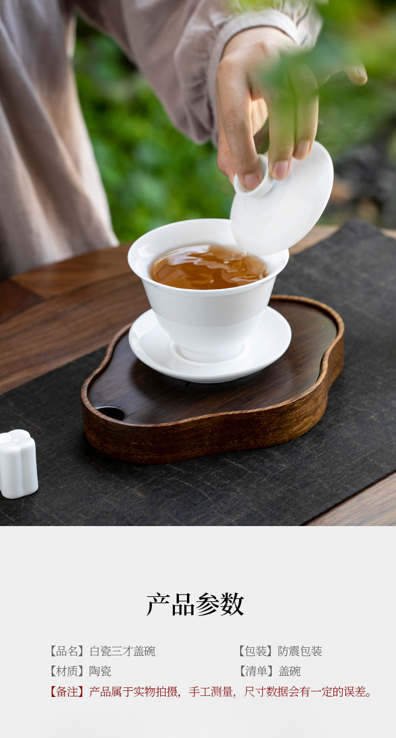 高白瓷三才盖碗现代简约家用泡茶碗茶杯功夫茶具套装批发可做LOGO