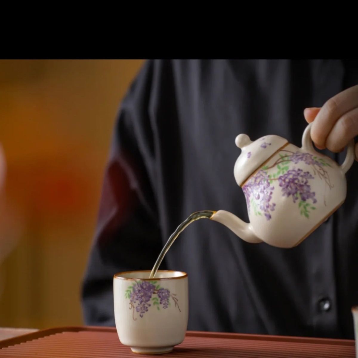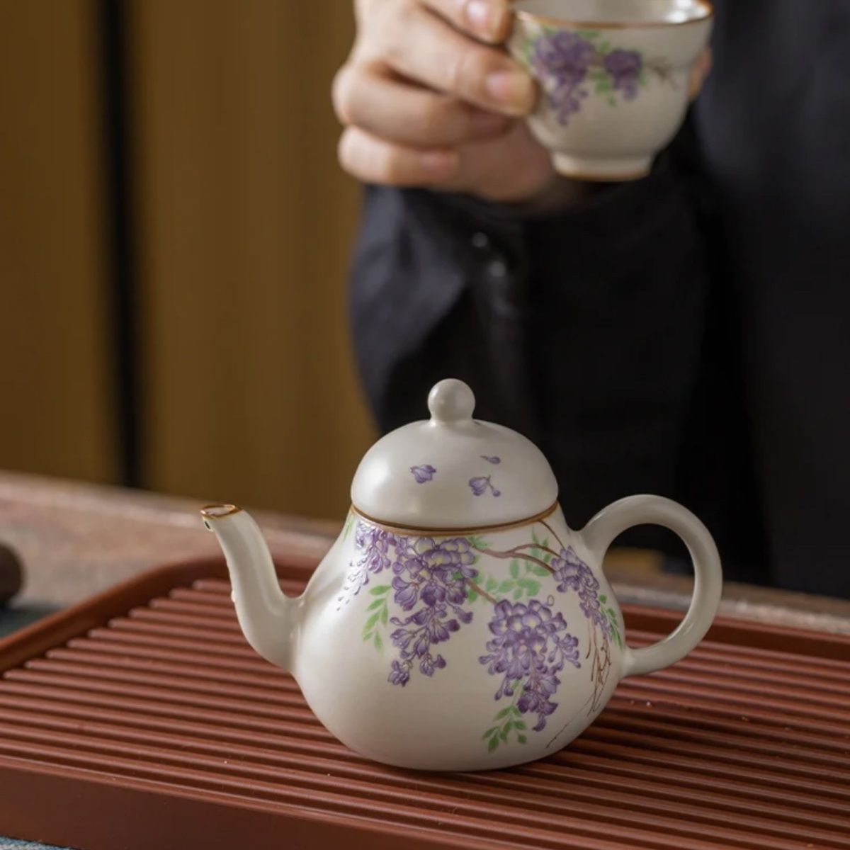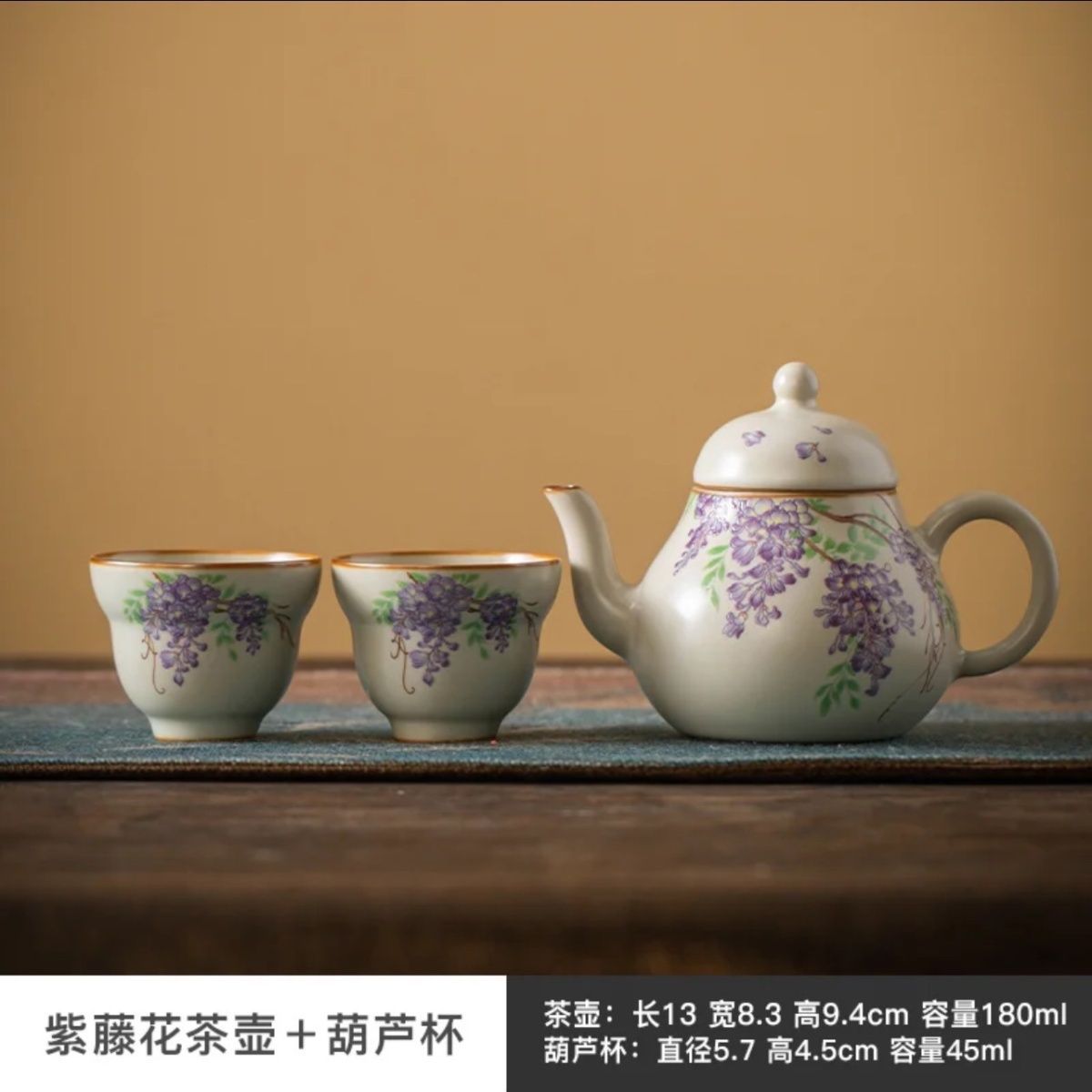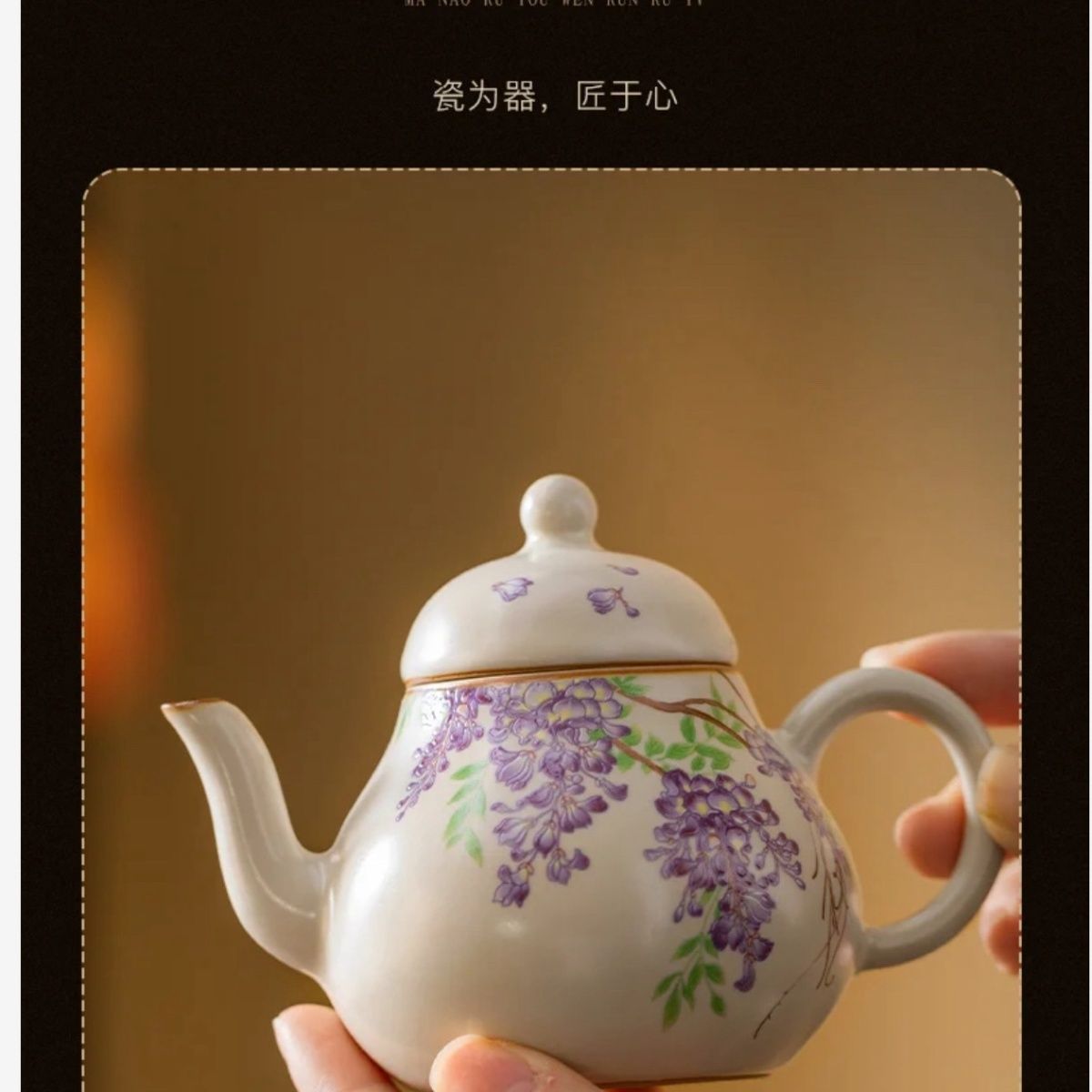 紫藤花白瓷手工制作泡茶壶家用单壶过滤功夫茶具葫芦悬停盖碗批发