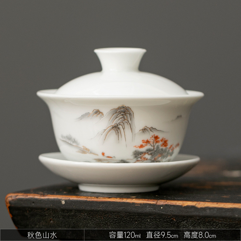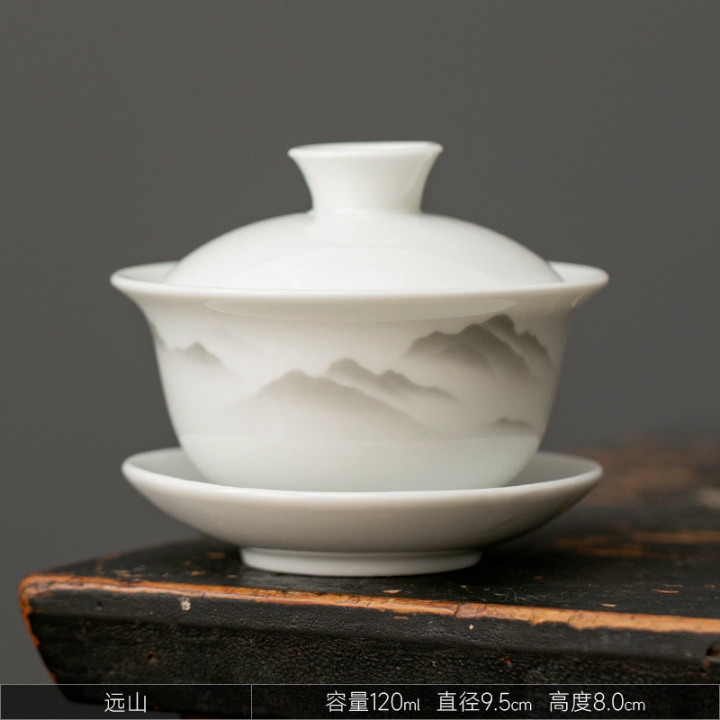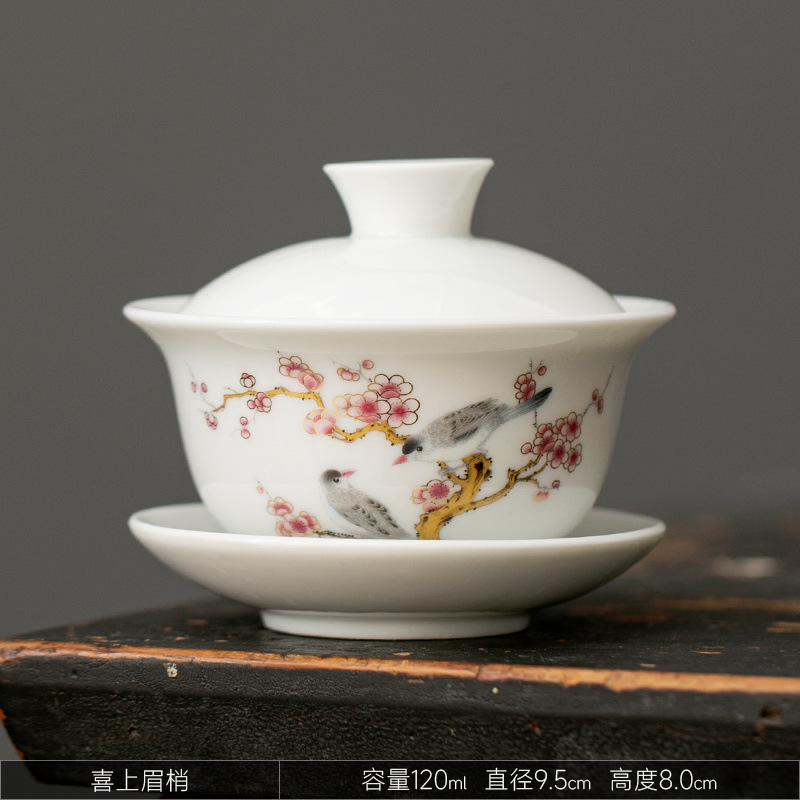 白瓷盖碗单个功夫茶碗带盖三才茶杯陶瓷家用手工青花泡茶茶具批发