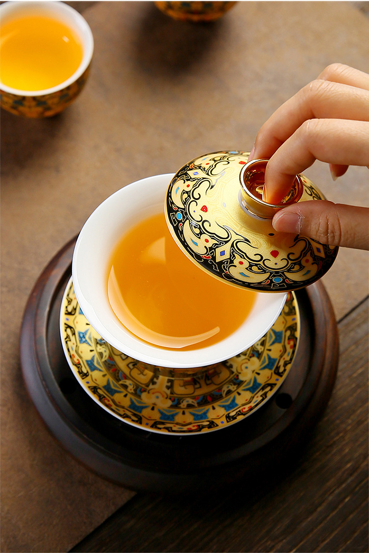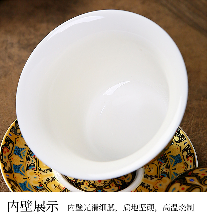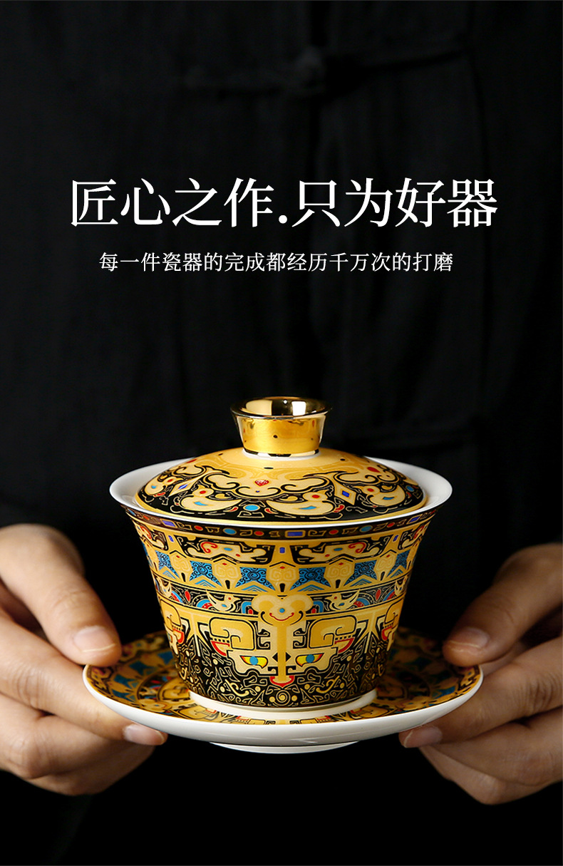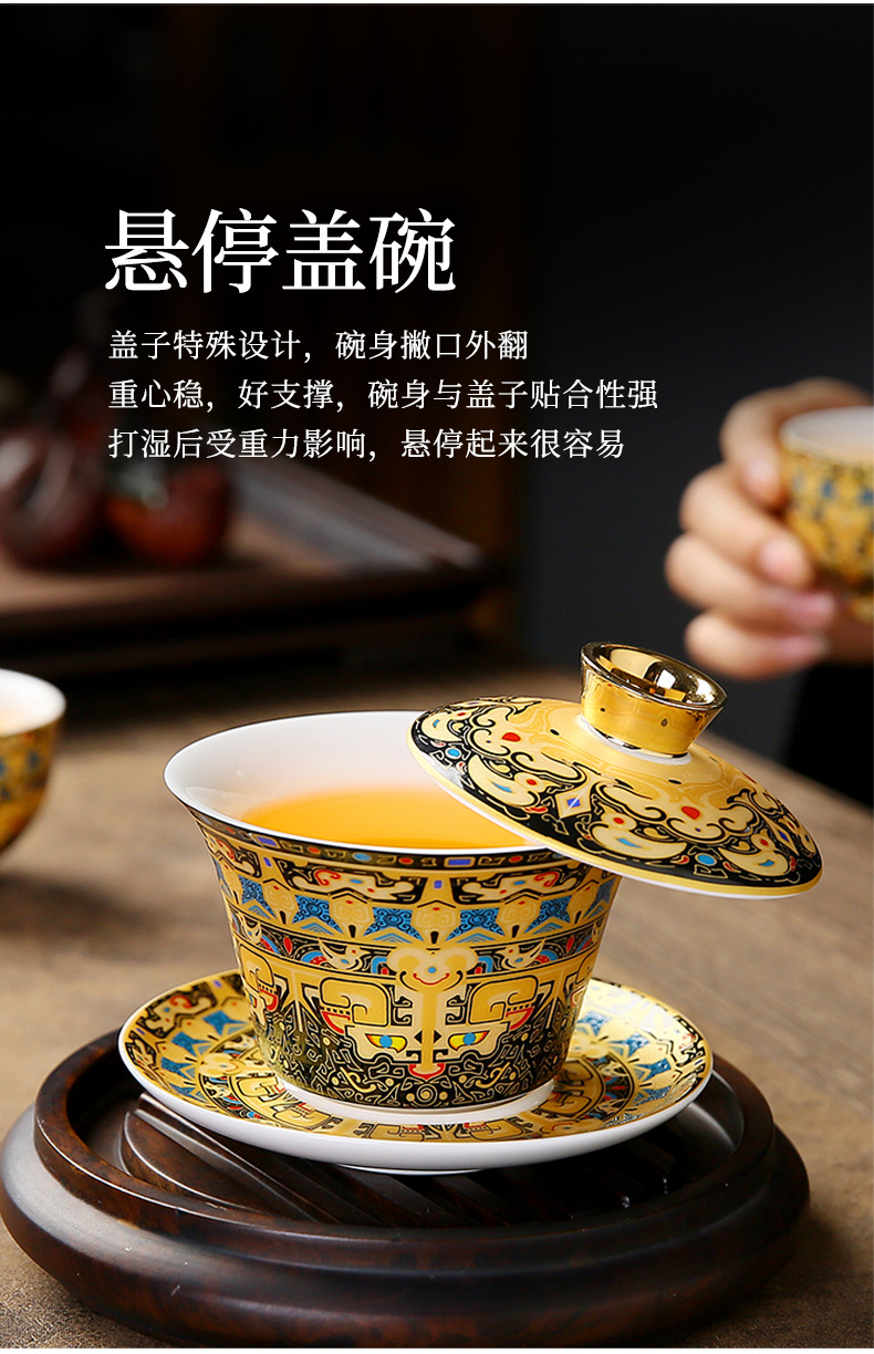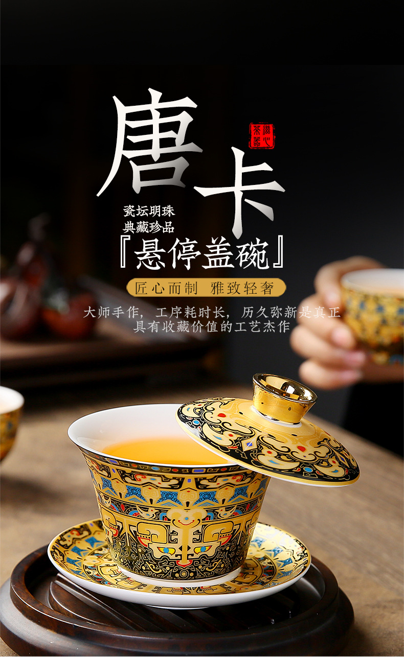 唐卡悬停盖碗中式大号陶瓷敬茶碗礼品功夫茶具三才泡茶碗茶杯