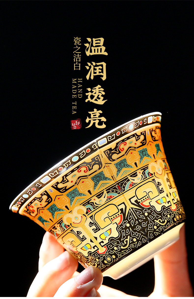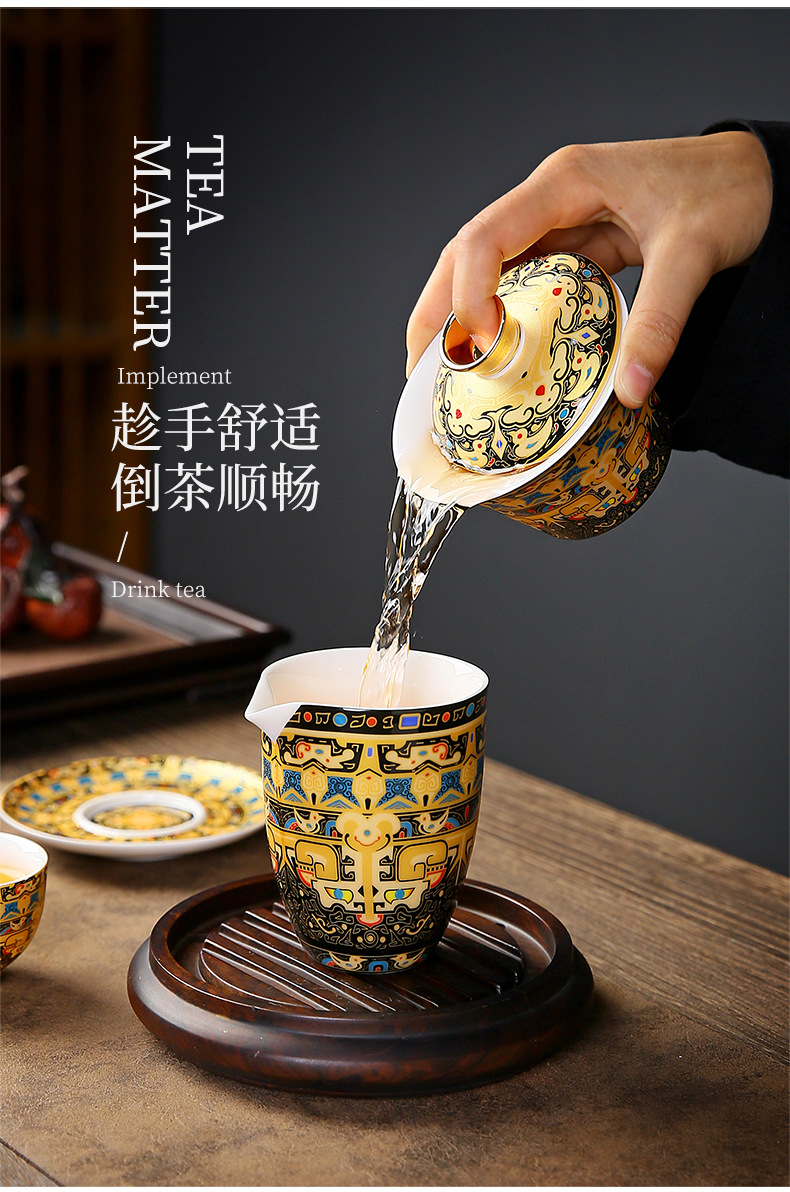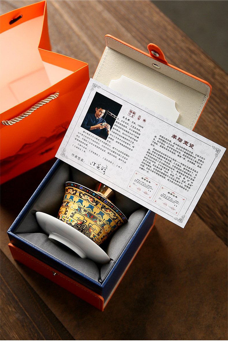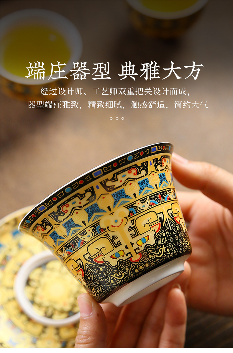 唐卡悬停盖碗中式大号陶瓷敬茶碗礼品功夫茶具三才泡茶碗茶杯