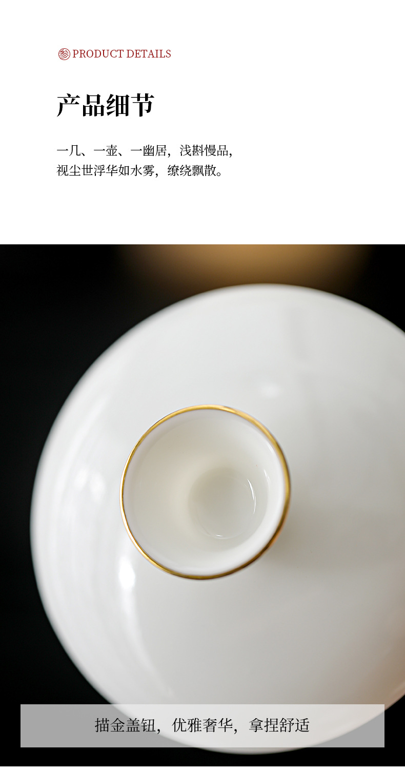 羊脂玉白瓷盖碗三才简约功夫茶具家用单个泡茶碗批发可做logo礼品