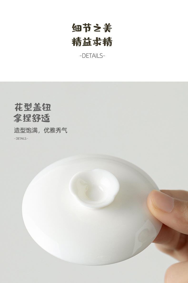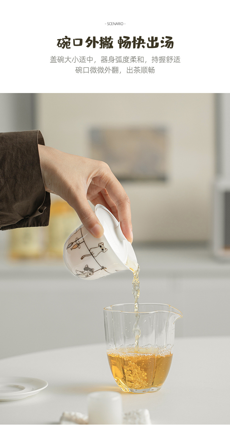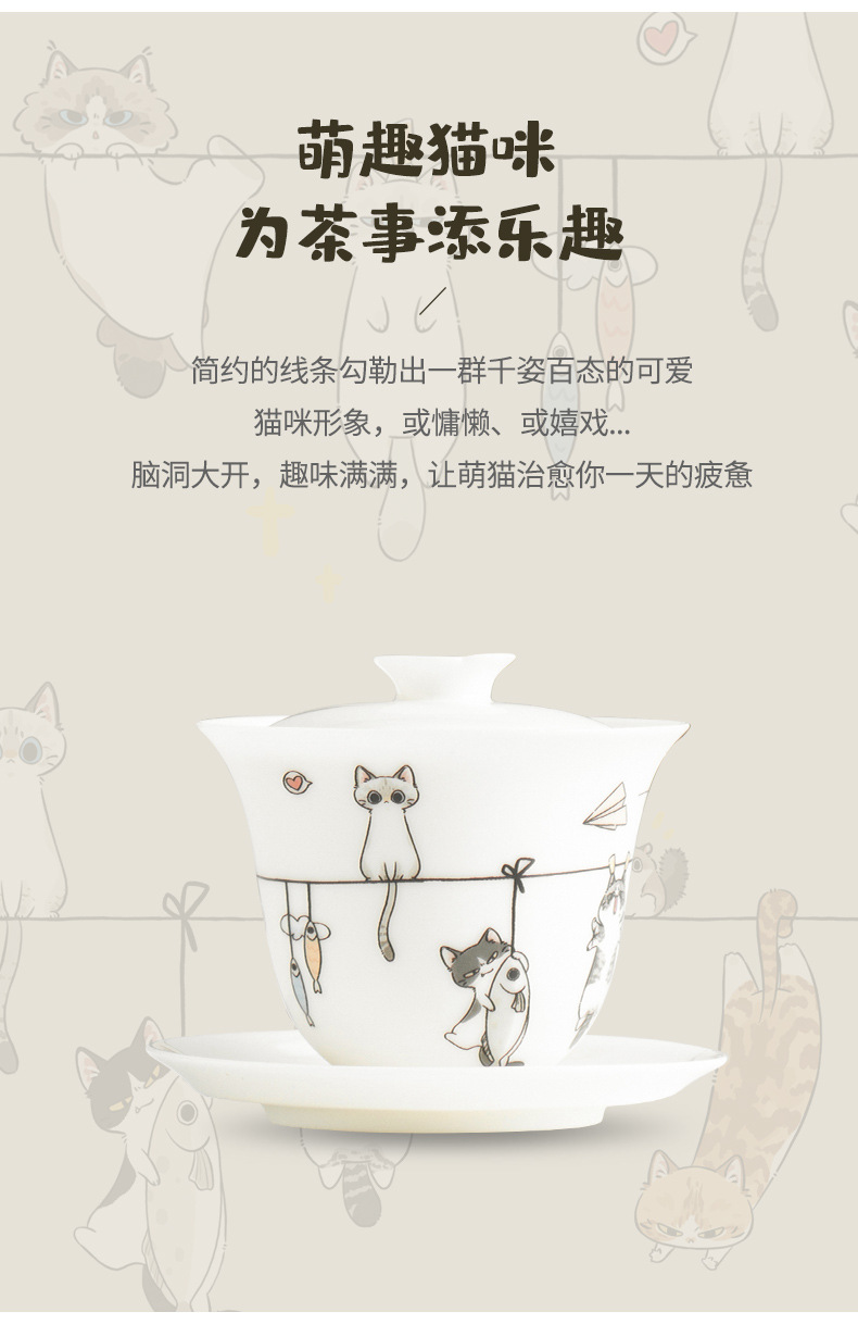 原创晒猫羊脂玉瓷盖碗不烫手可爱盖碗茶功夫碗三才带盖陶瓷定logo
