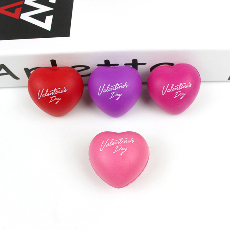 跨境爆款情人节桃心小礼品 PU海绵球 解压玩具彩色心形压力球批发