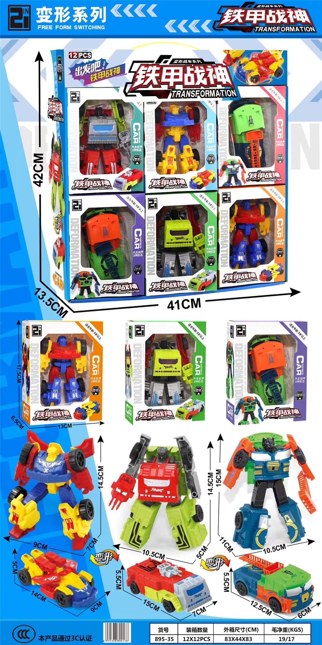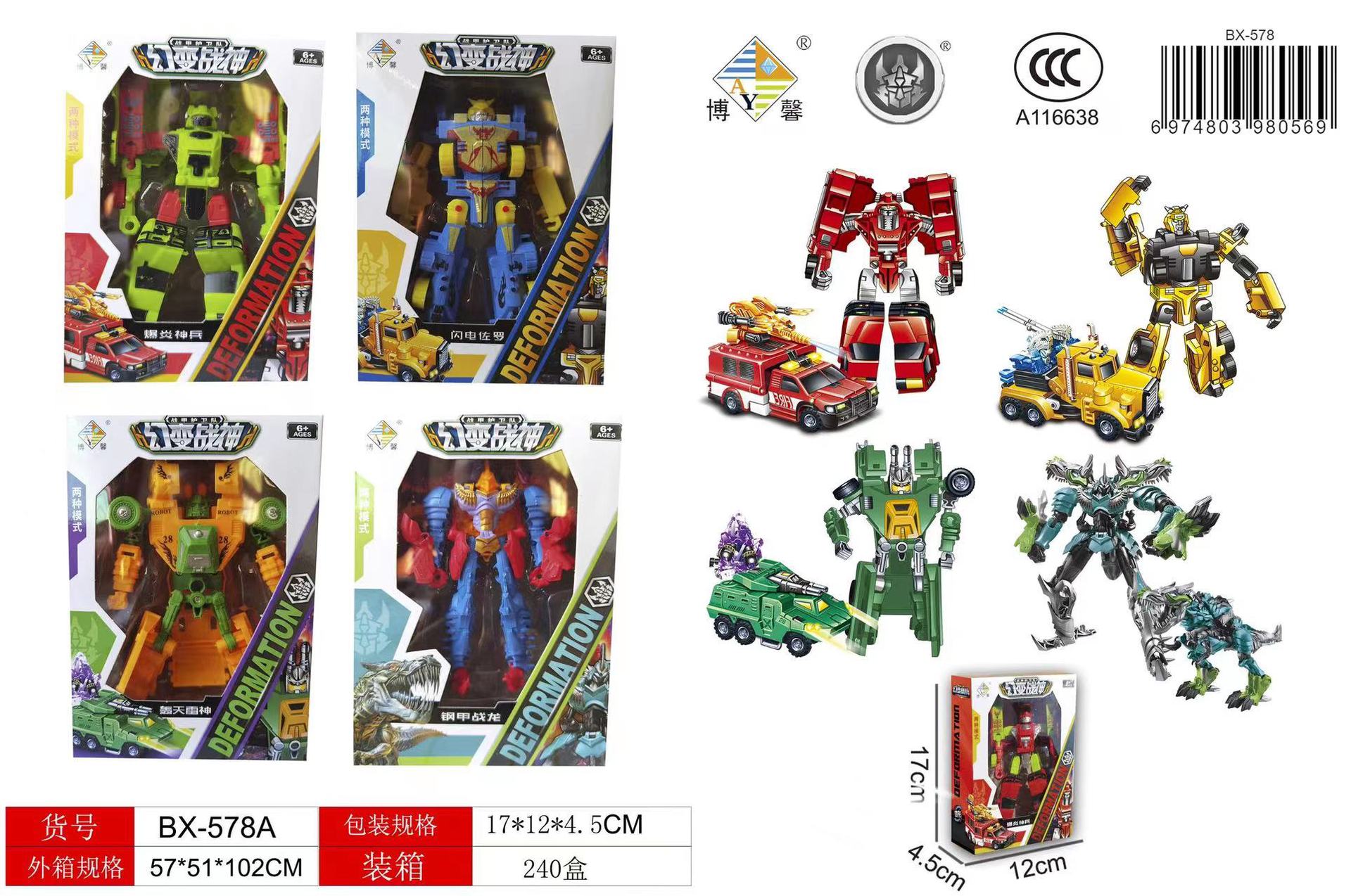 儿童变形机器人金刚钢甲战龙 培训机构礼品地摊货源男孩变形玩具