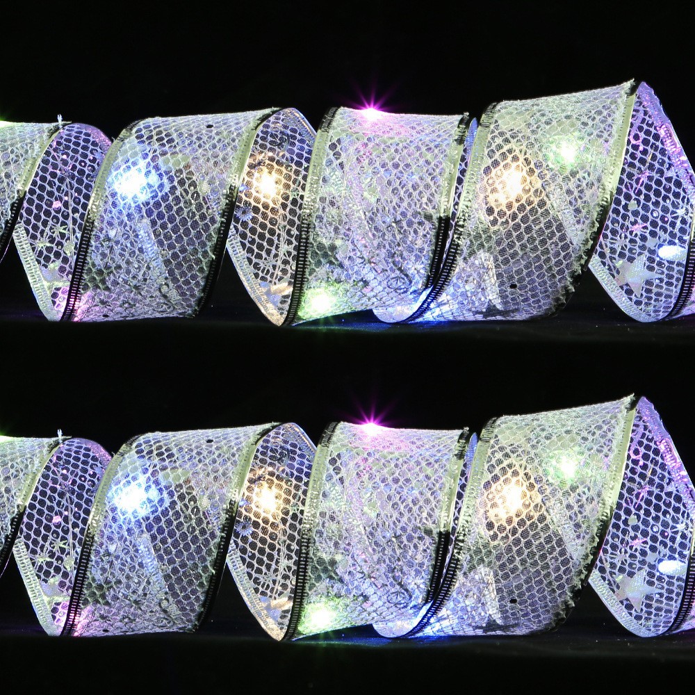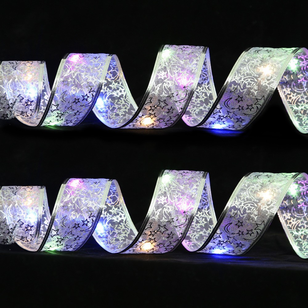 圣诞装饰品LED灯双层丝带灯串圣诞树装饰发光烫金彩带圣诞节用品