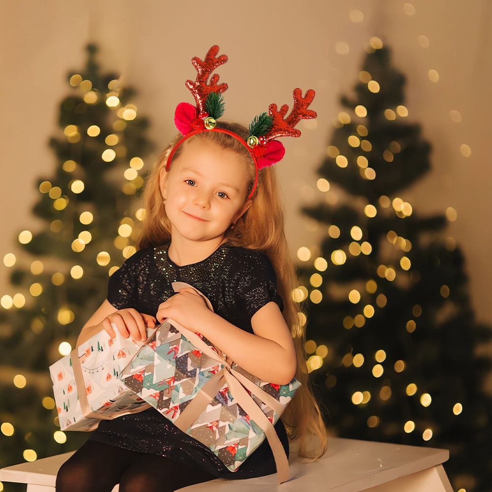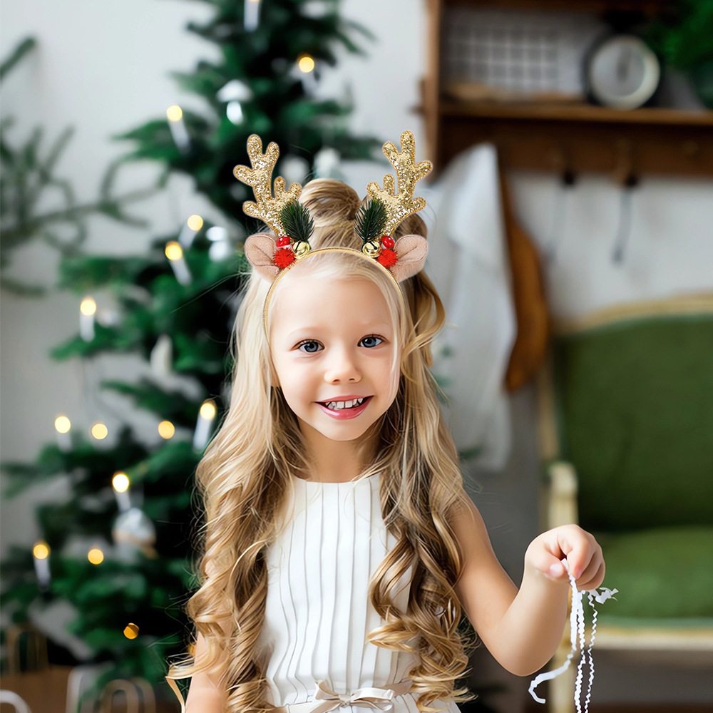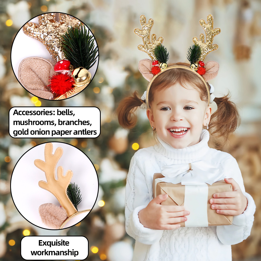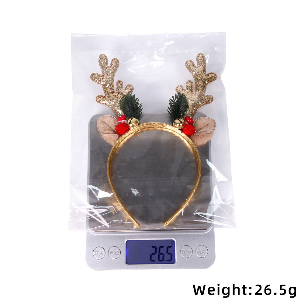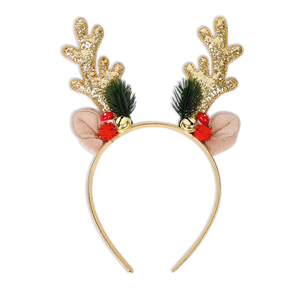 跨境新款圣诞鹿角亮片发箍圣诞节成人儿童装饰头饰带铃铛麋鹿头箍