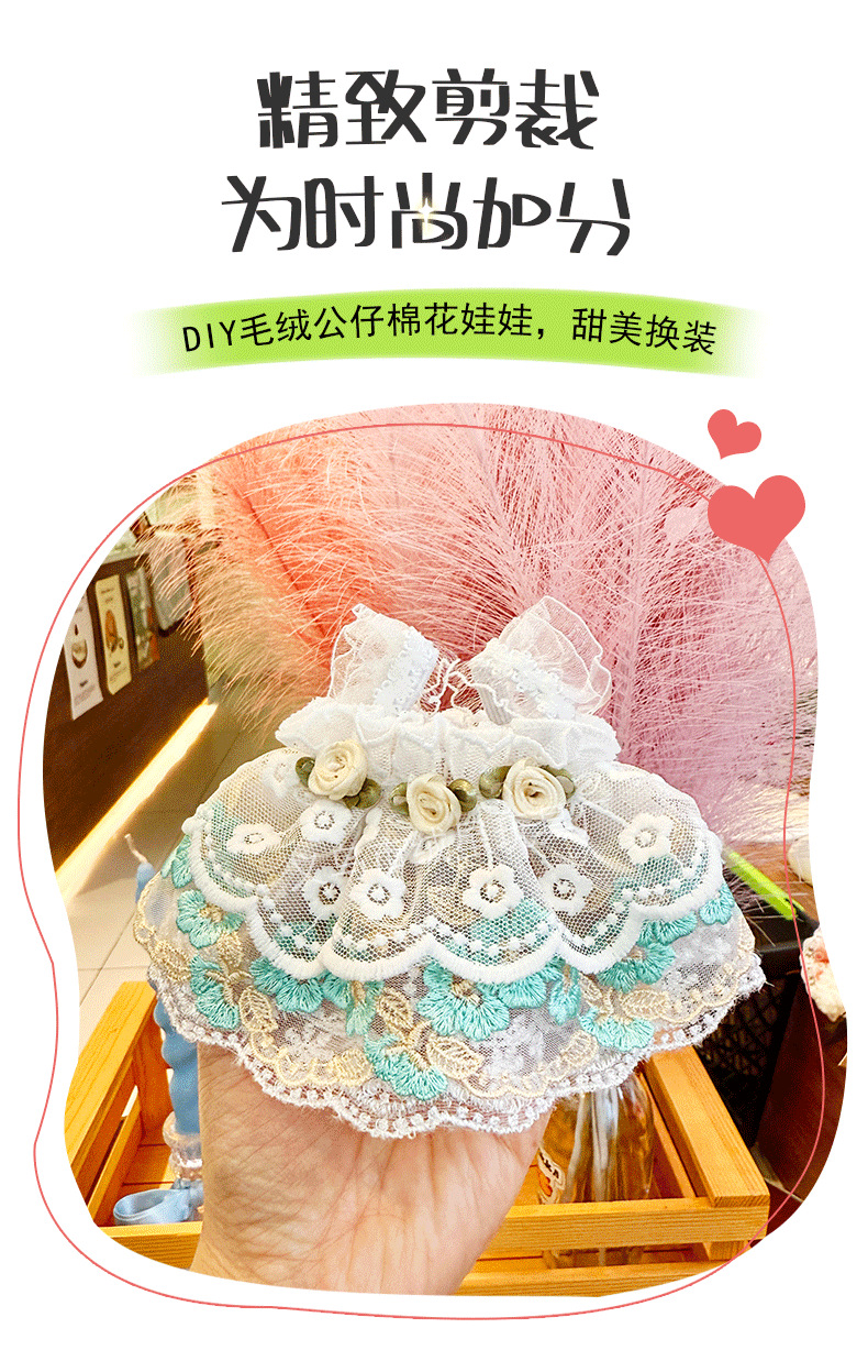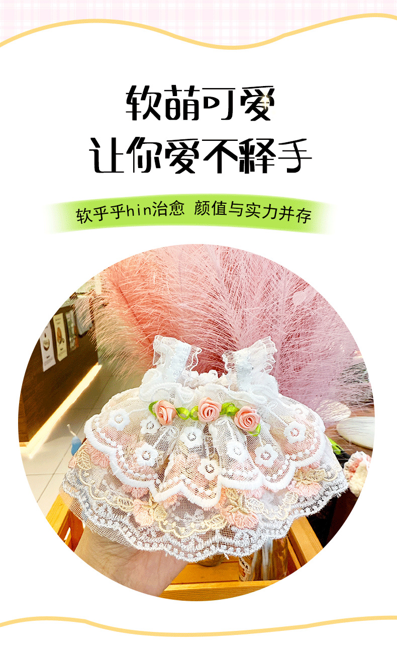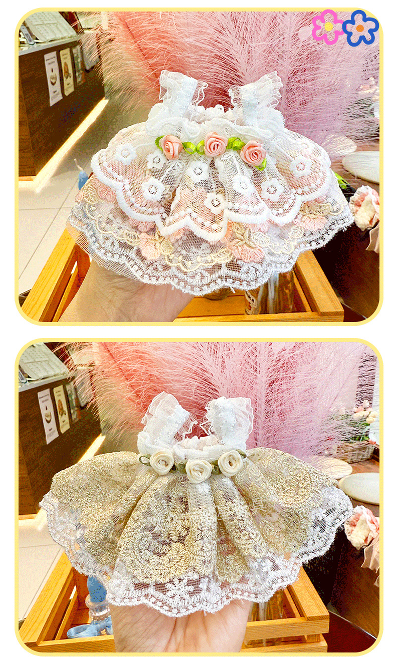 新款垂耳兔蕾丝玫瑰裙玩偶娃衣毛绒公仔背带裙棉花娃娃公主裙配饰