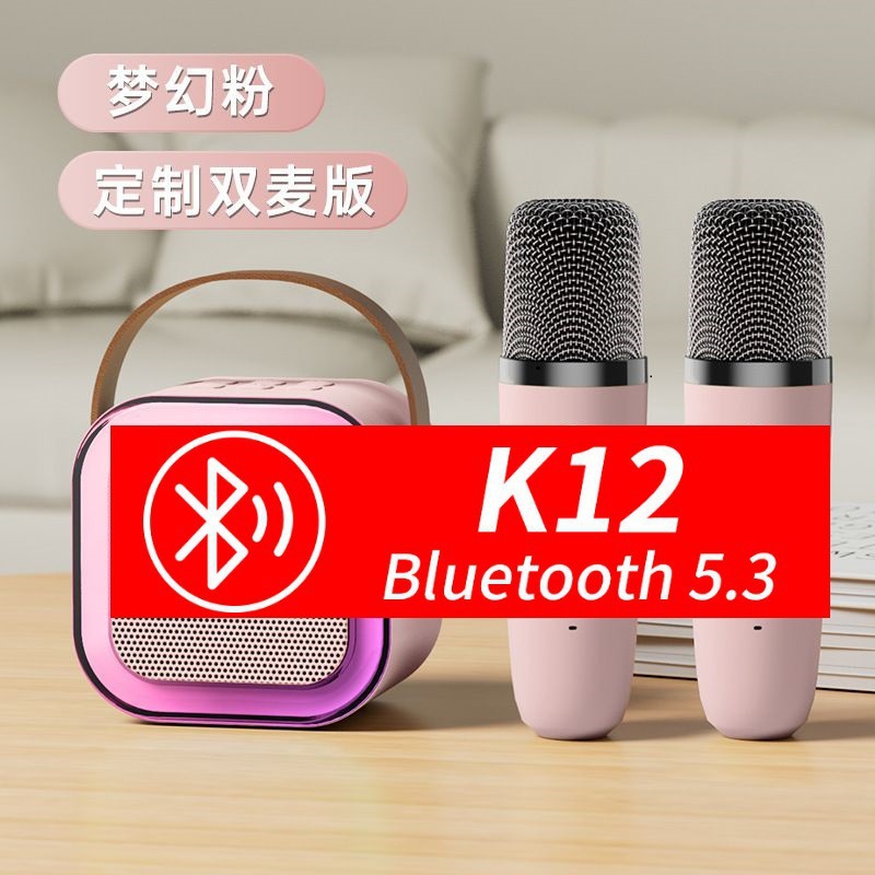 K12蓝牙音箱无线户外便携式音响炫彩带麦克风一体话筒家庭唱歌KTV