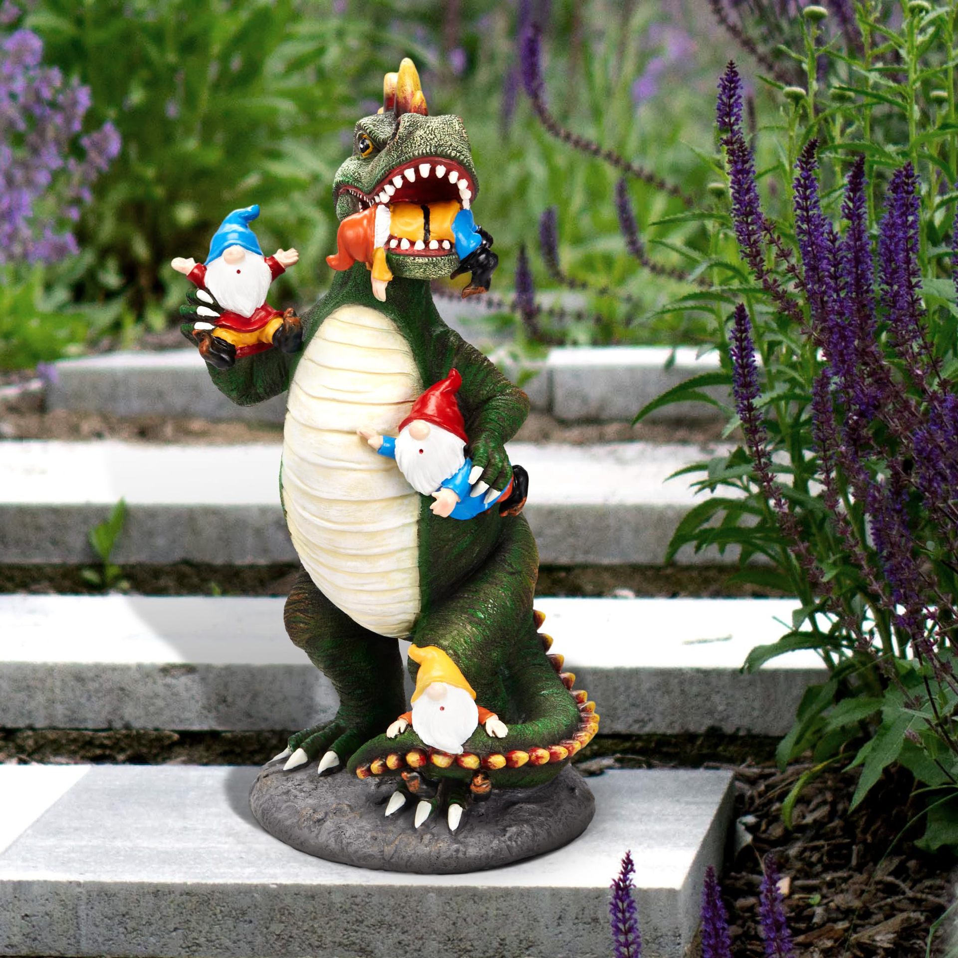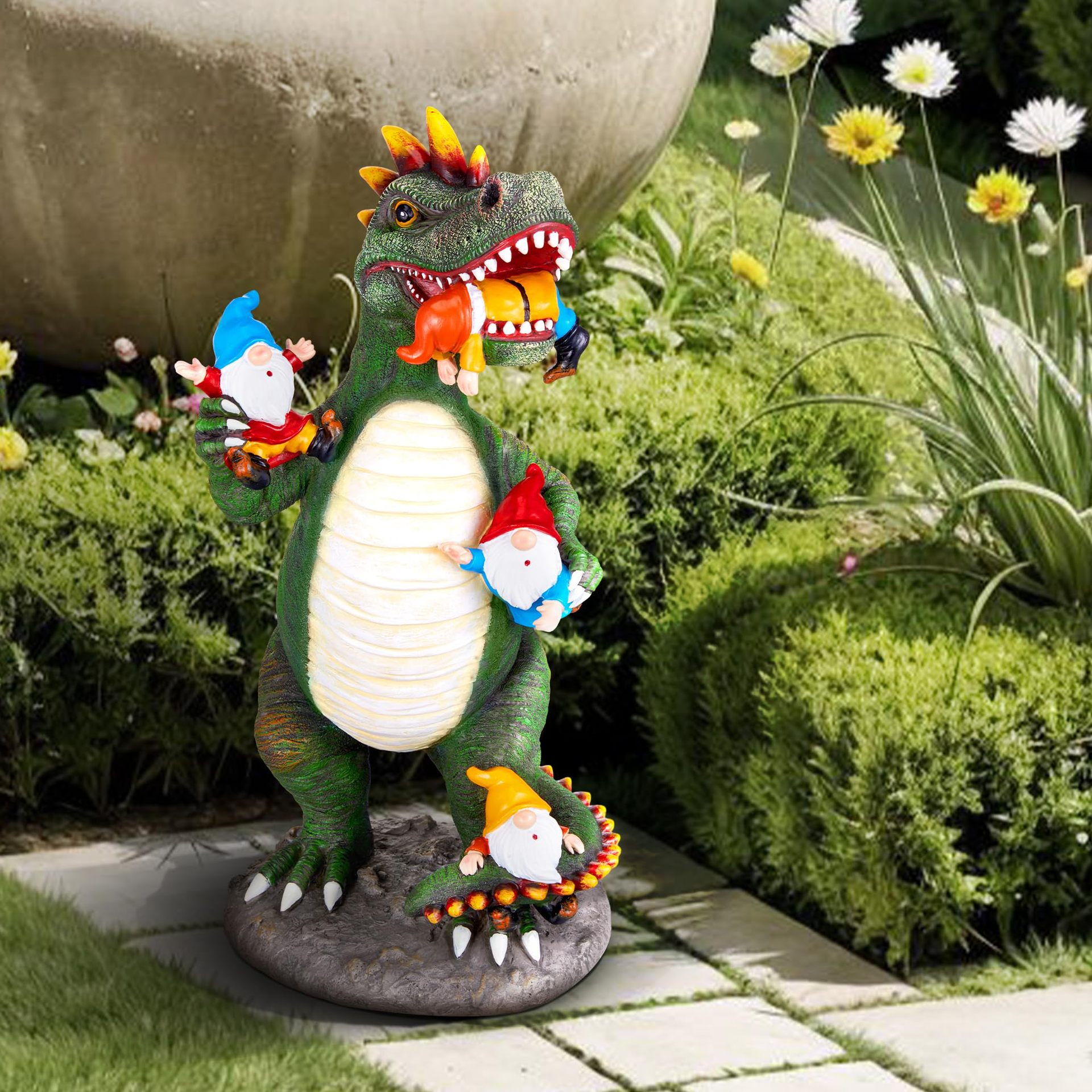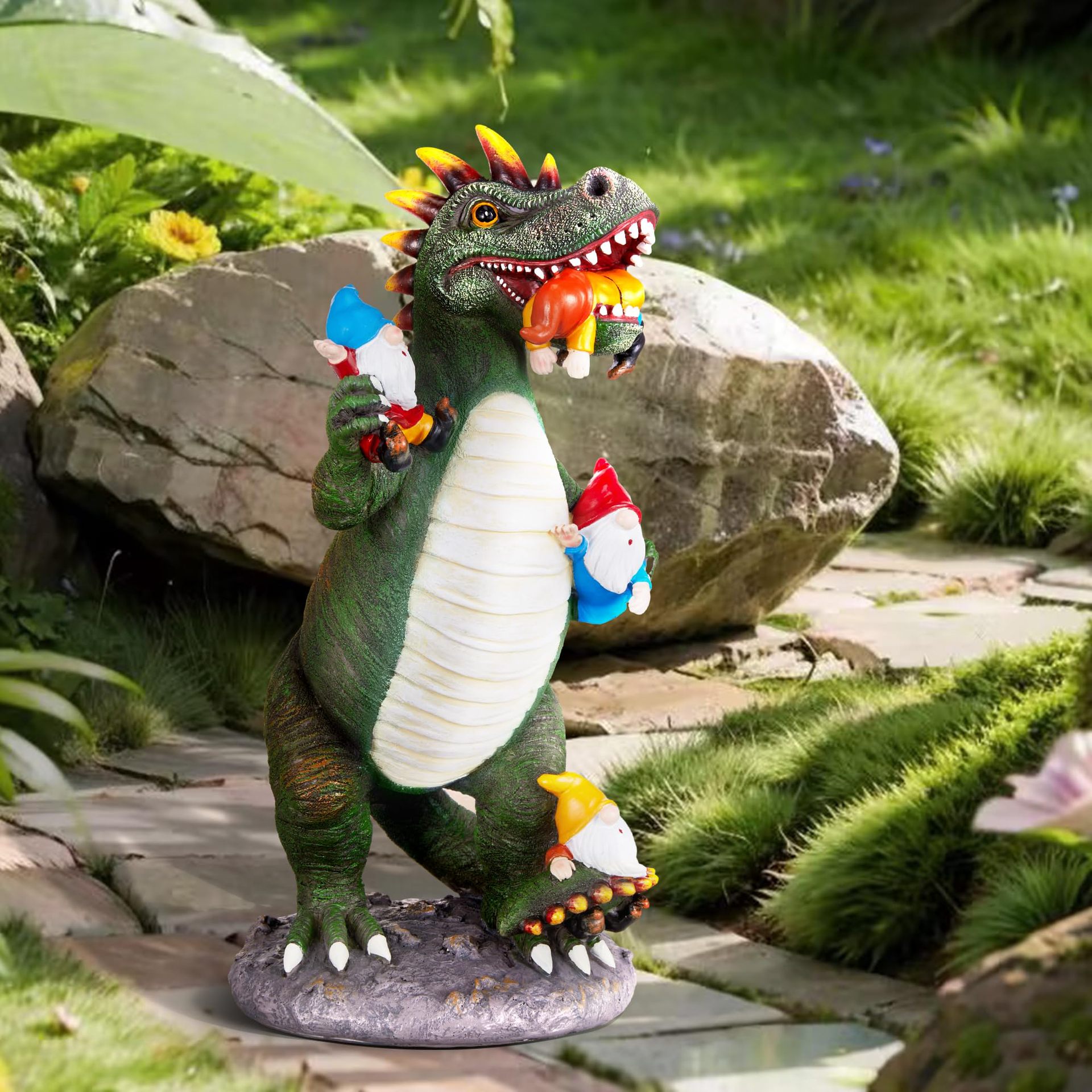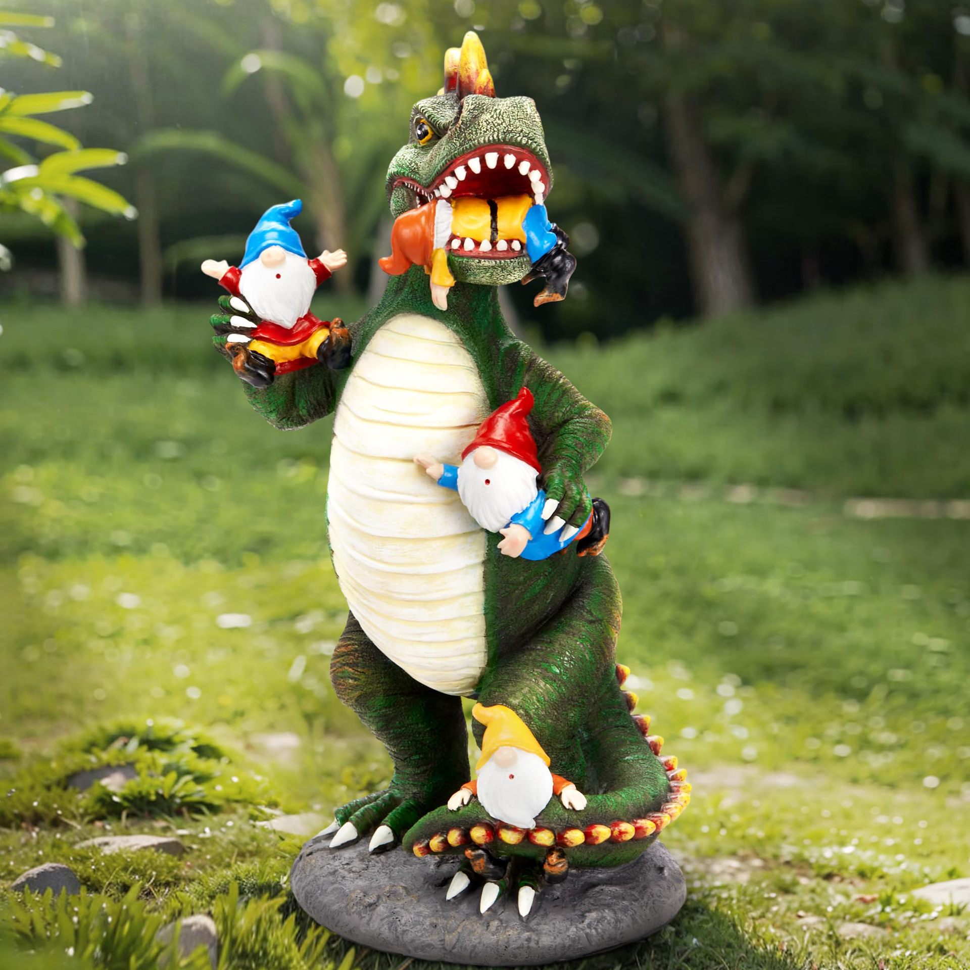跨境户外树脂工艺品摆件恐龙吃小矮人花园庭院草坪装饰雕像装饰
