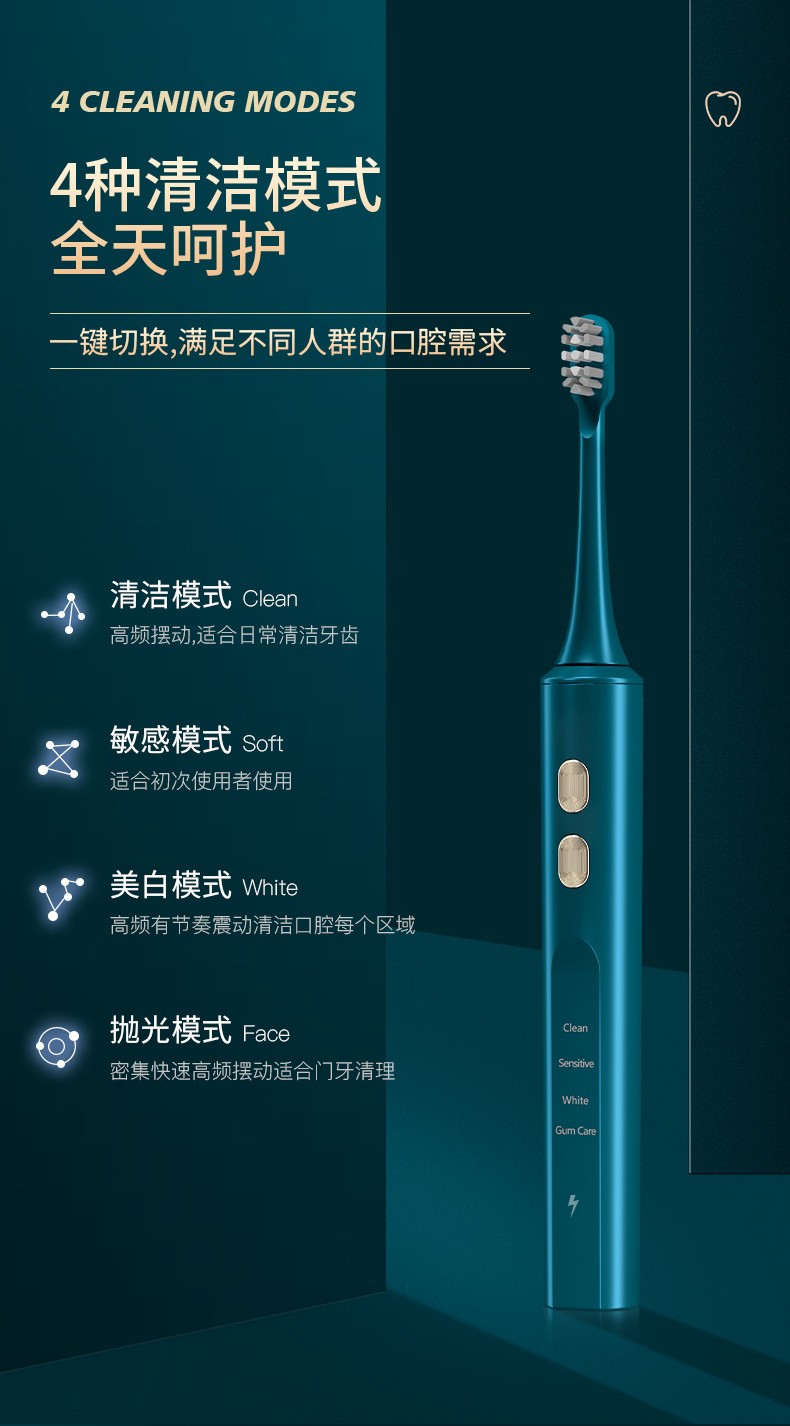 跨境电动牙刷成人款感应式UV消毒充电全自动一体防水情侣电动牙刷