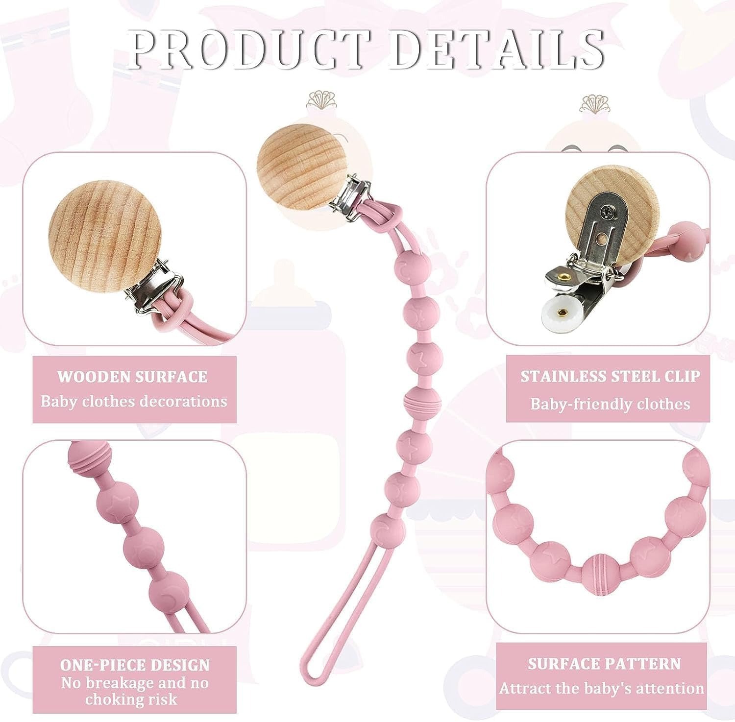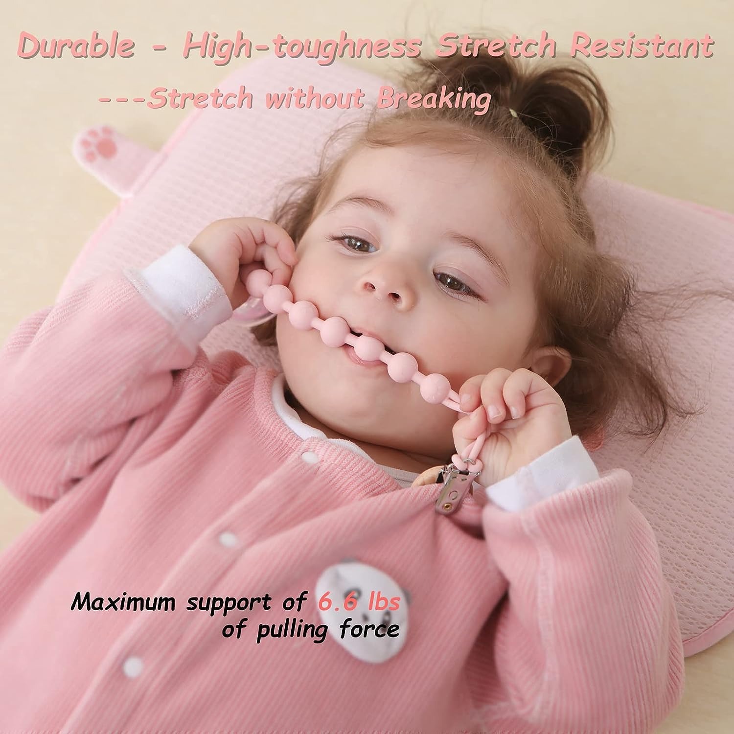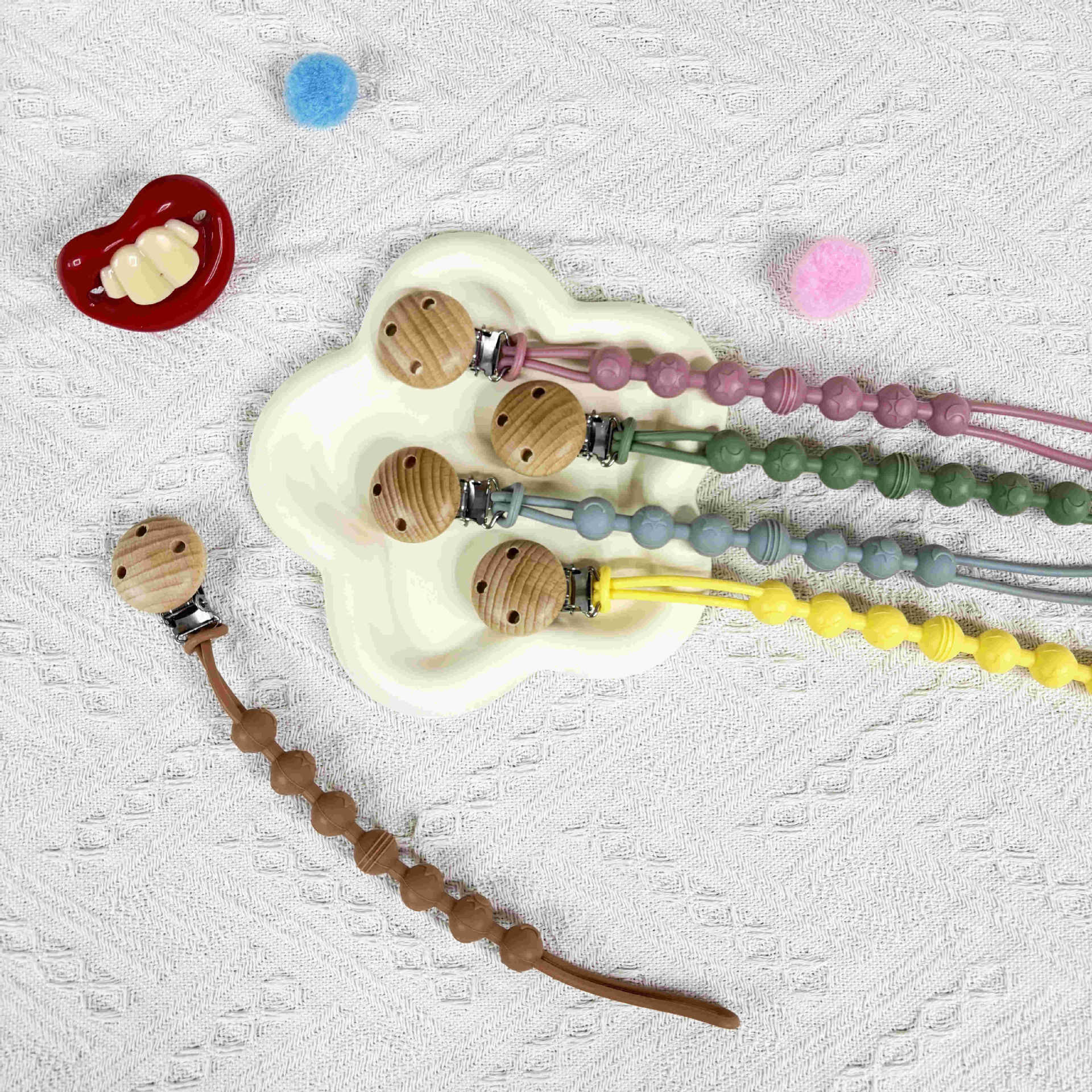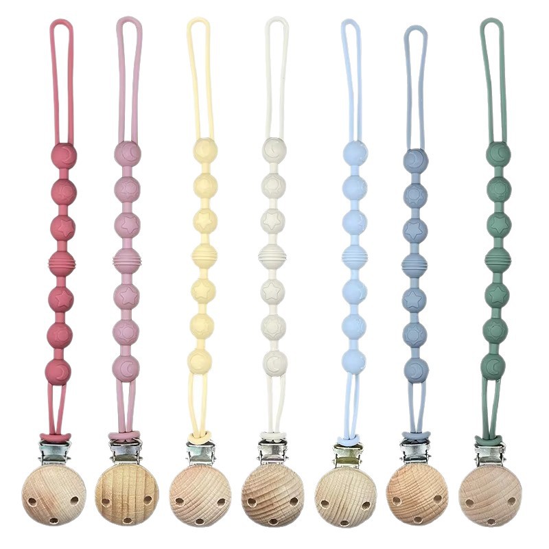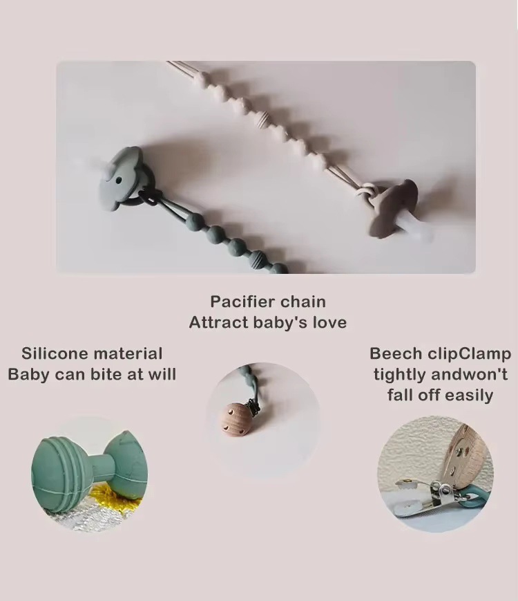 亚马逊新品婴儿安抚奶嘴链不锈钢扣防掉带宝宝牙胶硅胶珠子奶嘴夹