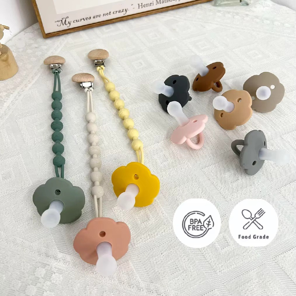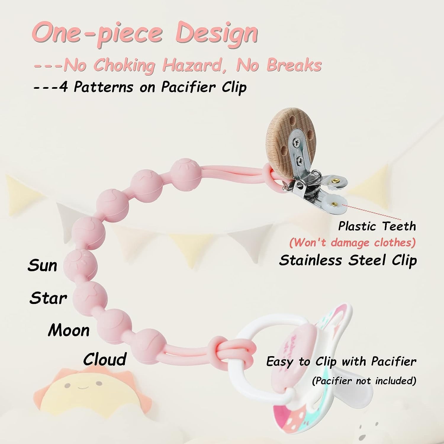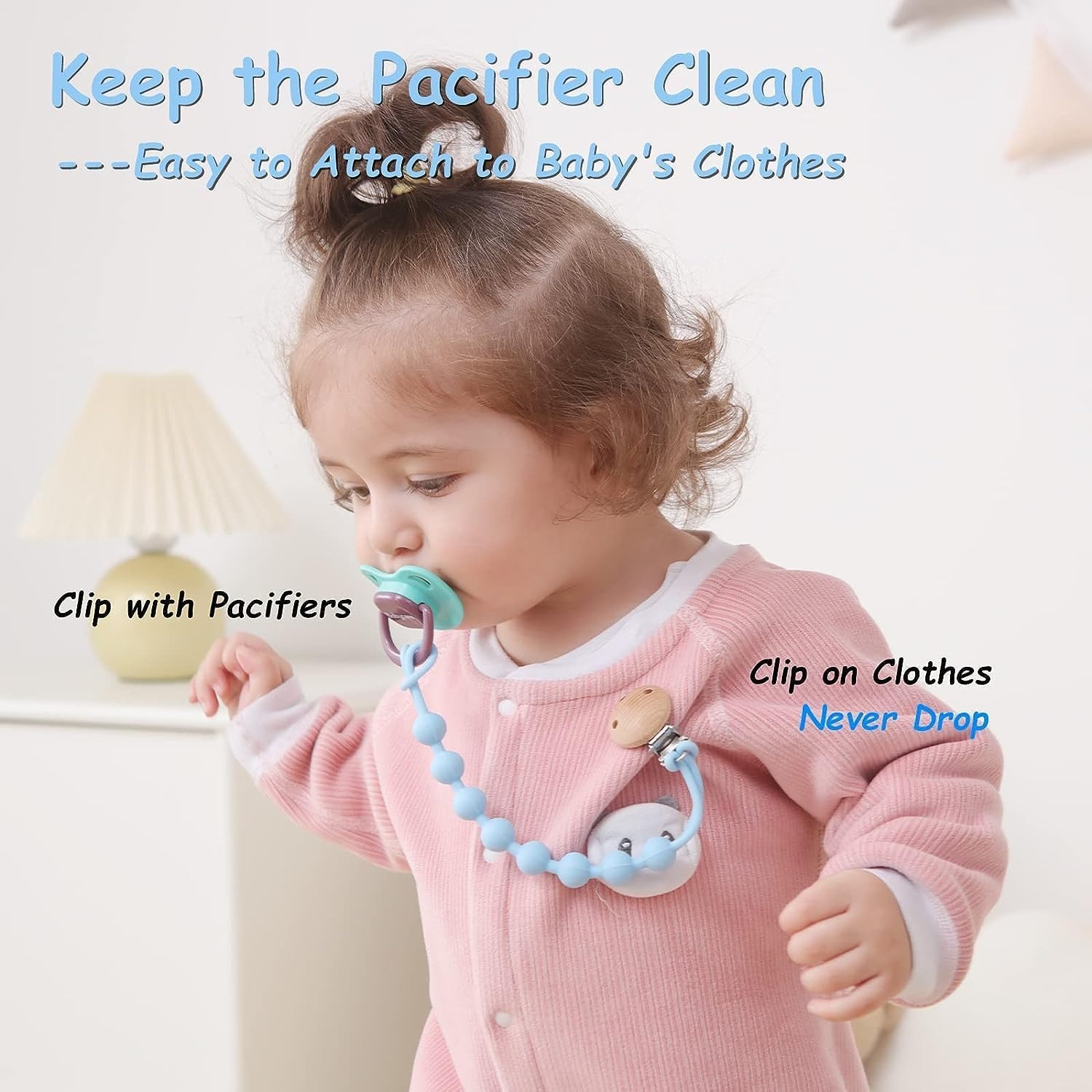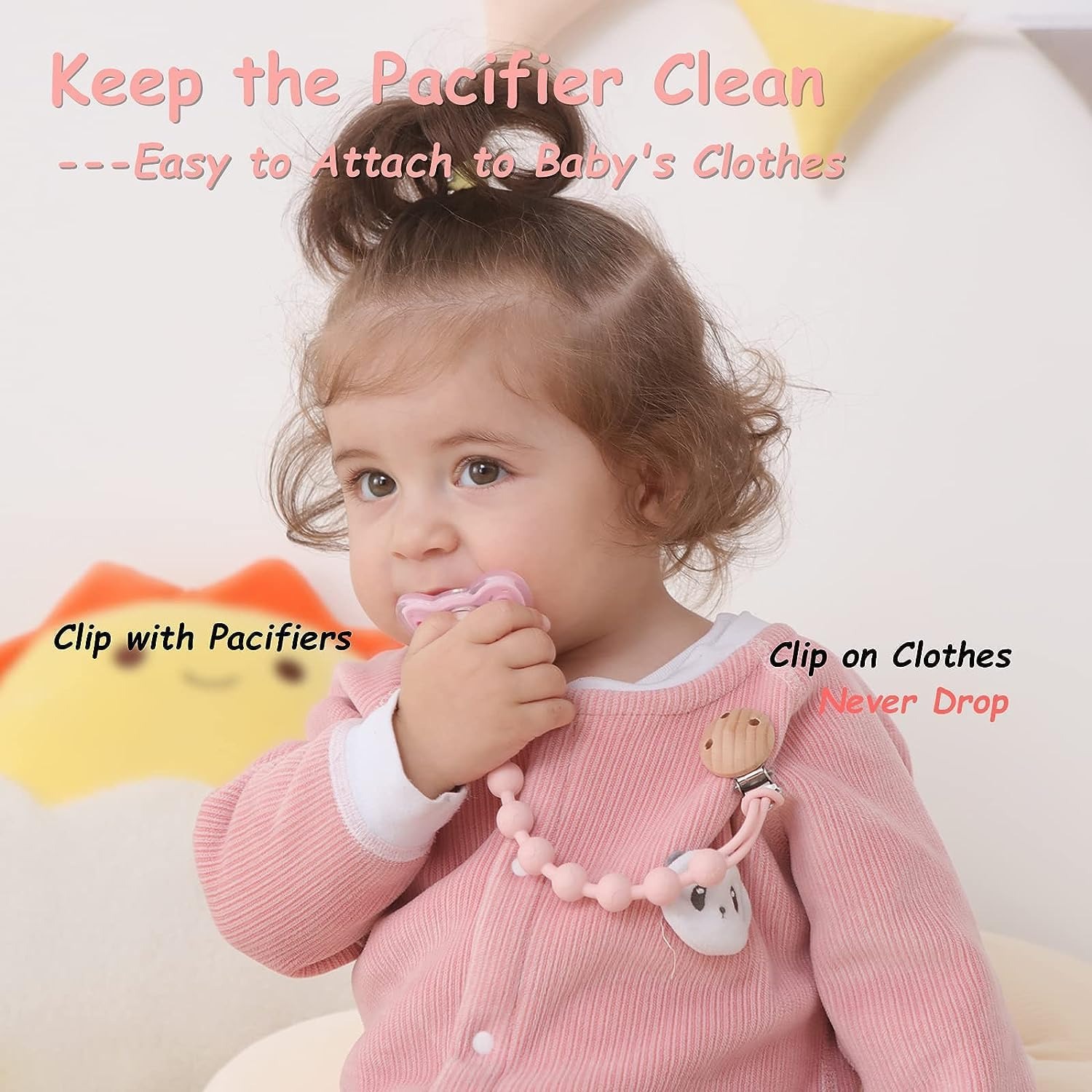 亚马逊新品婴儿安抚奶嘴链不锈钢扣防掉带宝宝牙胶硅胶珠子奶嘴夹