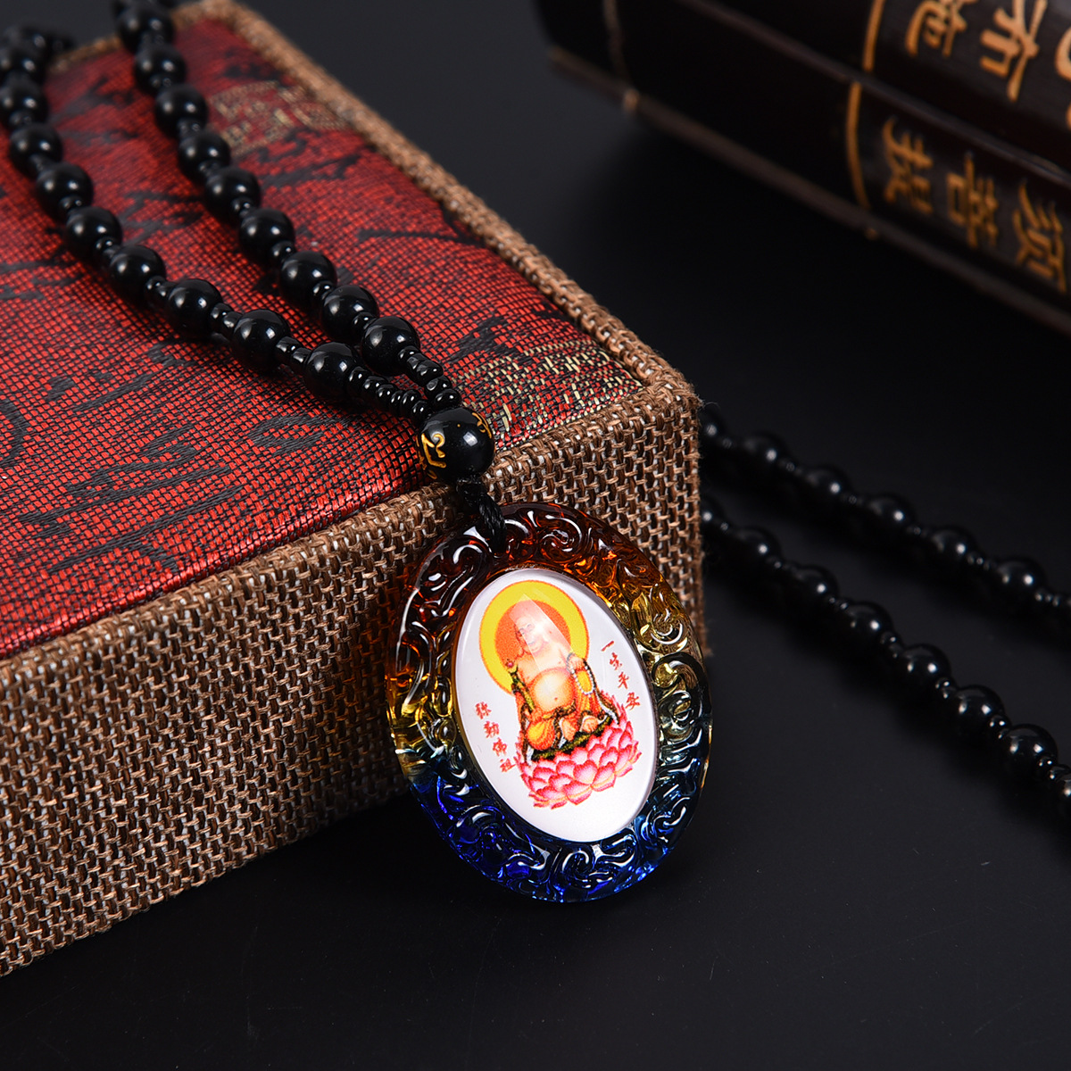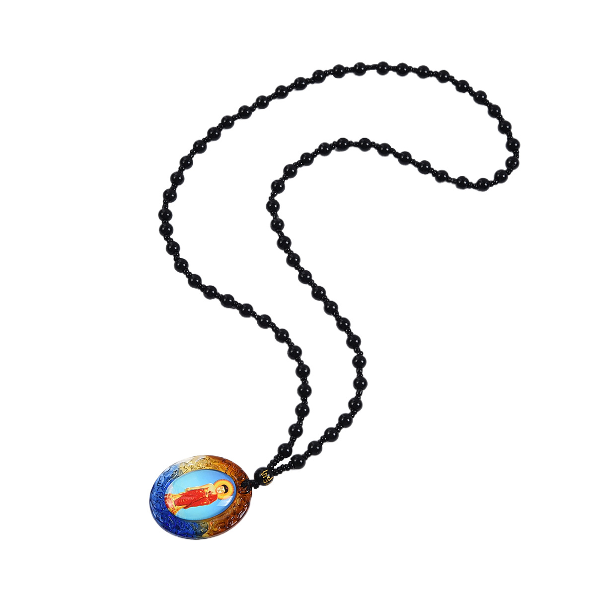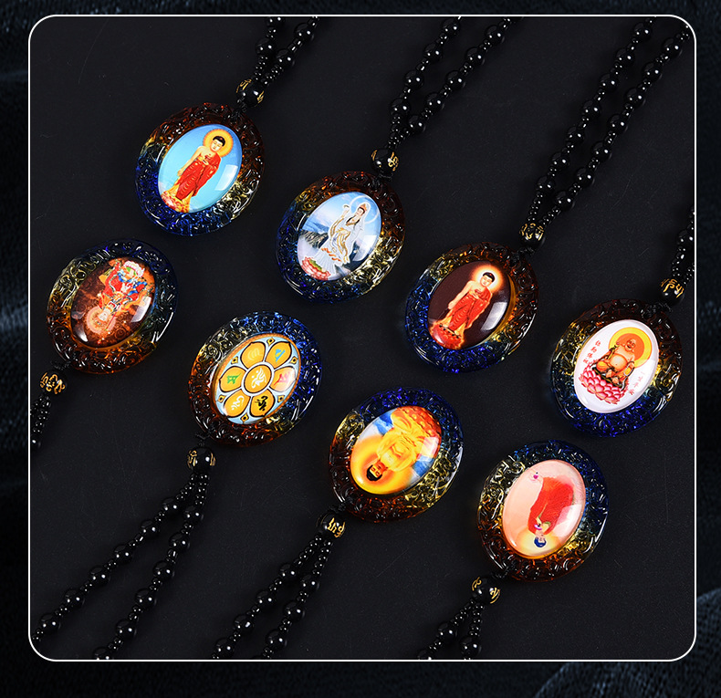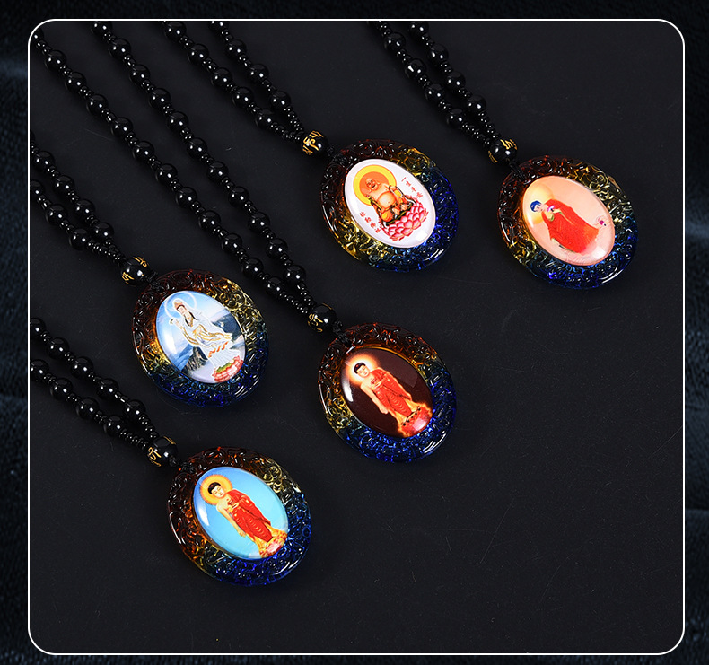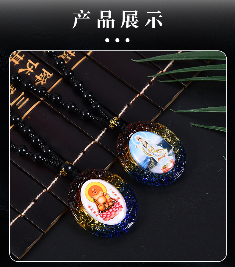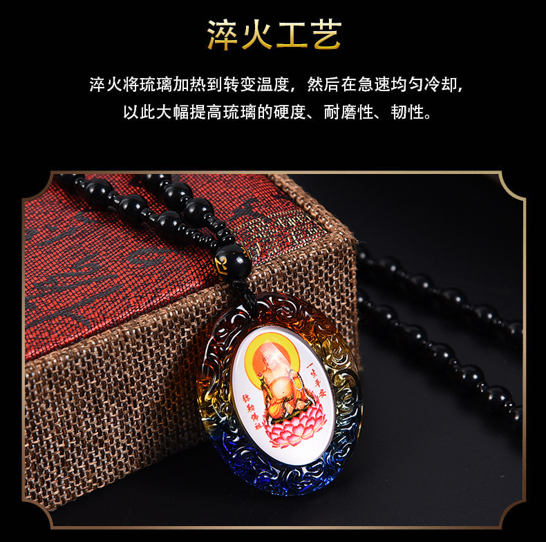 琉璃唐卡西藏佛牌吊坠手绘文殊菩萨挂件饰品佛像项链双面一样