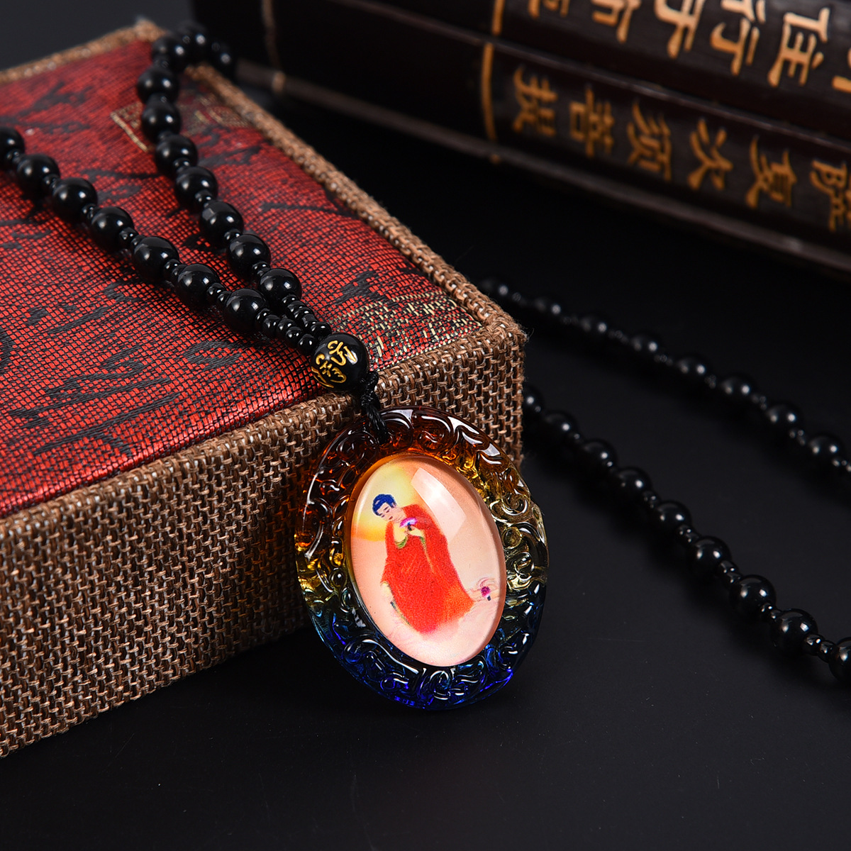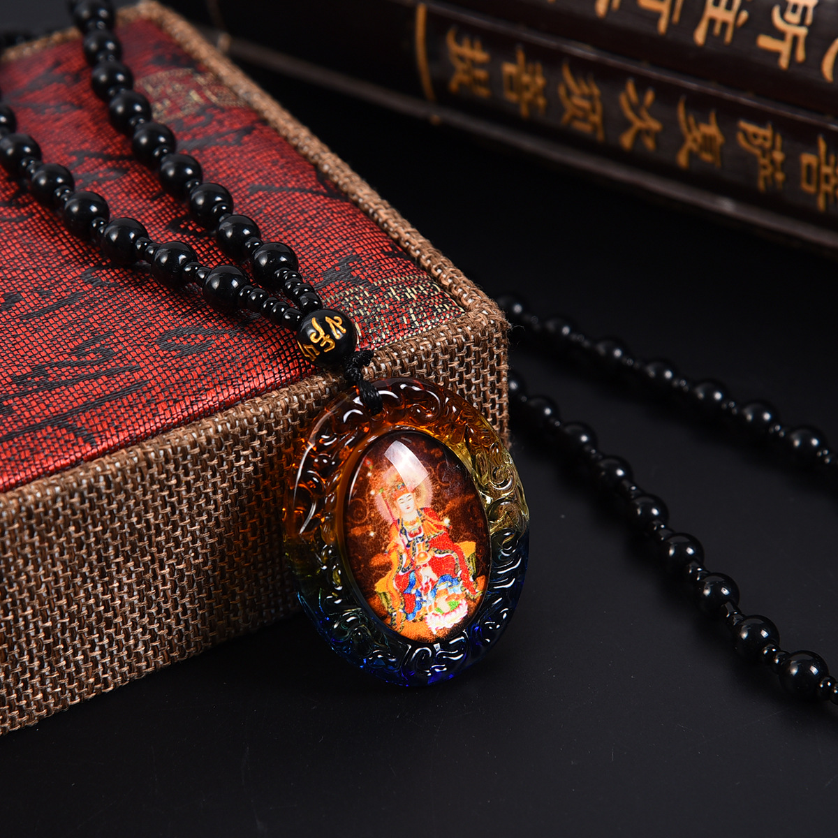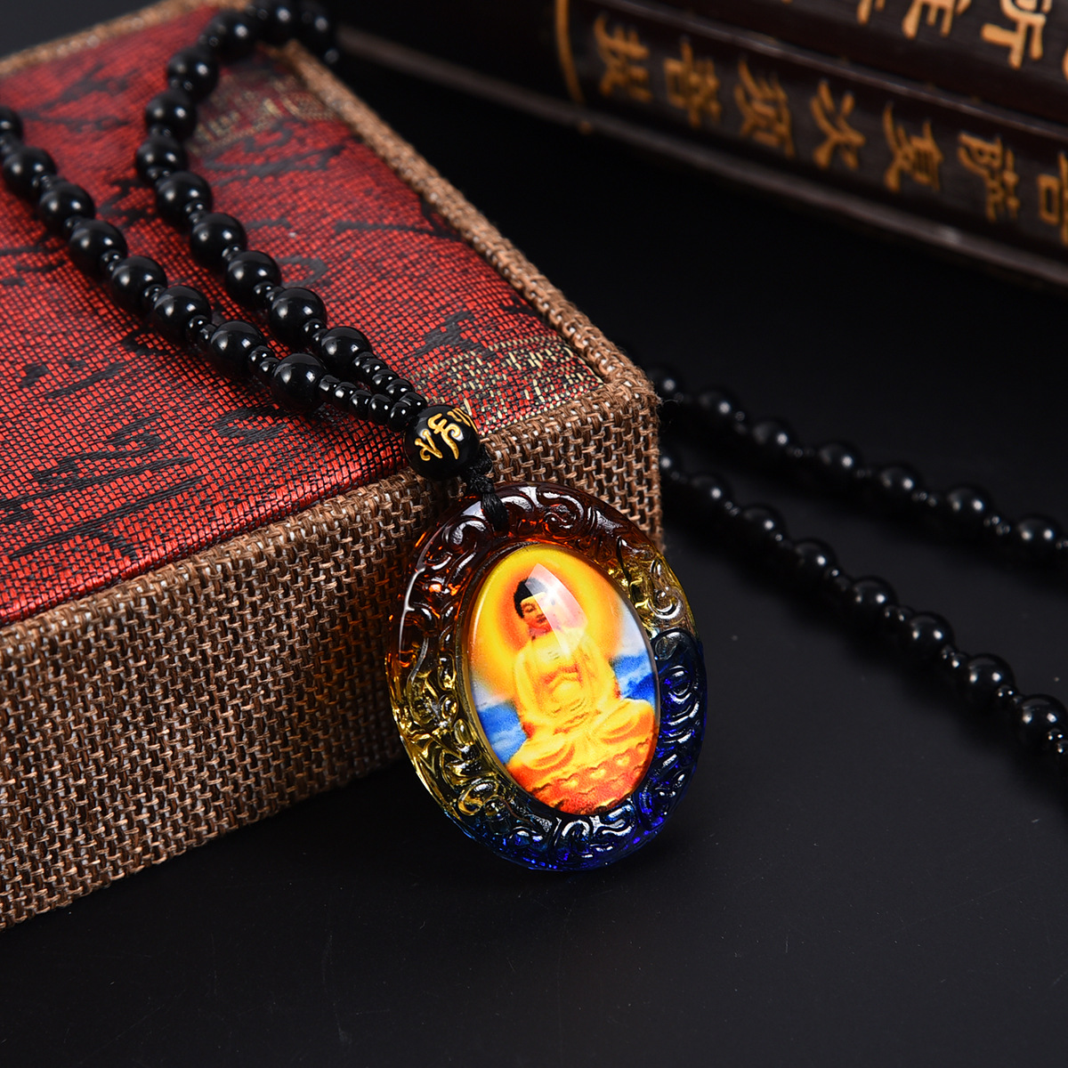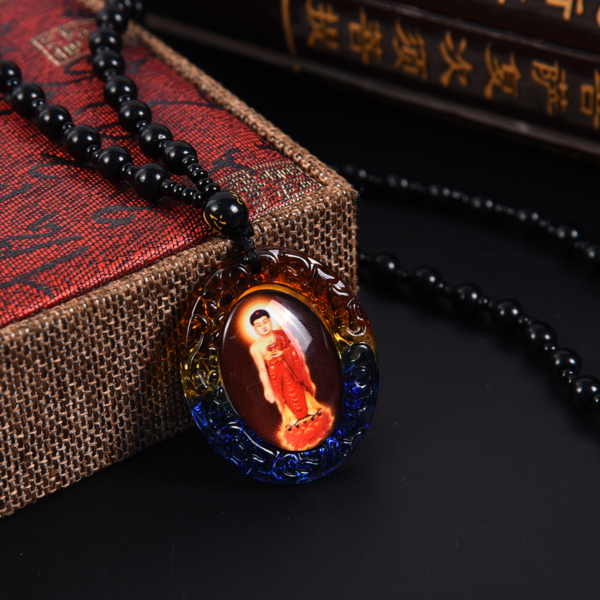 琉璃唐卡西藏佛牌吊坠手绘文殊菩萨挂件饰品佛像项链双面一样