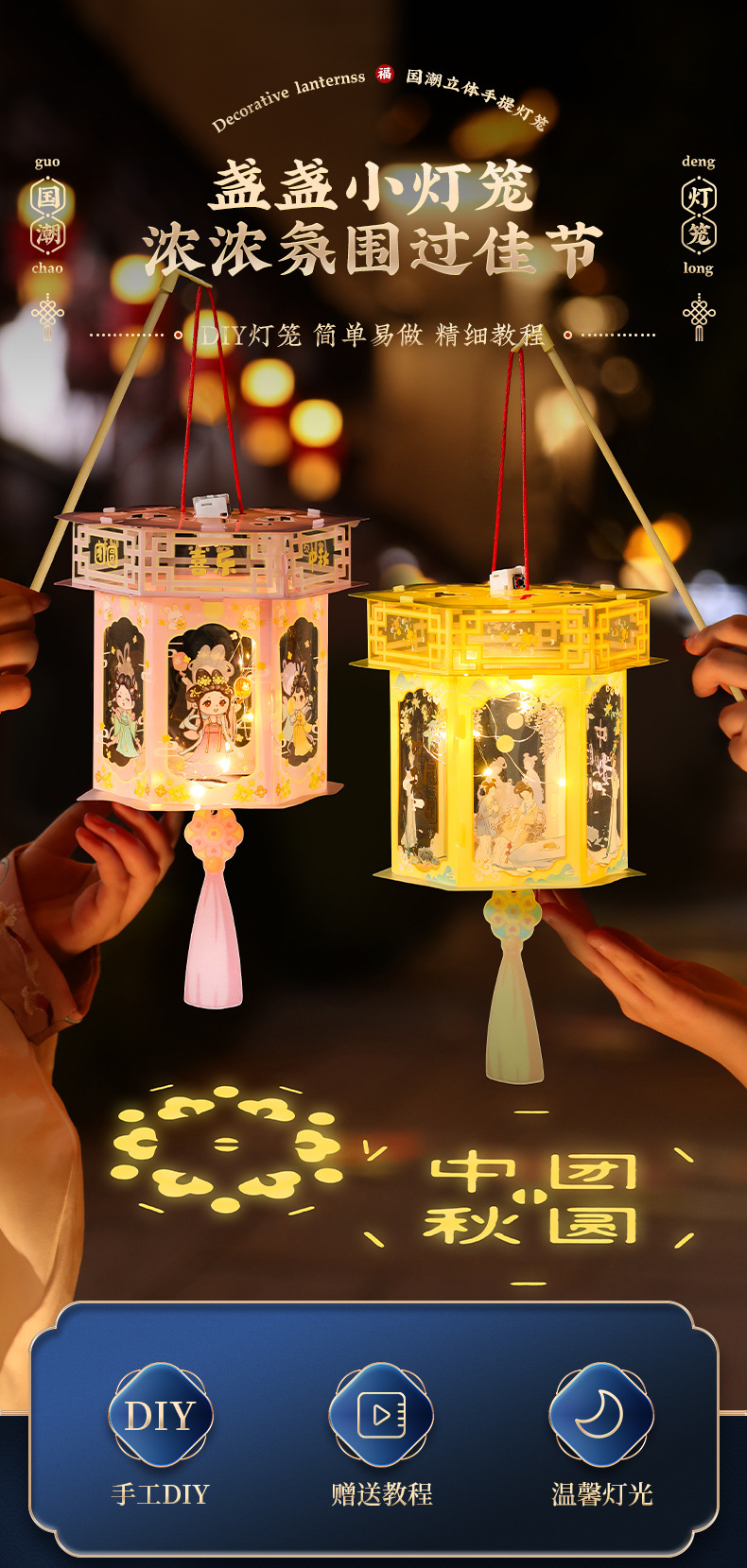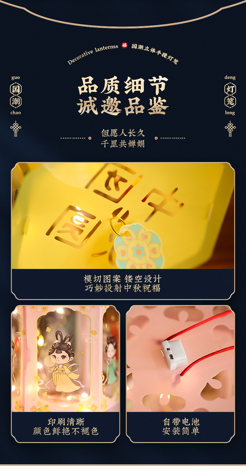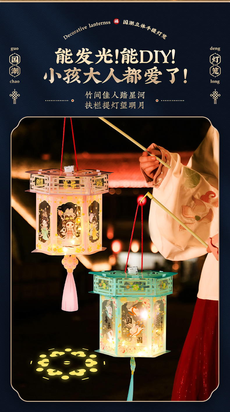 中秋节灯笼儿童手提发光花灯 diy材料包国潮古风卡通宫灯批发摆摊