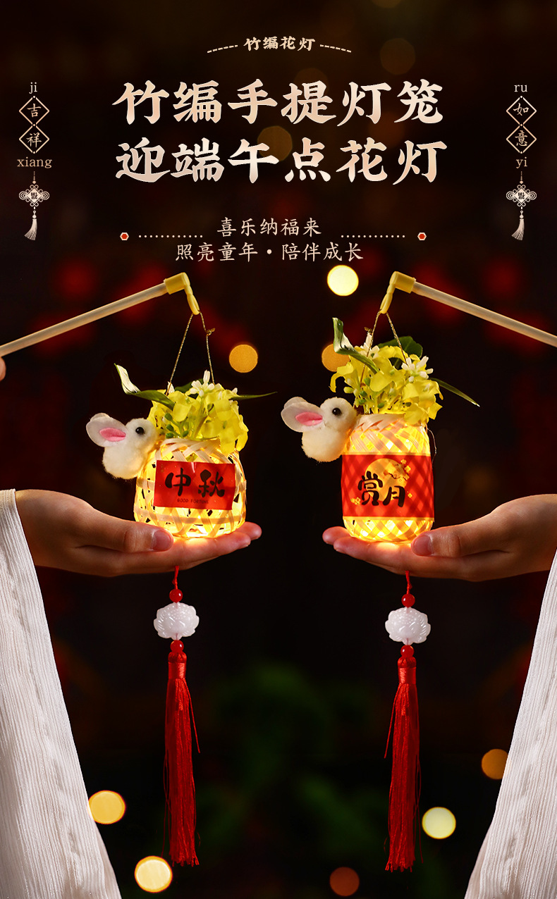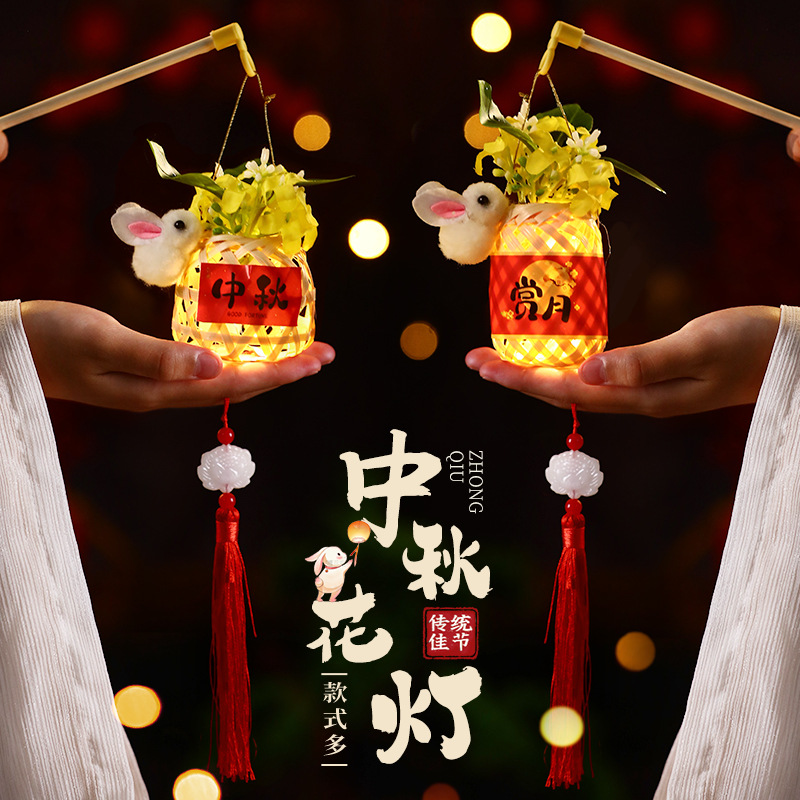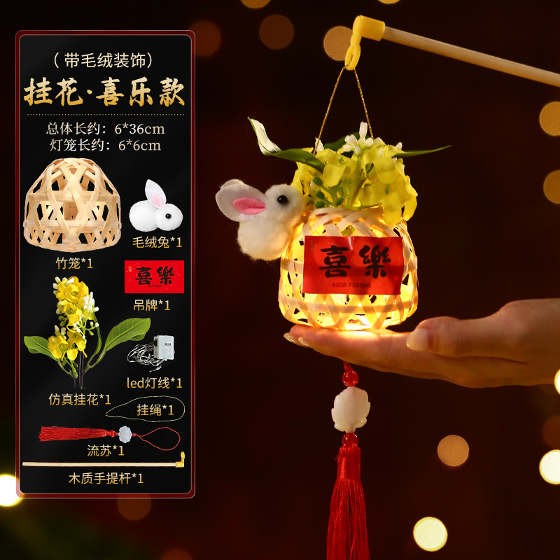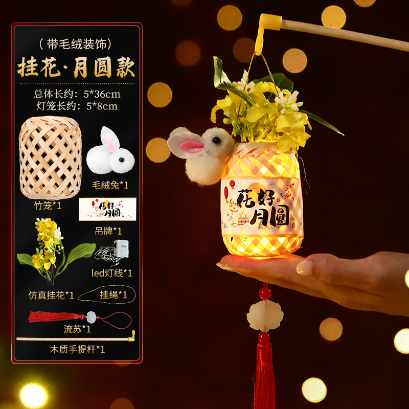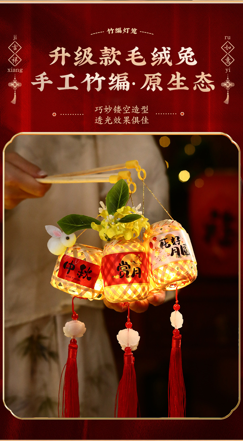中秋节竹编灯笼手提发光兔子花灯小灯笼摆摊手工diy材料包小礼品