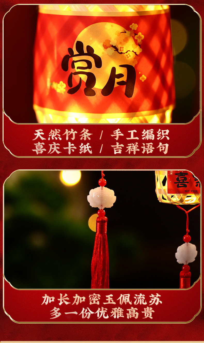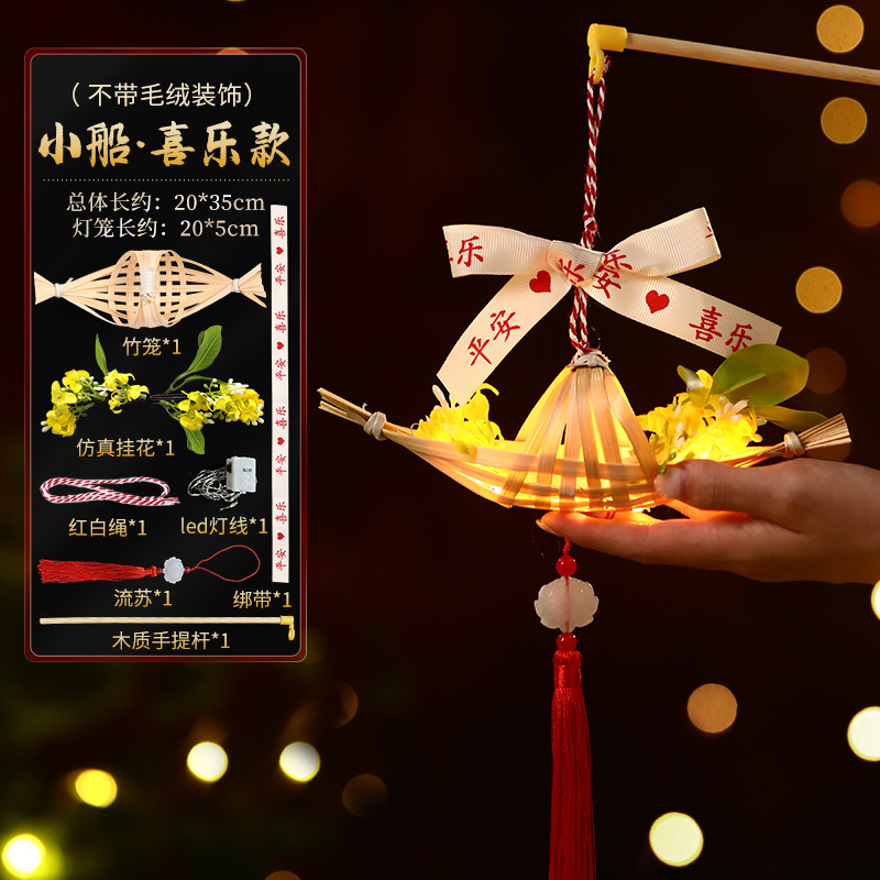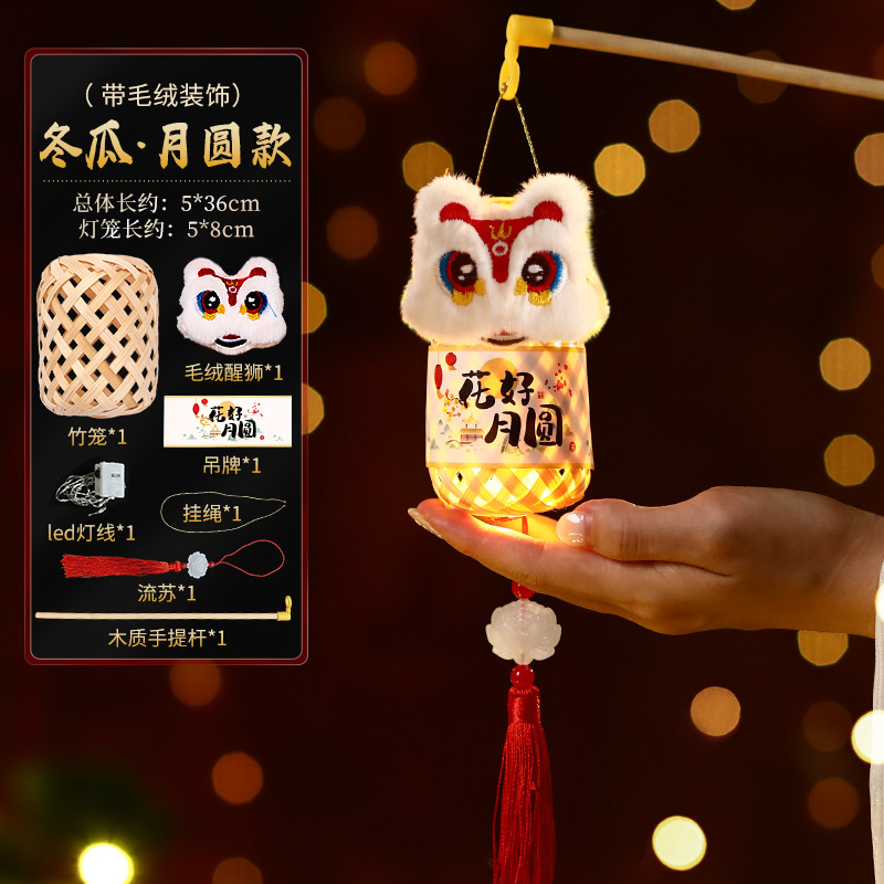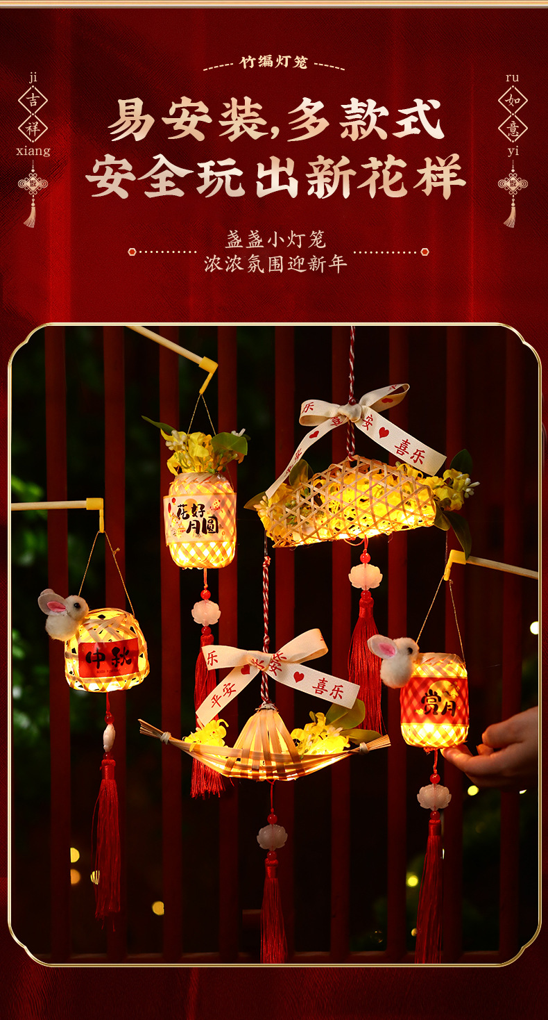 中秋节竹编灯笼手提发光兔子花灯小灯笼摆摊手工diy材料包小礼品